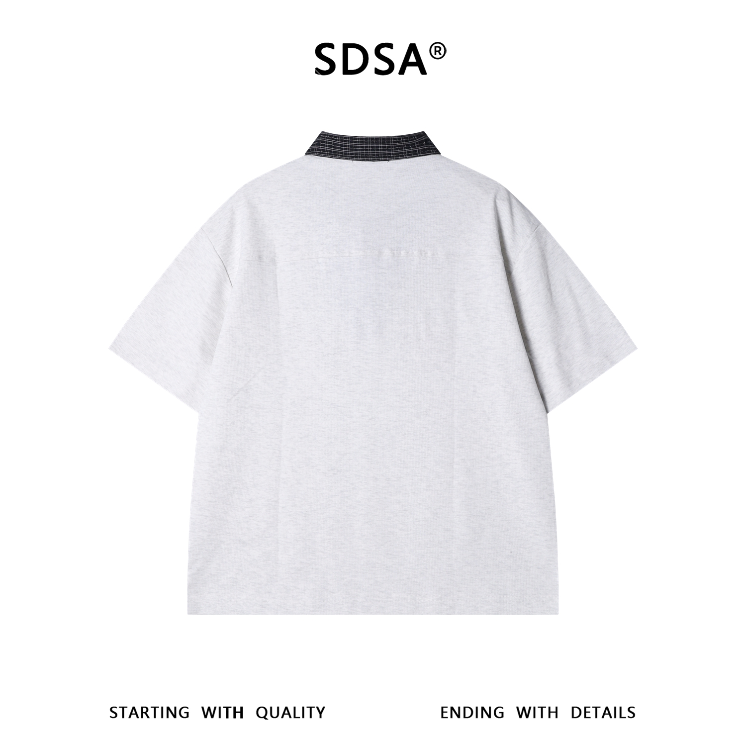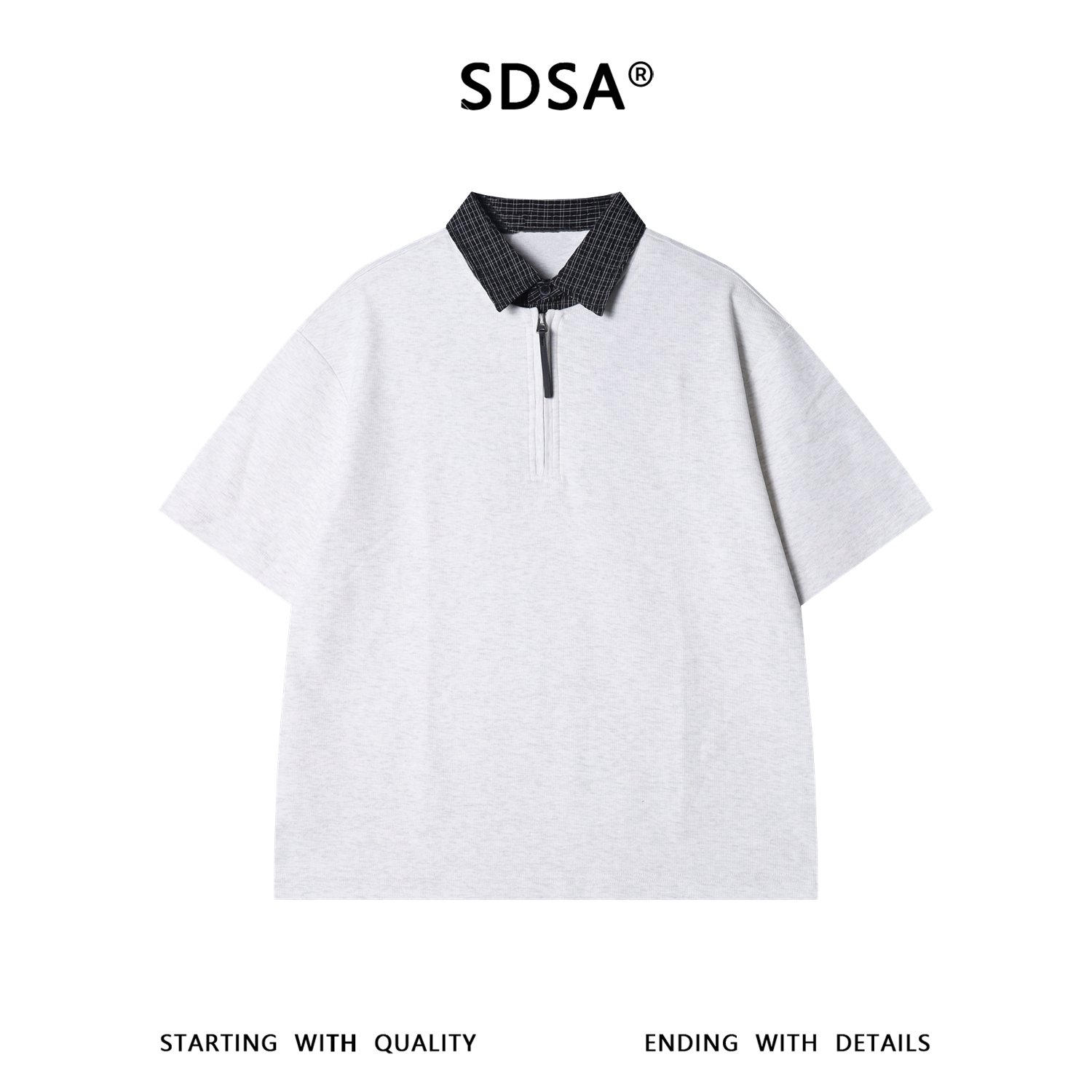 SDSA男装2026新款提花格纹半拉链立领短袖T恤下摆抽绳设计百搭