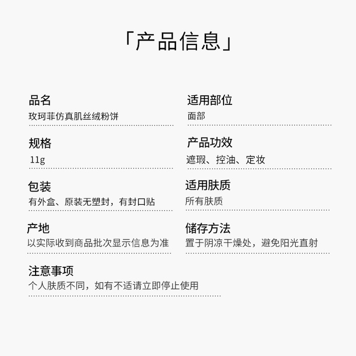 适合肤质:所有肤质功效:控油、遮瑕、定妆