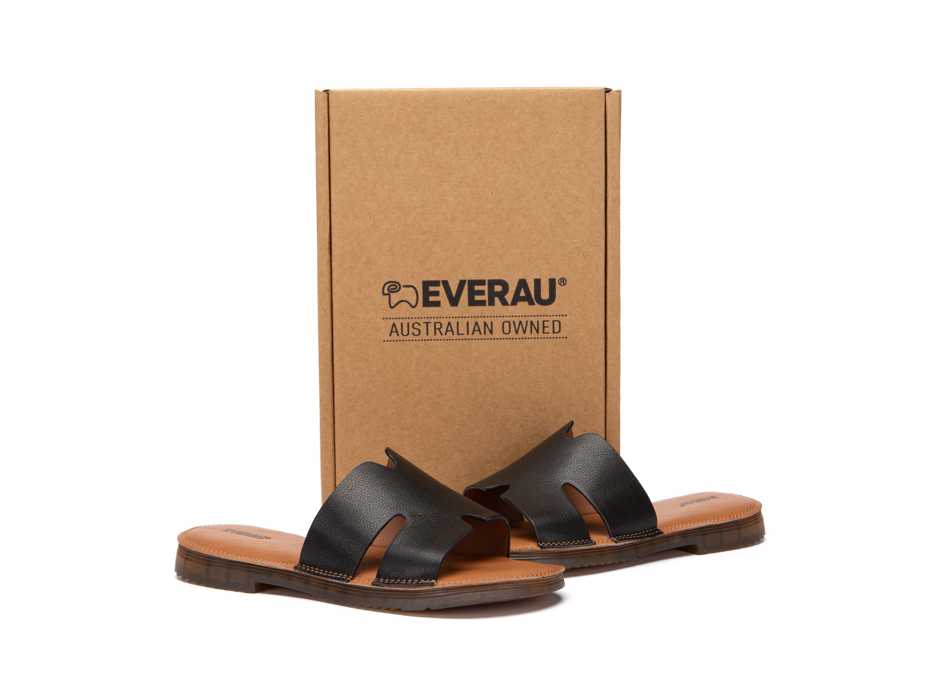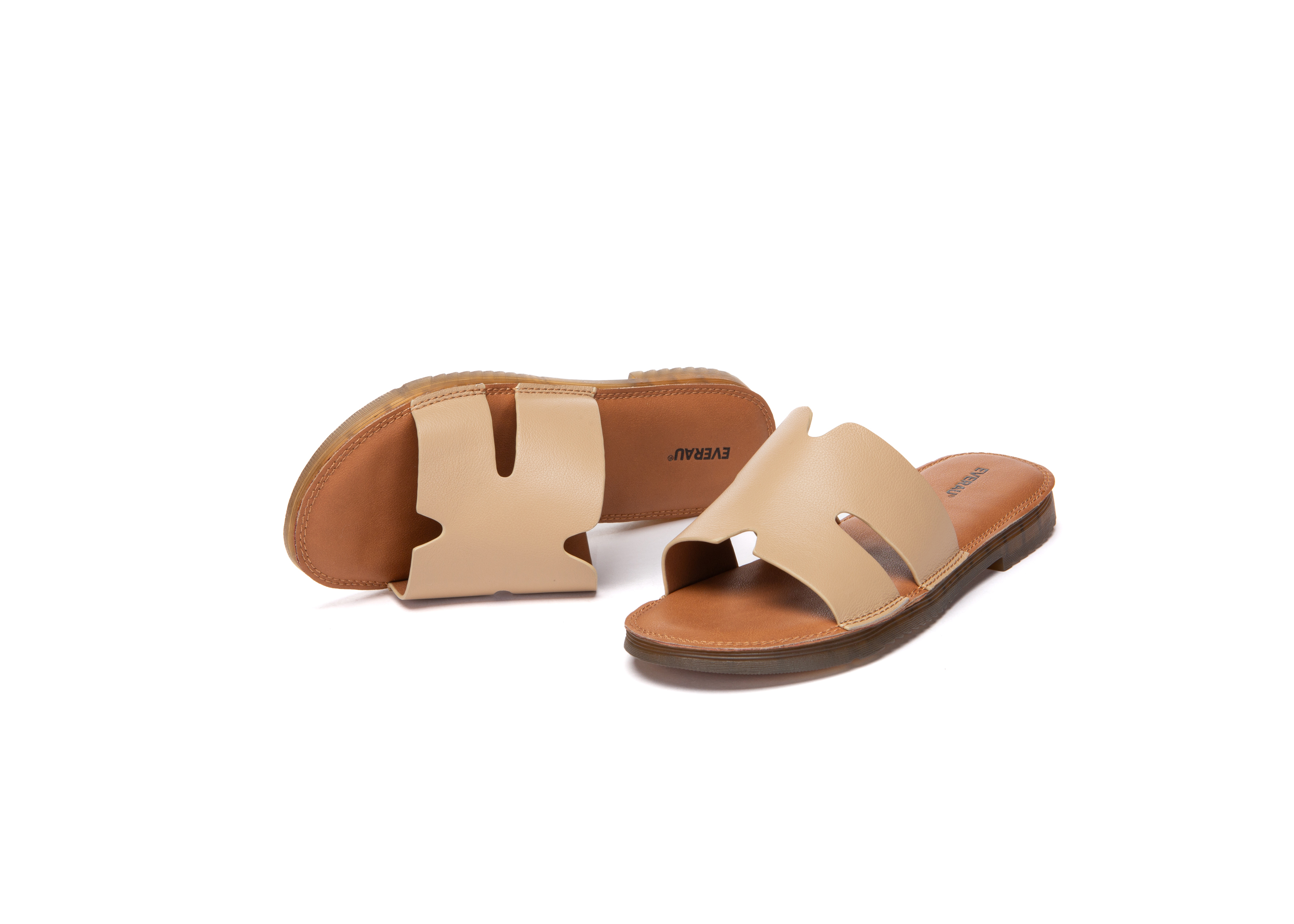 【澳洲品牌】EVERAU 一字拖凉鞋女真皮软底粘扣拖鞋平底懒人一脚蹬 EA7090
