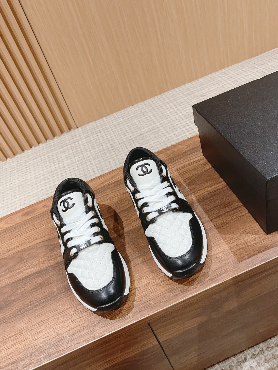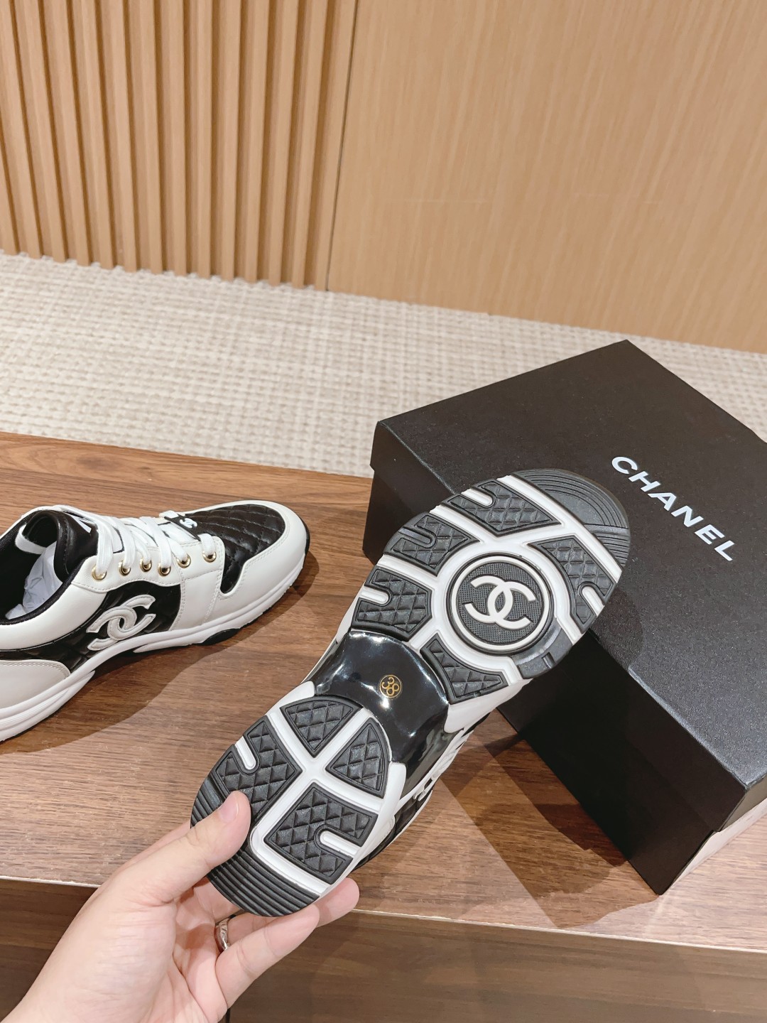 【运动底】 Chan*l 小香 23A最新款 全皮 熊猫配色 菱格小白鞋 休闲 运动鞋 滑板鞋 高帮鞋