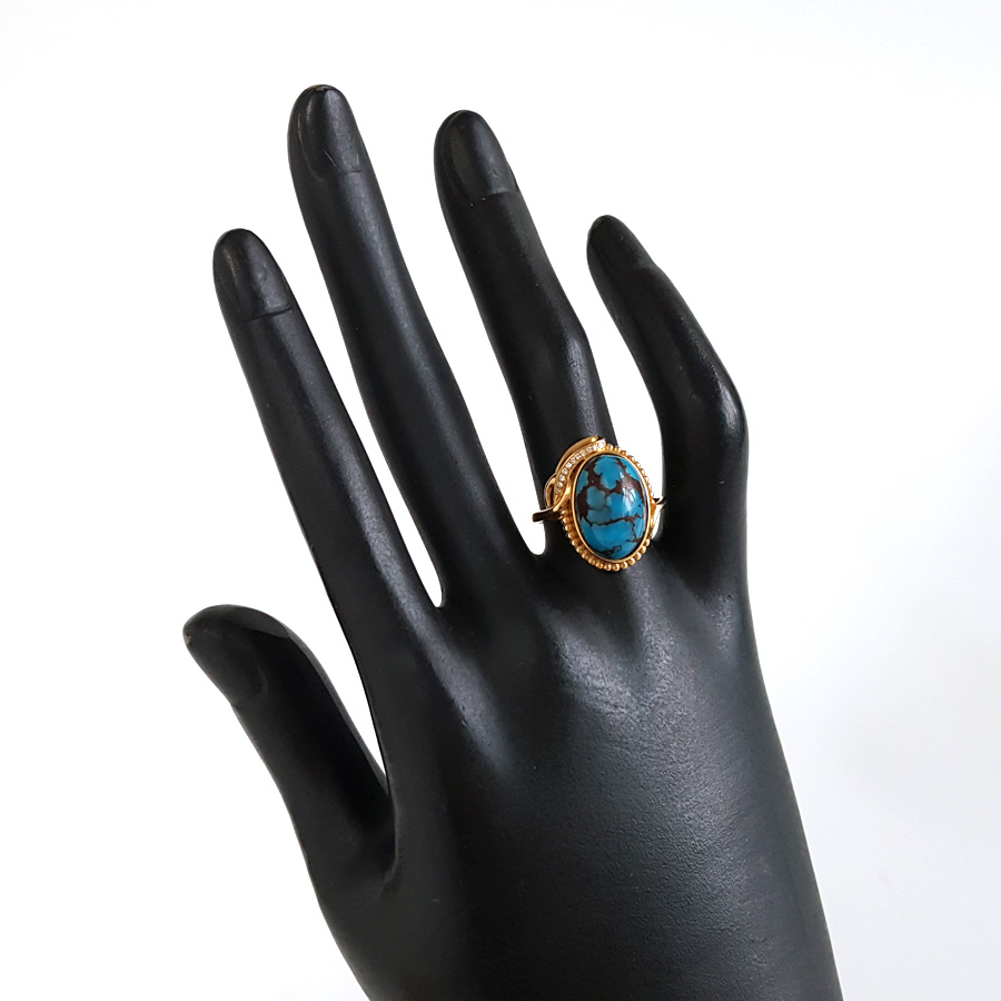 【天然正品】AU750黄金镶钻镶天然原矿高瓷高蓝铁线绿松石戒指14号(戒圈可改)女士271025NJM05