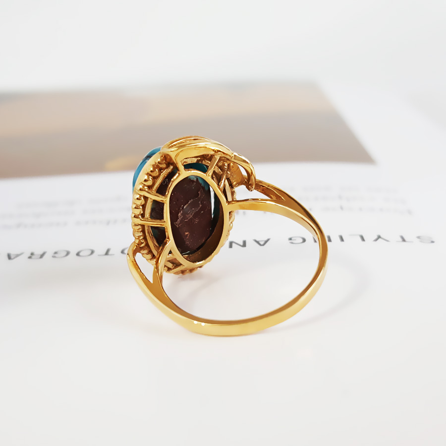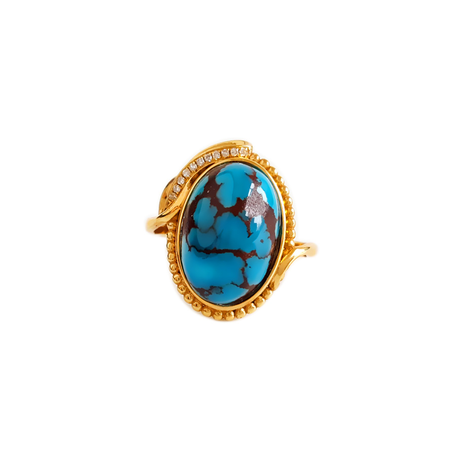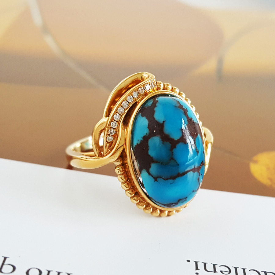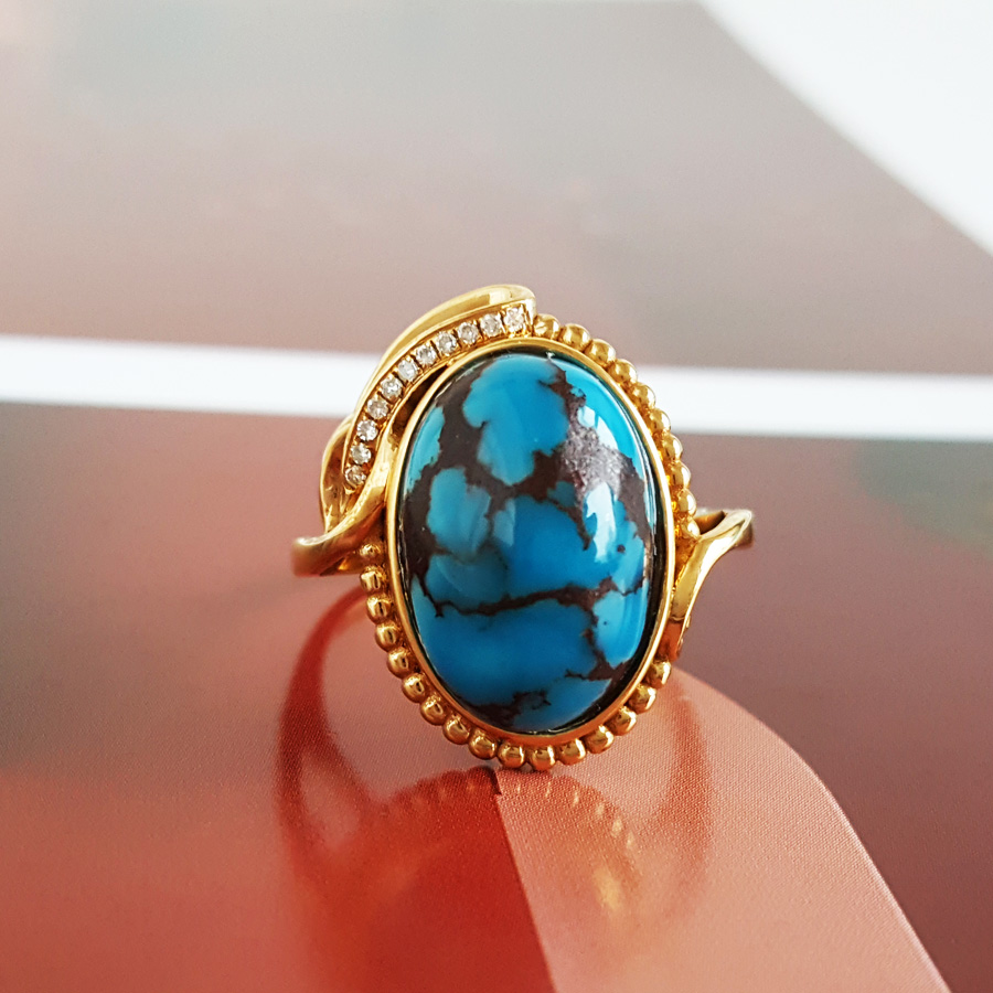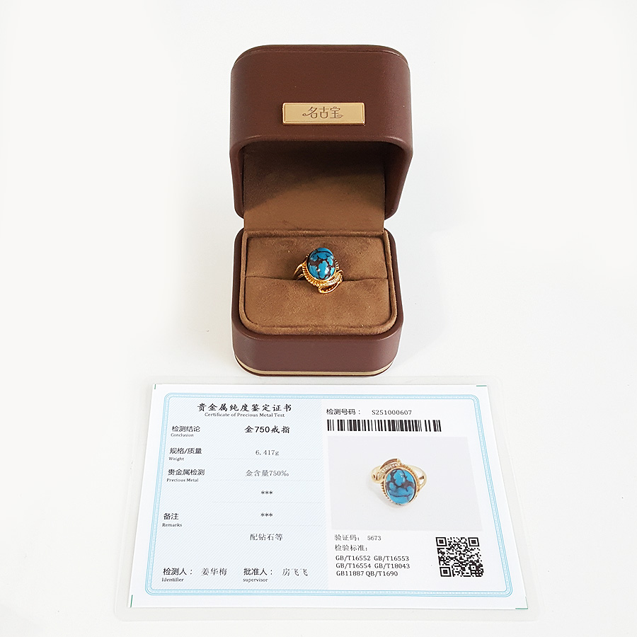名称 | AU750黄金镶钻镶天然原矿高瓷高蓝铁线绿松石戒指 |