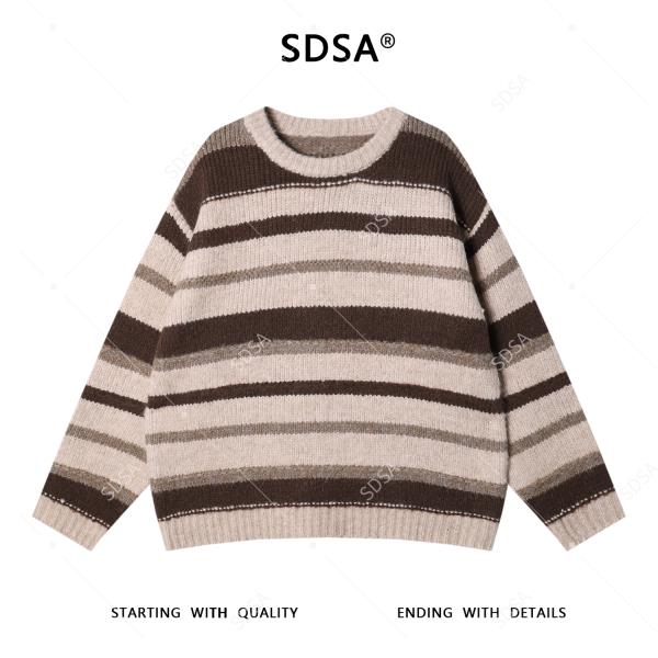 91335SDSA男士秋冬新款痞帅男装韩版简约撞色条纹圆领毛衣慵懒风针织衫