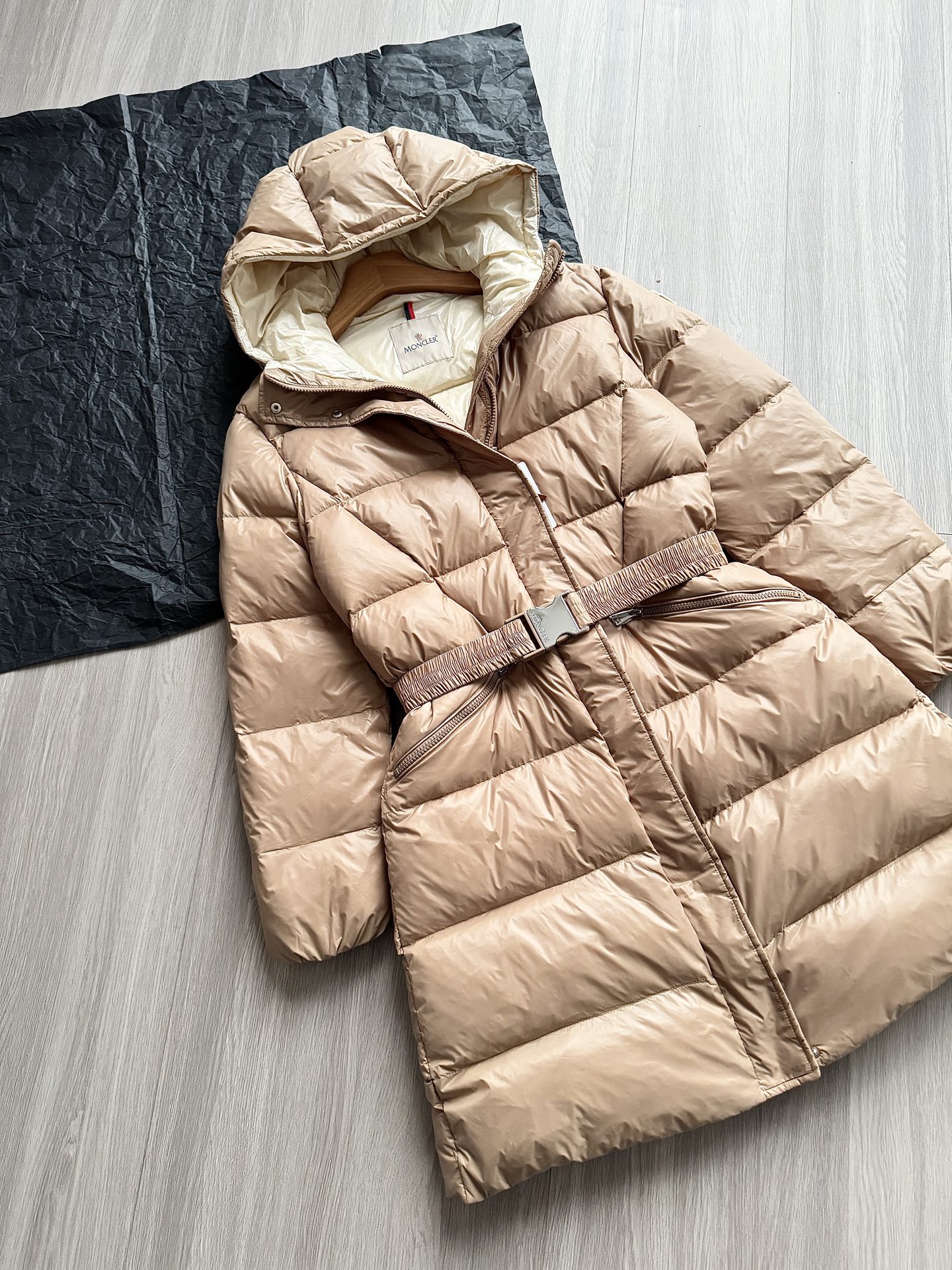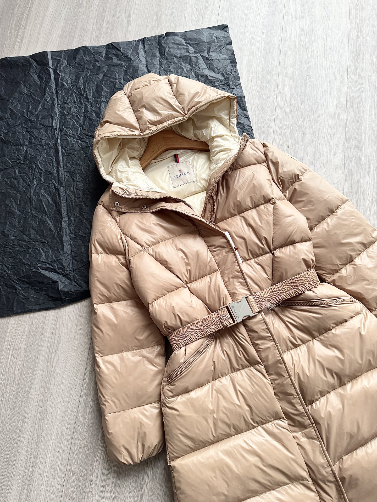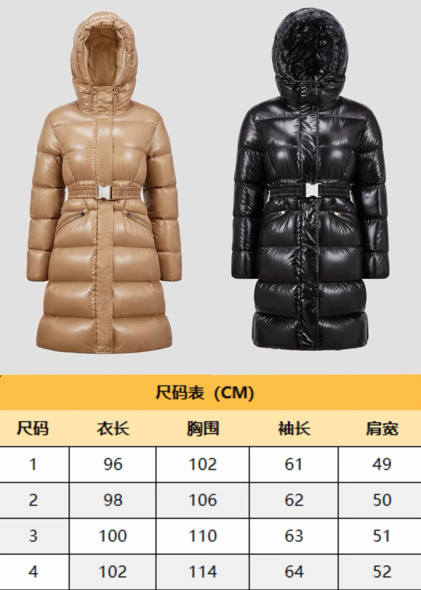 Moncl 蒙口 Bellevue女士长款羽绒服 绝!一件比一件好看 ,你们要的收腰显瘦长款羽绒服来了 ,谁能抗拒这么显瘦显高的羽绒服 ,上身超绝 Bellevue长款羽绒 采用标志性nylon laque面料制成,演绎经典Moncl风格。长款设计,面料经过功能性处理,呈现华丽光泽效果。这款连帽保暖单品采用柔美廓形设计,配有弹性腰带。从白天到夜晚,从城市到山间,皆可轻松应对