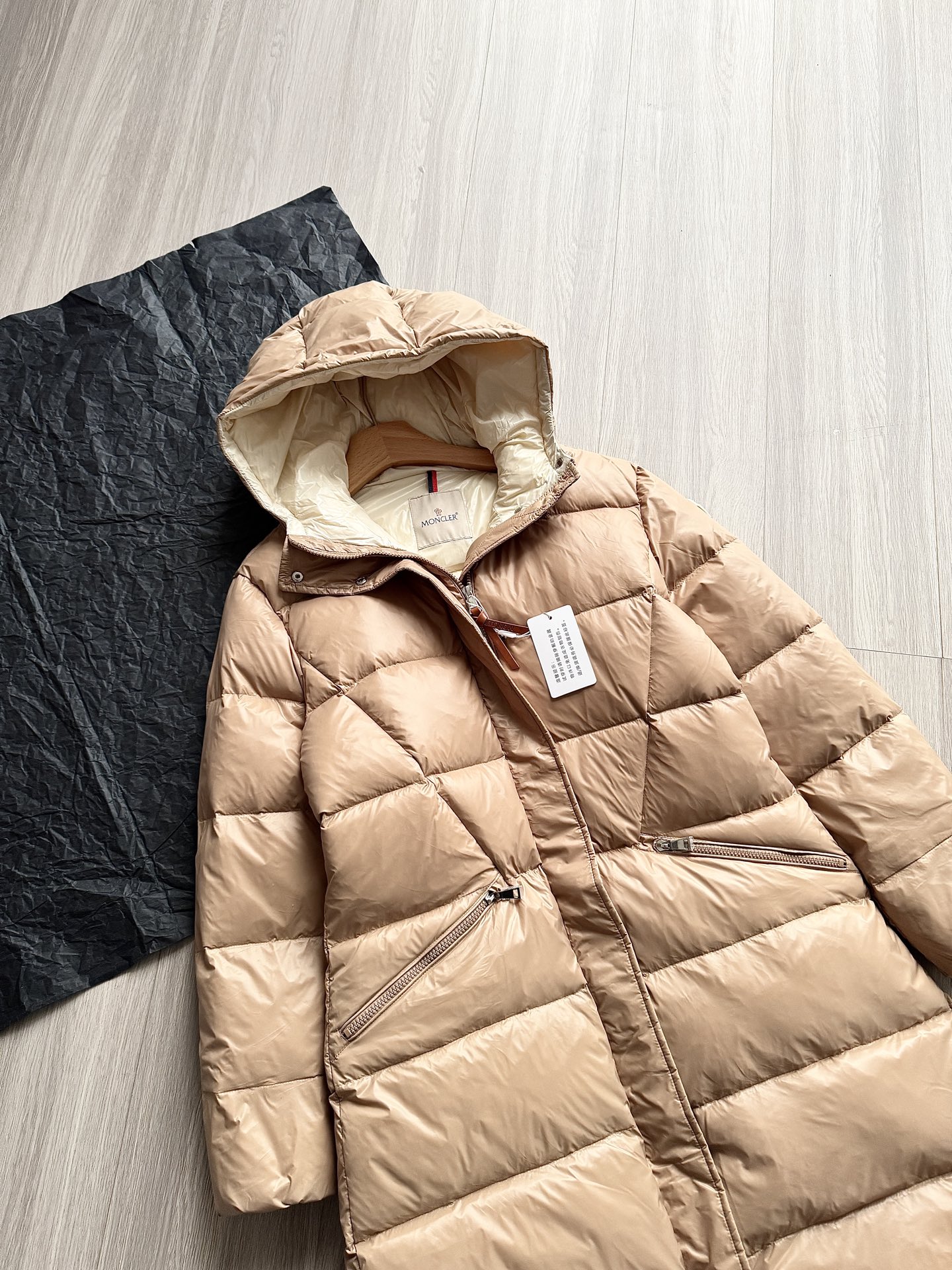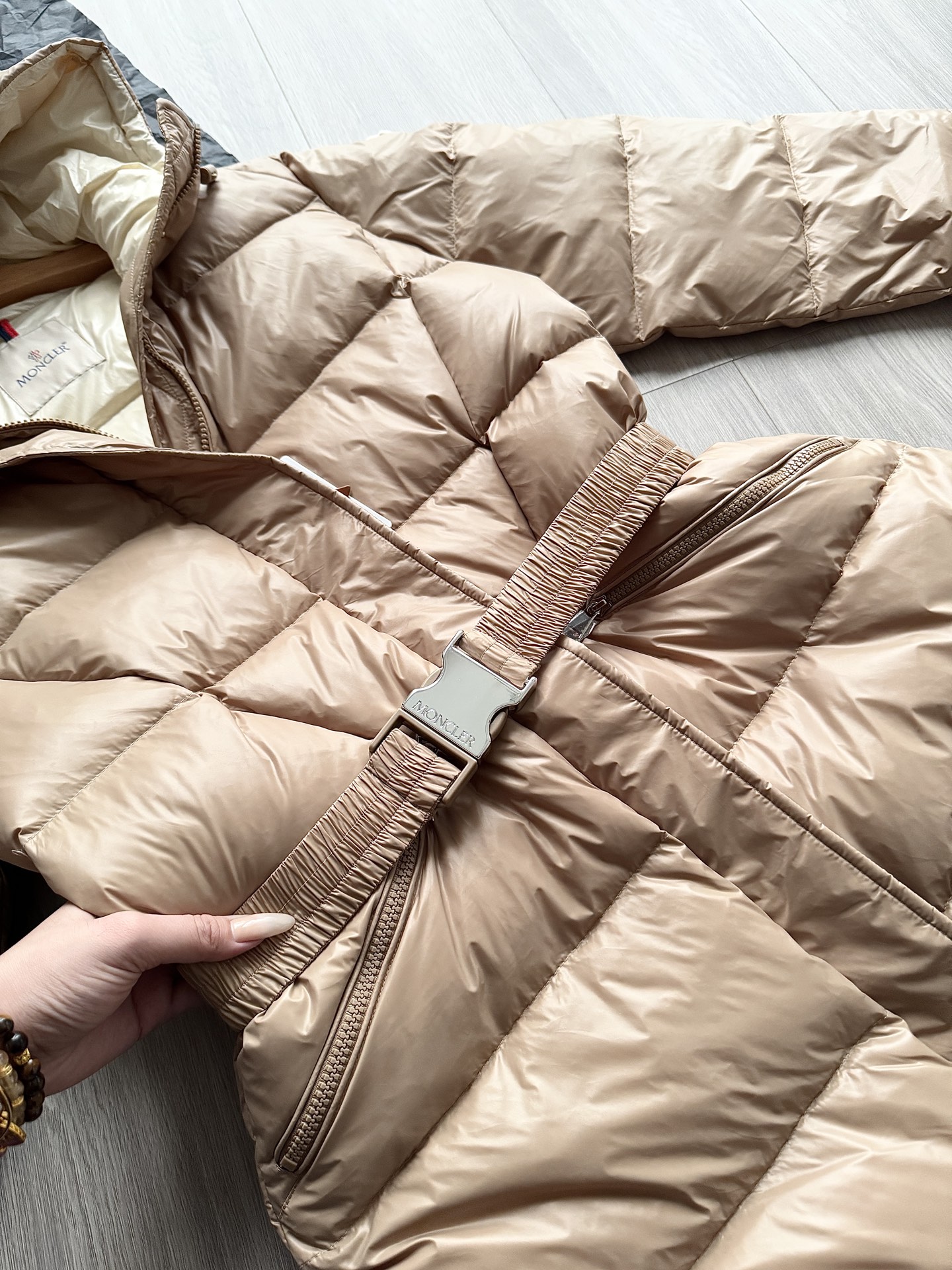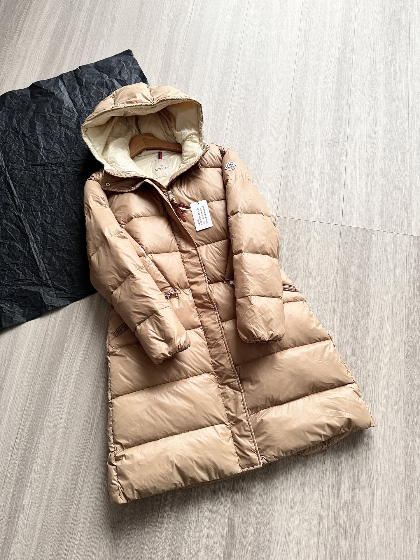 Moncl 蒙口 Bellevue女士长款羽绒服 绝!一件比一件好看 ,你们要的收腰显瘦长款羽绒服来了 ,谁能抗拒这么显瘦显高的羽绒服 ,上身超绝 Bellevue长款羽绒 采用标志性nylon laque面料制成,演绎经典Moncl风格。长款设计,面料经过功能性处理,呈现华丽光泽效果。这款连帽保暖单品采用柔美廓形设计,配有弹性腰带。从白天到夜晚,从城市到山间,皆可轻松应对