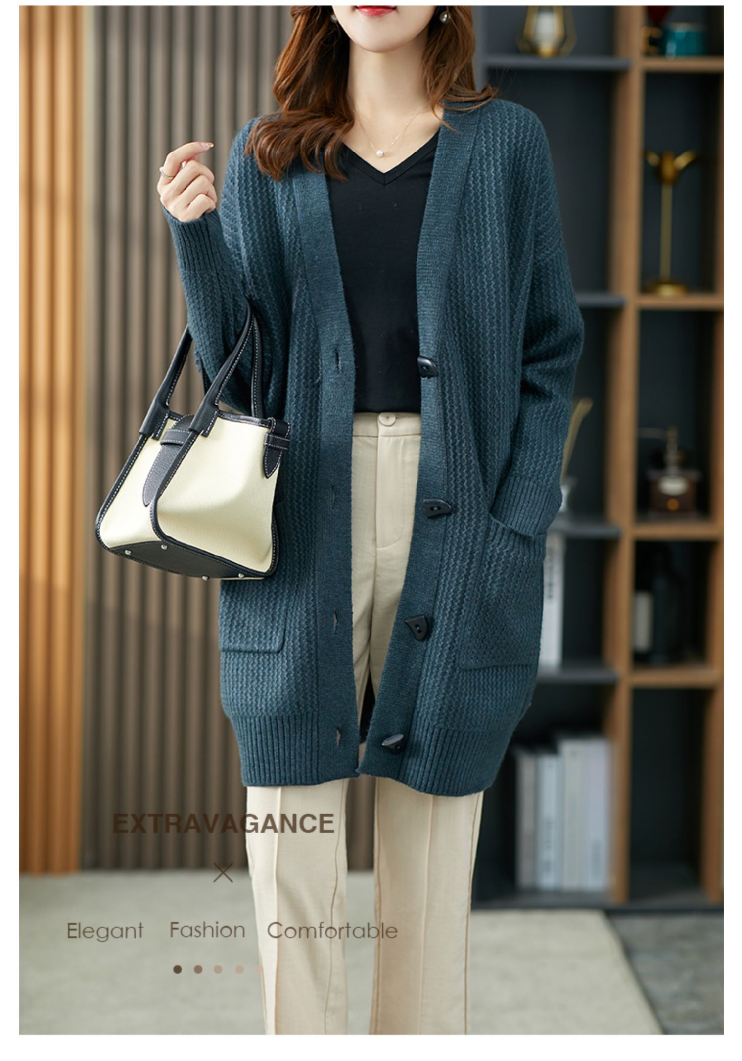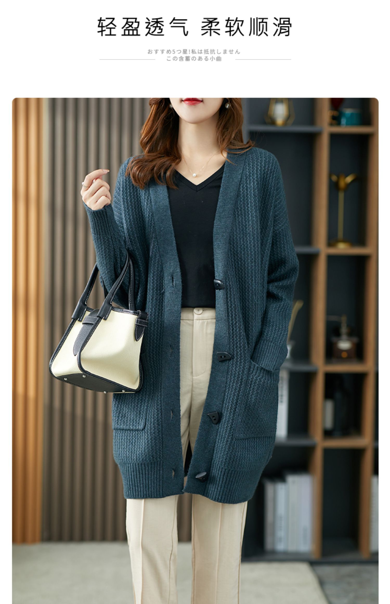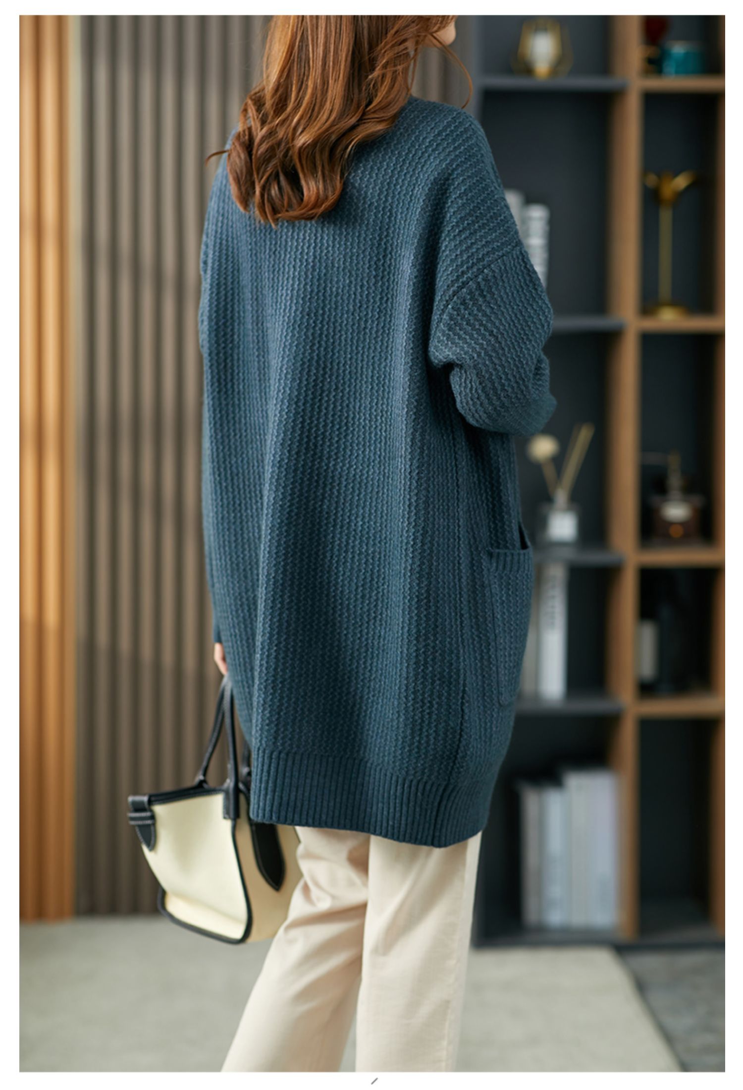 YX【现货7天】毛衣开衫女中长款秋季2023新款针织衫外套韩版潮宽松外搭上衣