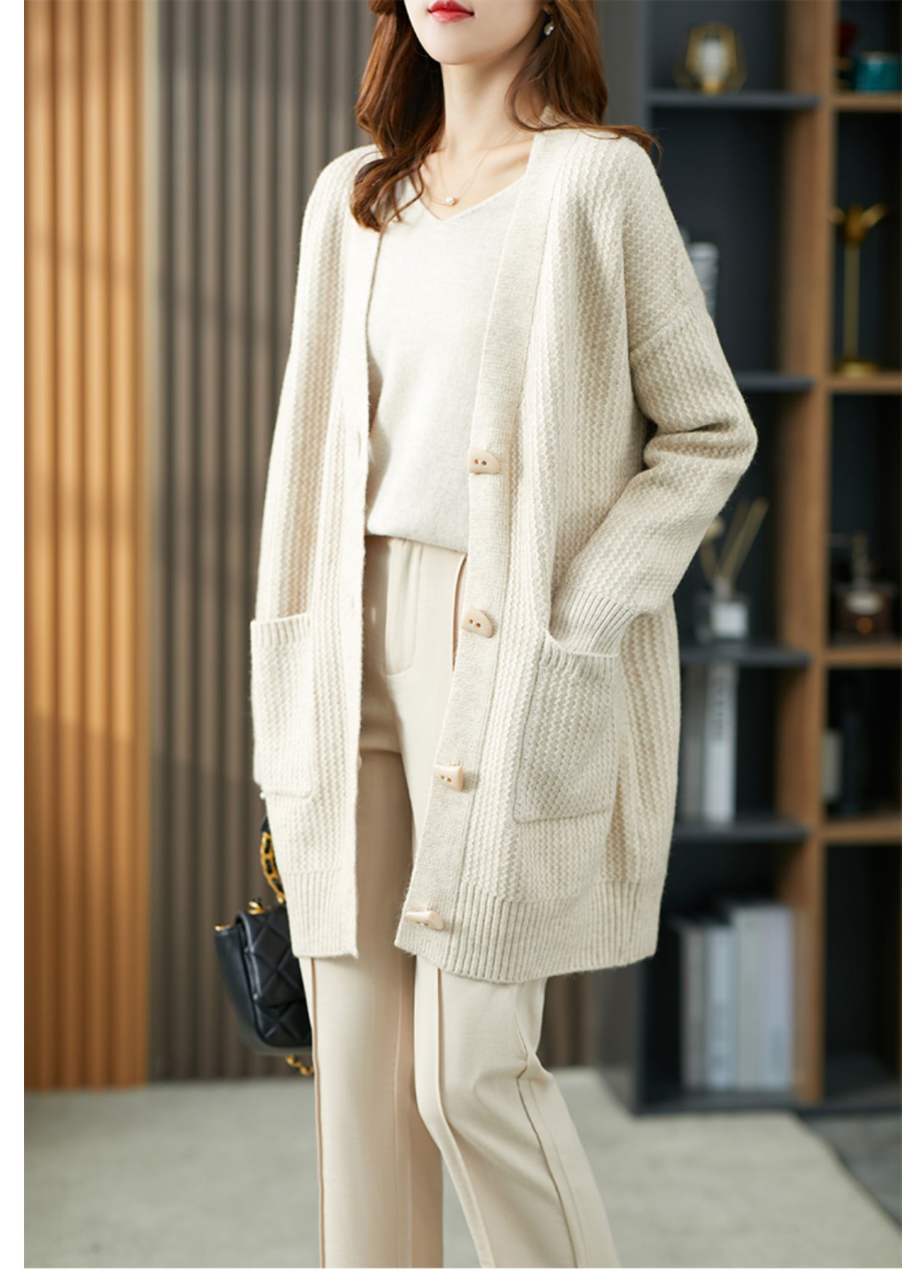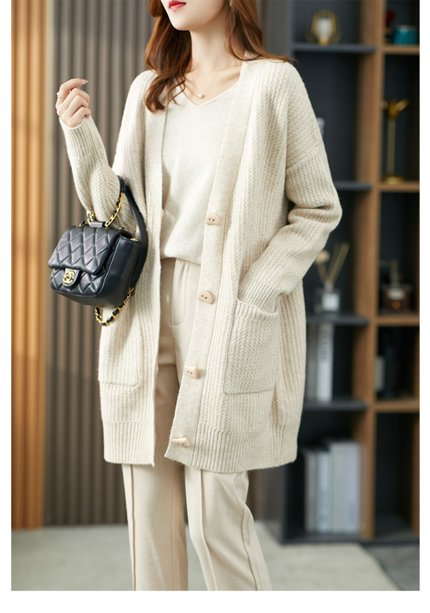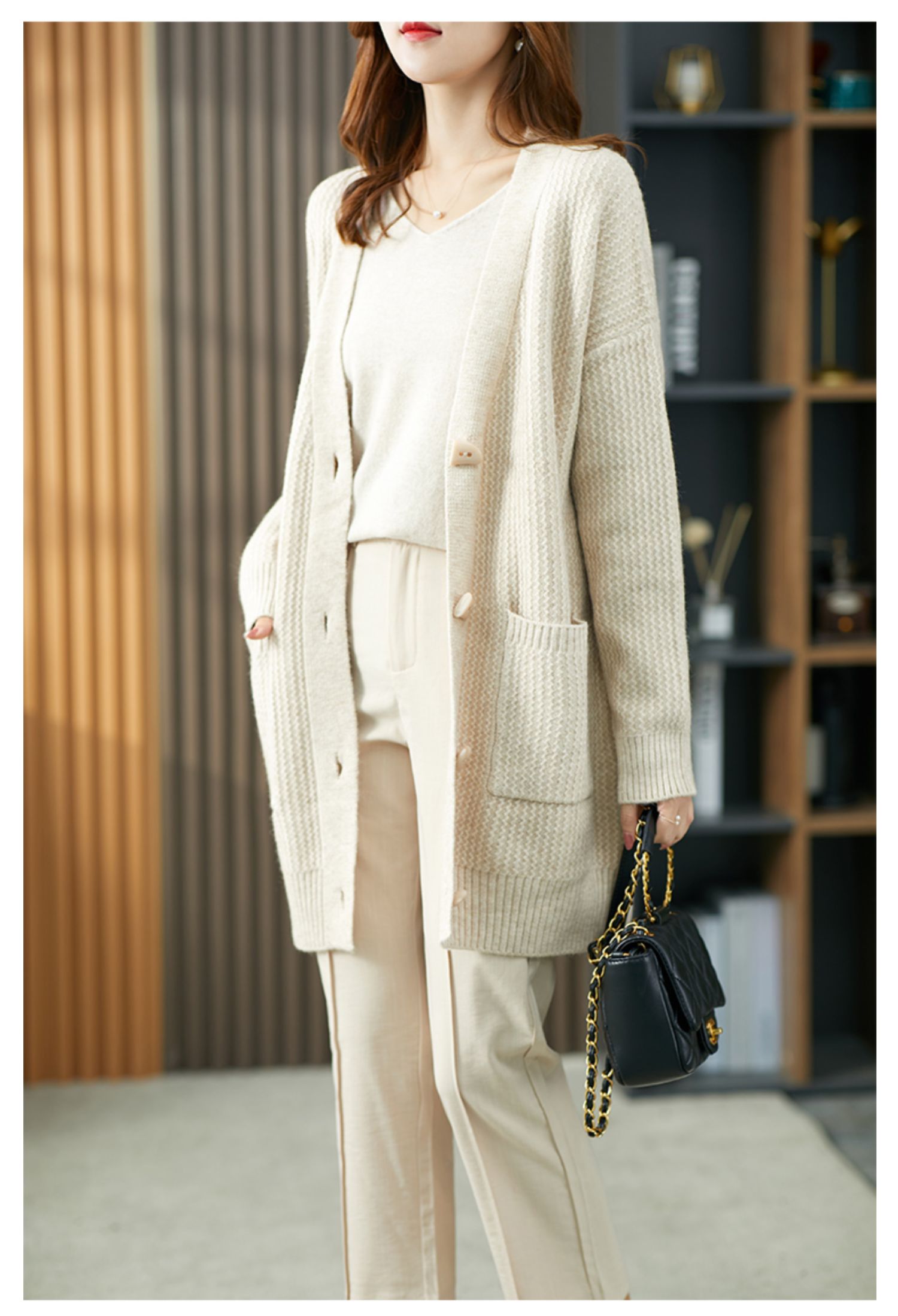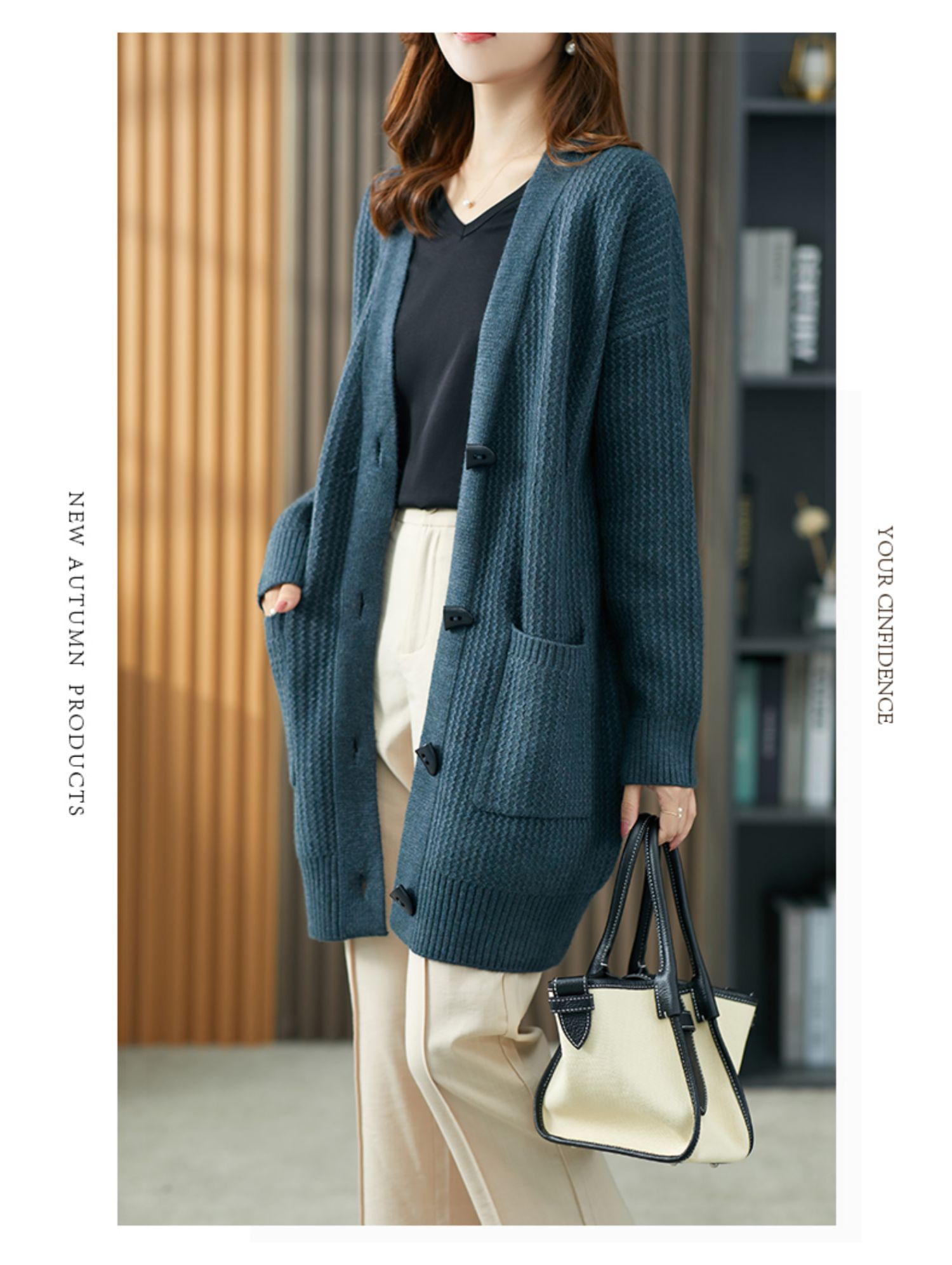 YX【现货7天】毛衣开衫女中长款秋季2023新款针织衫外套韩版潮宽松外搭上衣