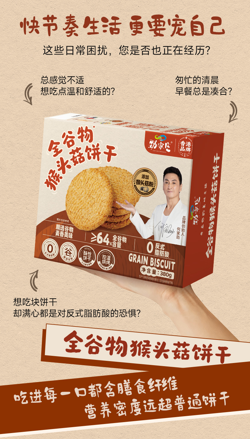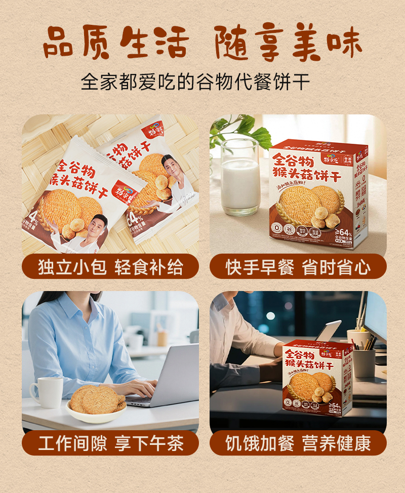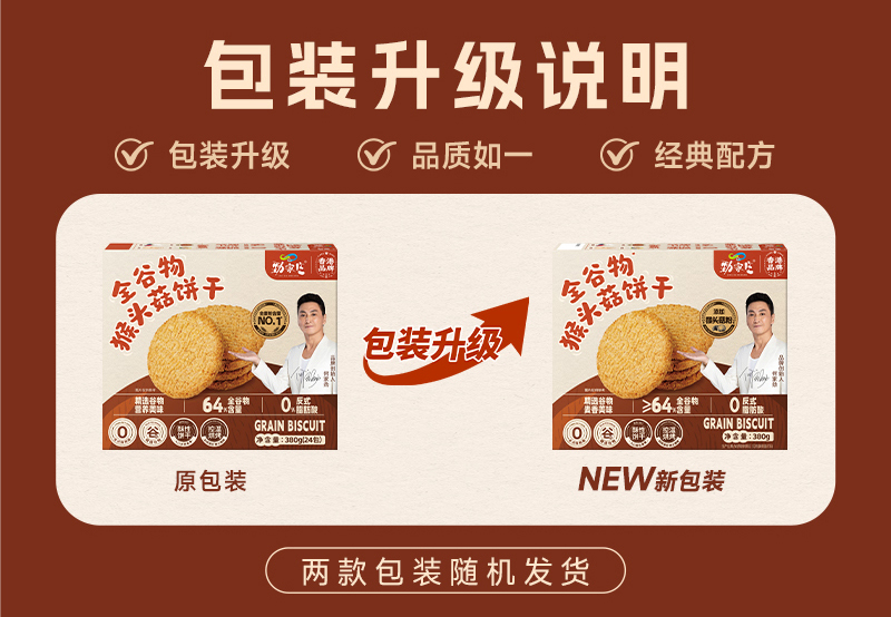 全谷物猴头菇饼干 380g/盒 24包一大盒