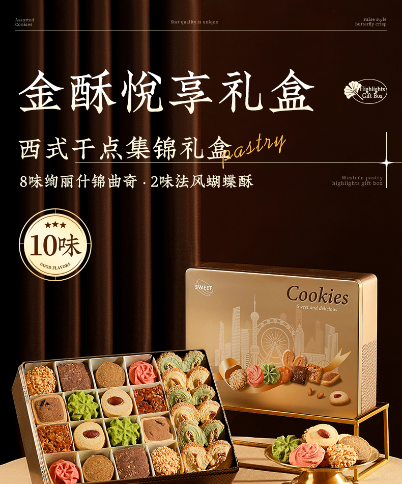 【金酥悦享礼盒】悠享时曲奇饼干蝴蝶酥七夕饼干礼盒送女神伴手礼360g