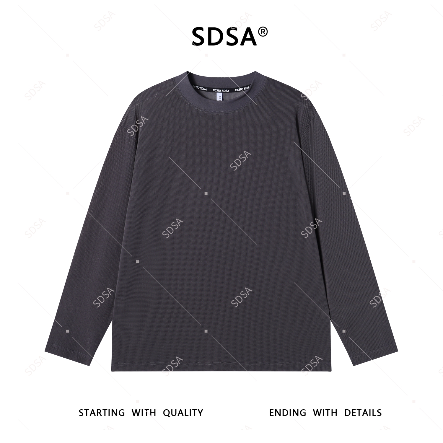 T4343SDSA秋季新款男士痞帅纯色亲肤玉米格设计圆领长袖T恤百搭时尚
