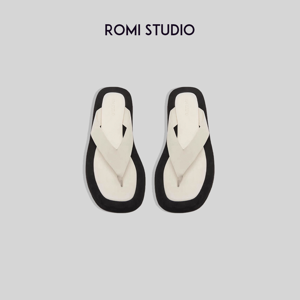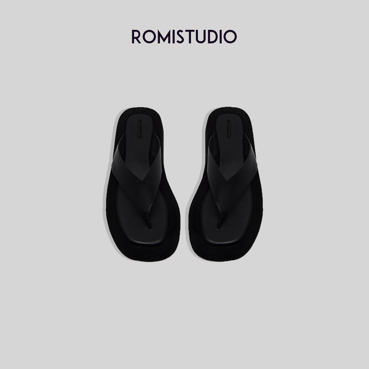 ROMI STUDIO“精致优雅”小众设计厚底人字夹趾外穿半拖凉鞋 S3558