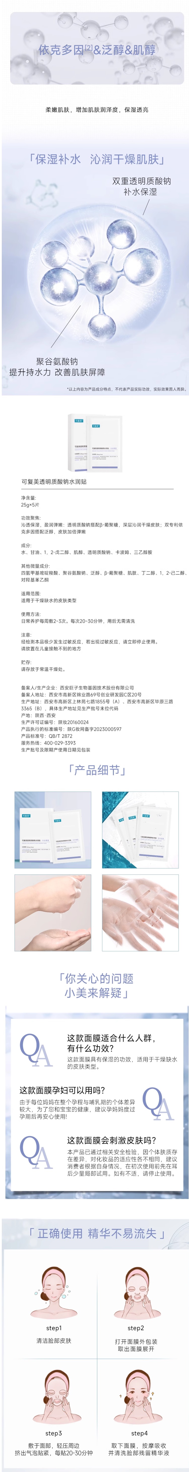 可复美透明质酸钠水润贴25g*5片(补水保湿)