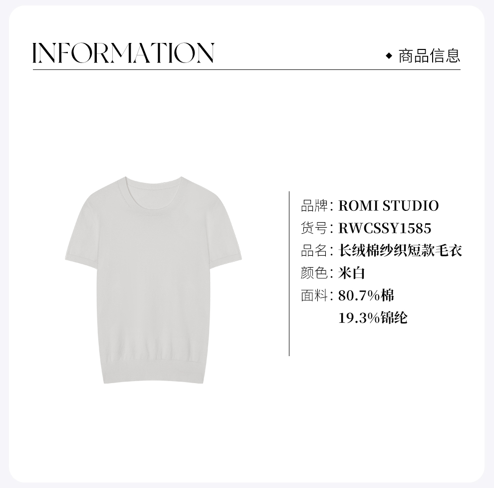 ROMI STUDIO“简约优雅”棉质圆领短袖超软洗水套头毛衫 RWCSSY1585