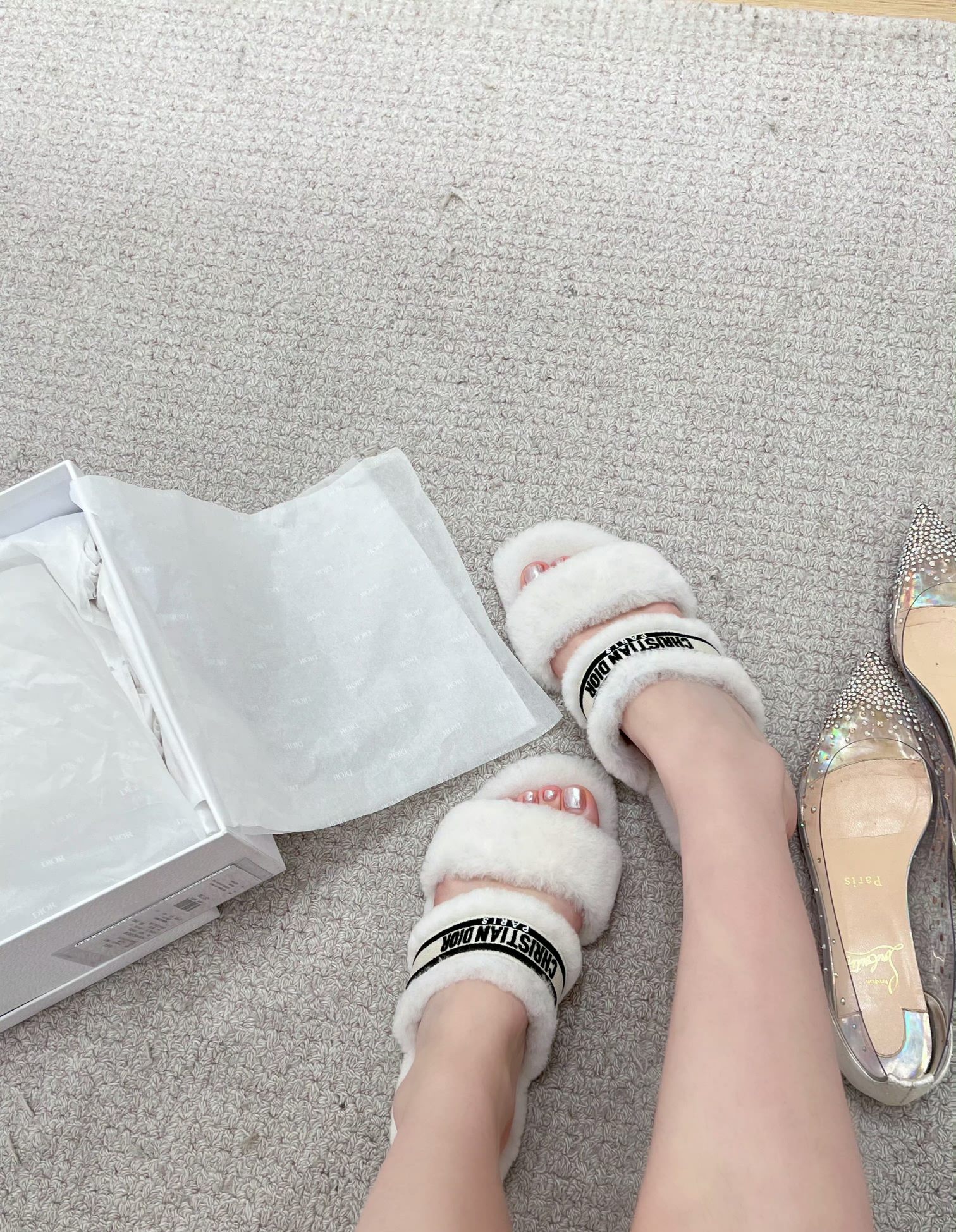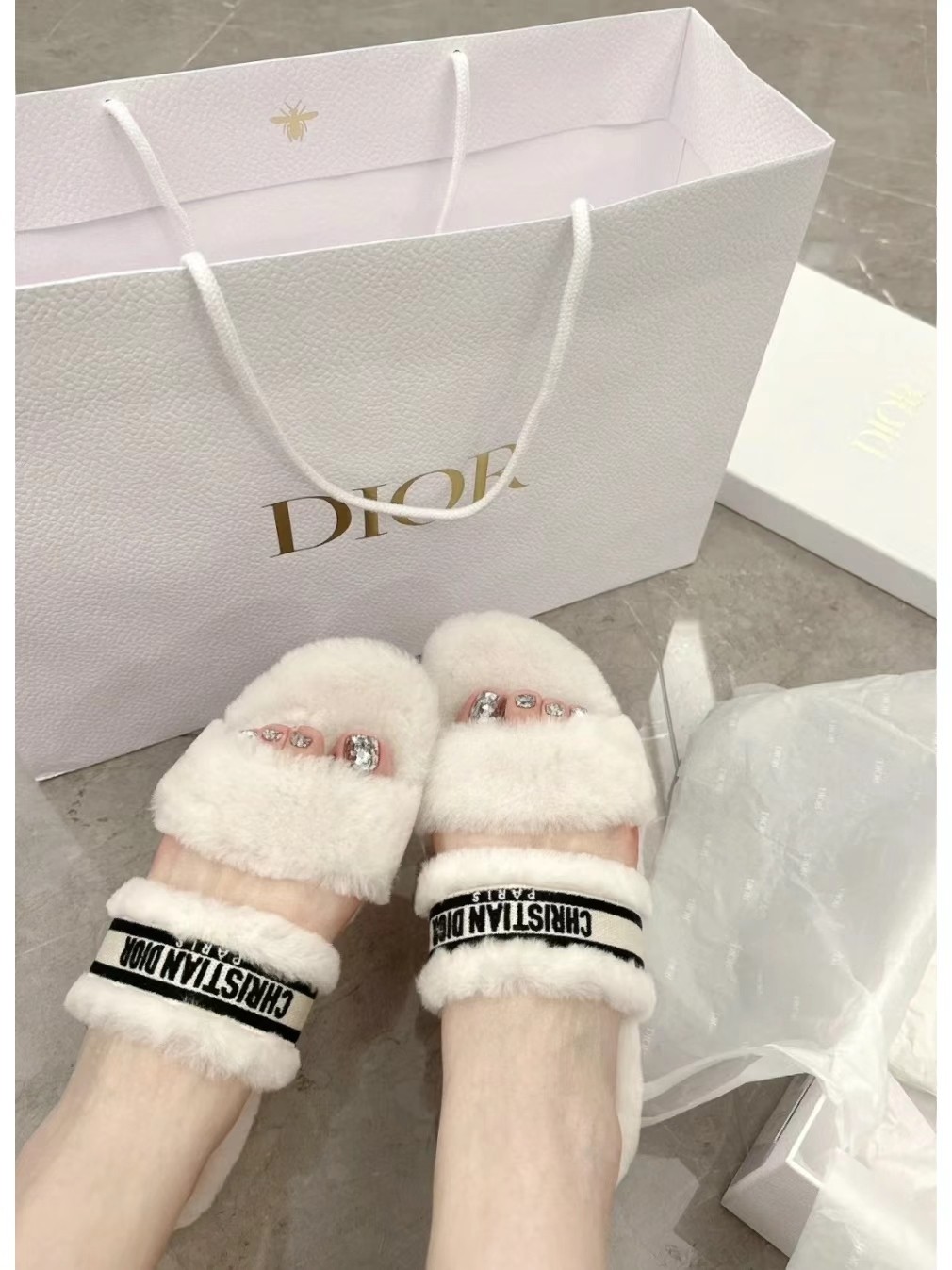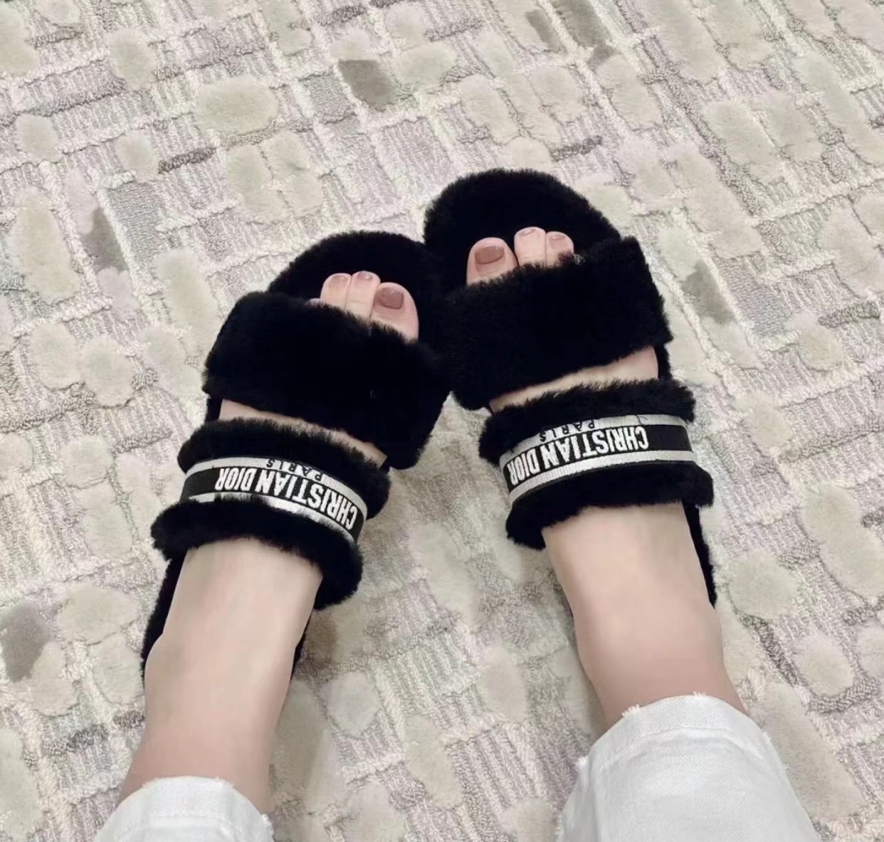 * 迪奥羊毛平底拖鞋