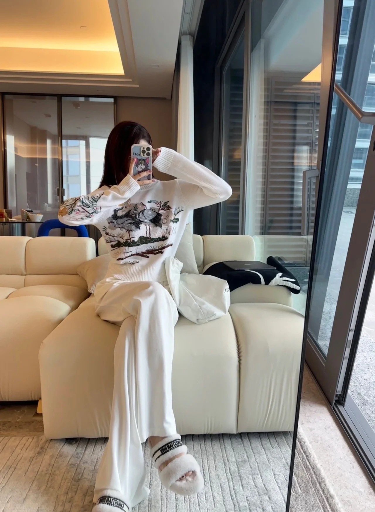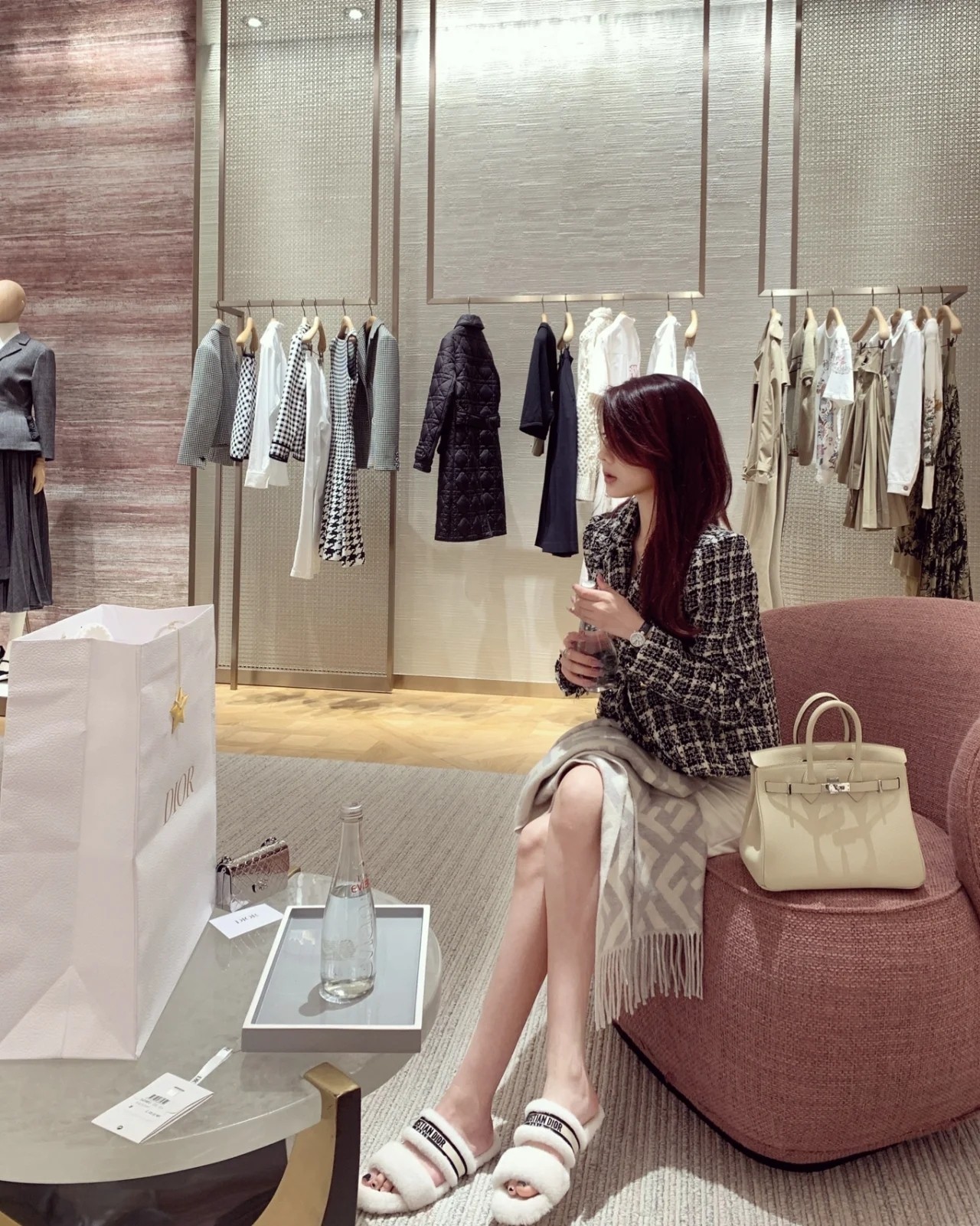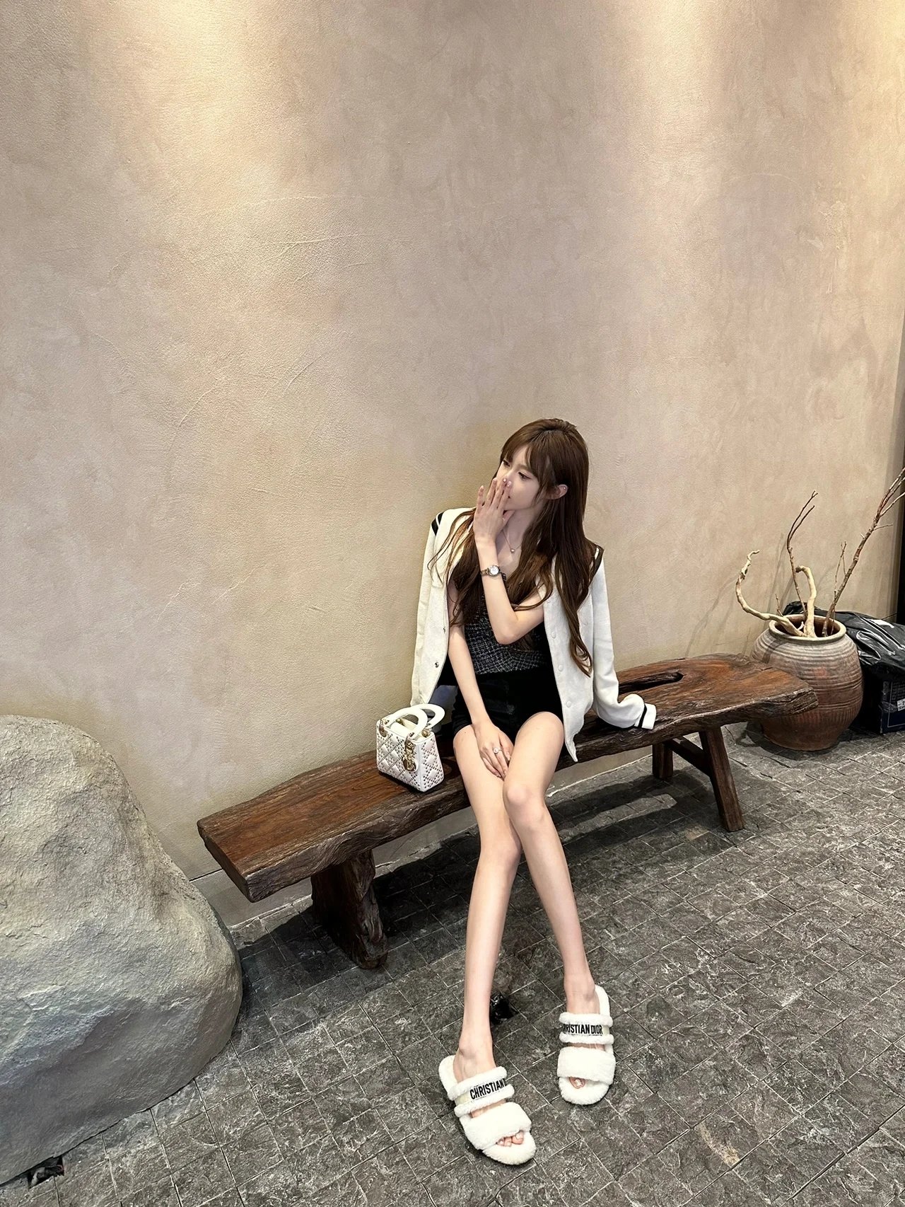 * 迪奥羊毛平底拖鞋