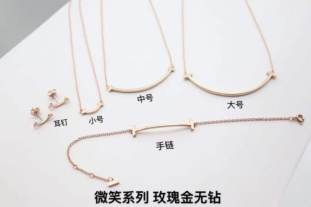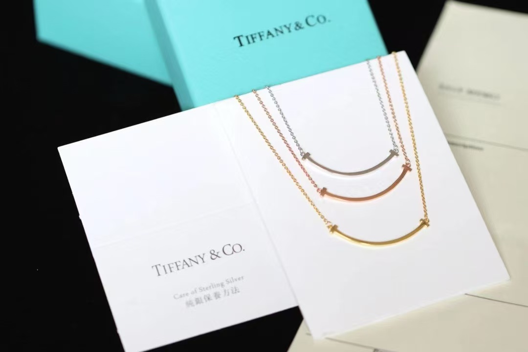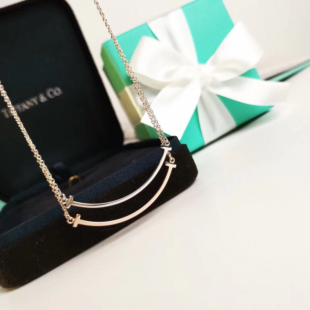 TIFFANY & CO.蒂芙尼 T 系列 Smile 笑脸 V金 项链 多尺寸无钻(XTY)