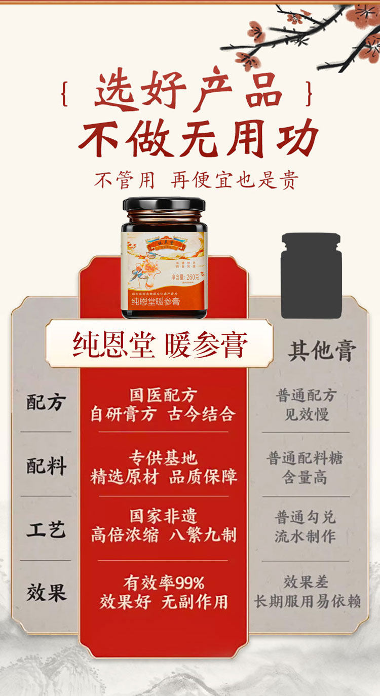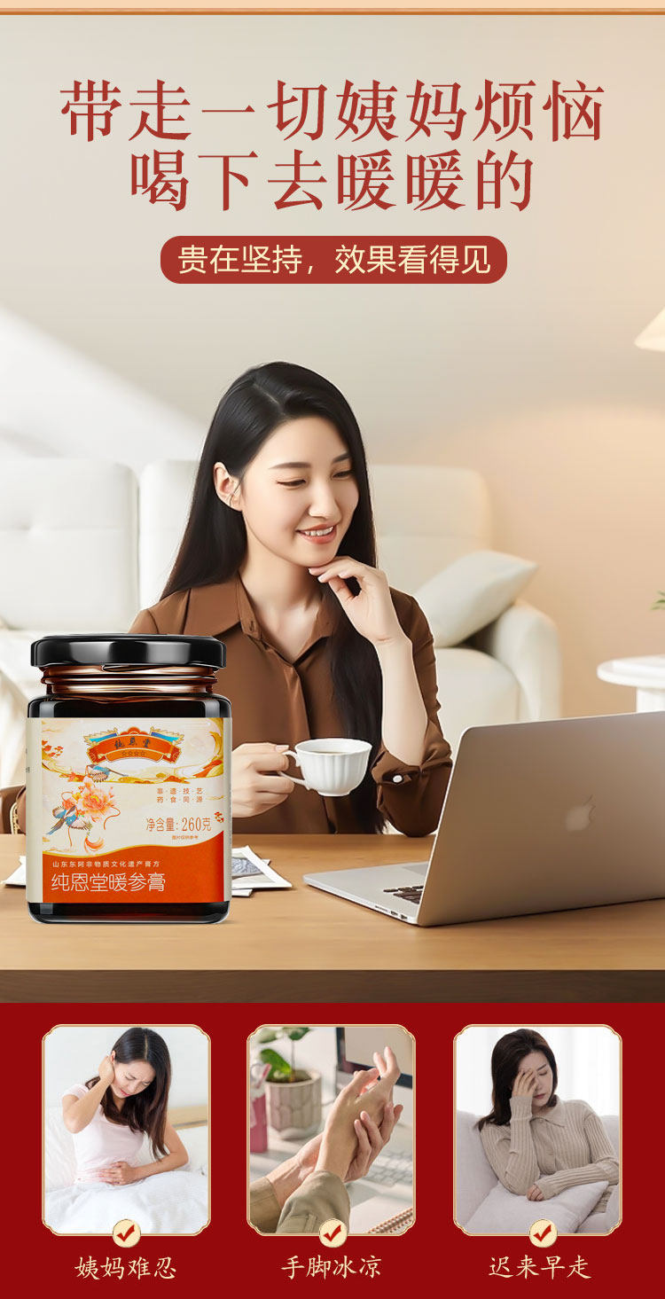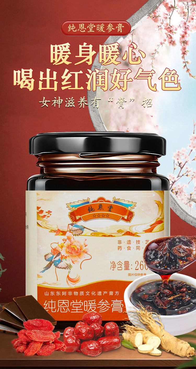 纯恩堂阿胶姜枣暖参膏旗舰店补气养血养颜暖身驱寒正品旗舰店