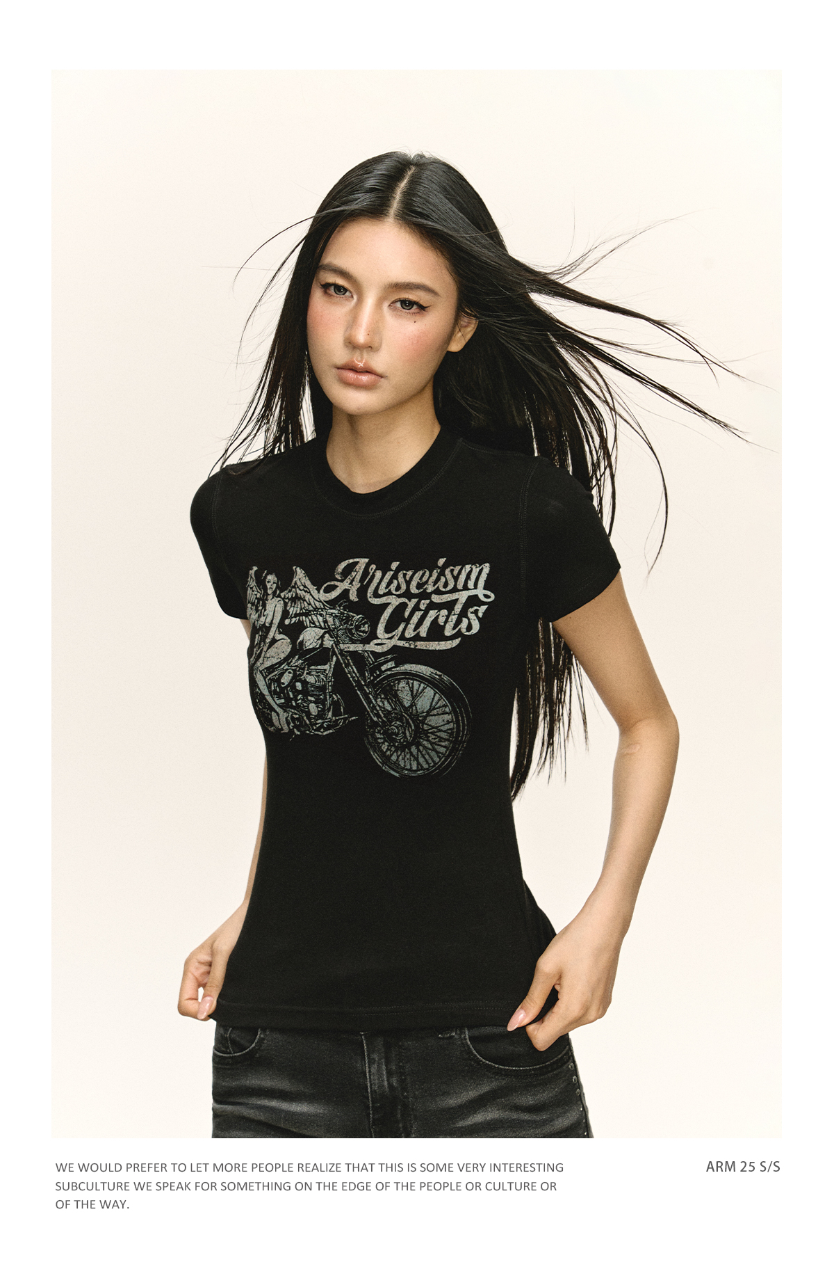 Ariseism 美式复古小圆领修身短袖t恤女2025夏季新款百搭显瘦上衣