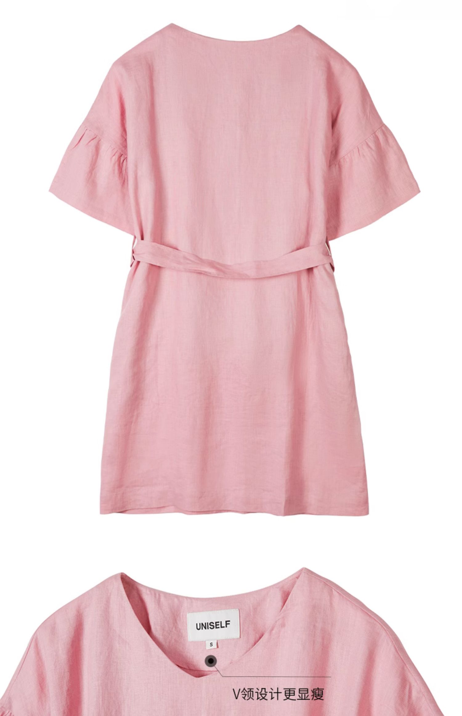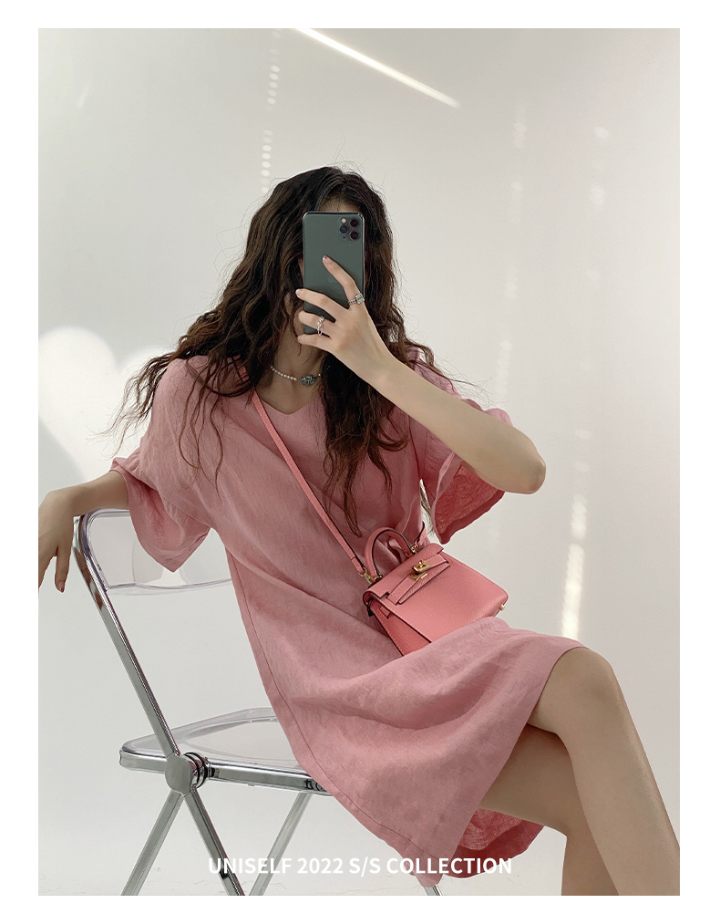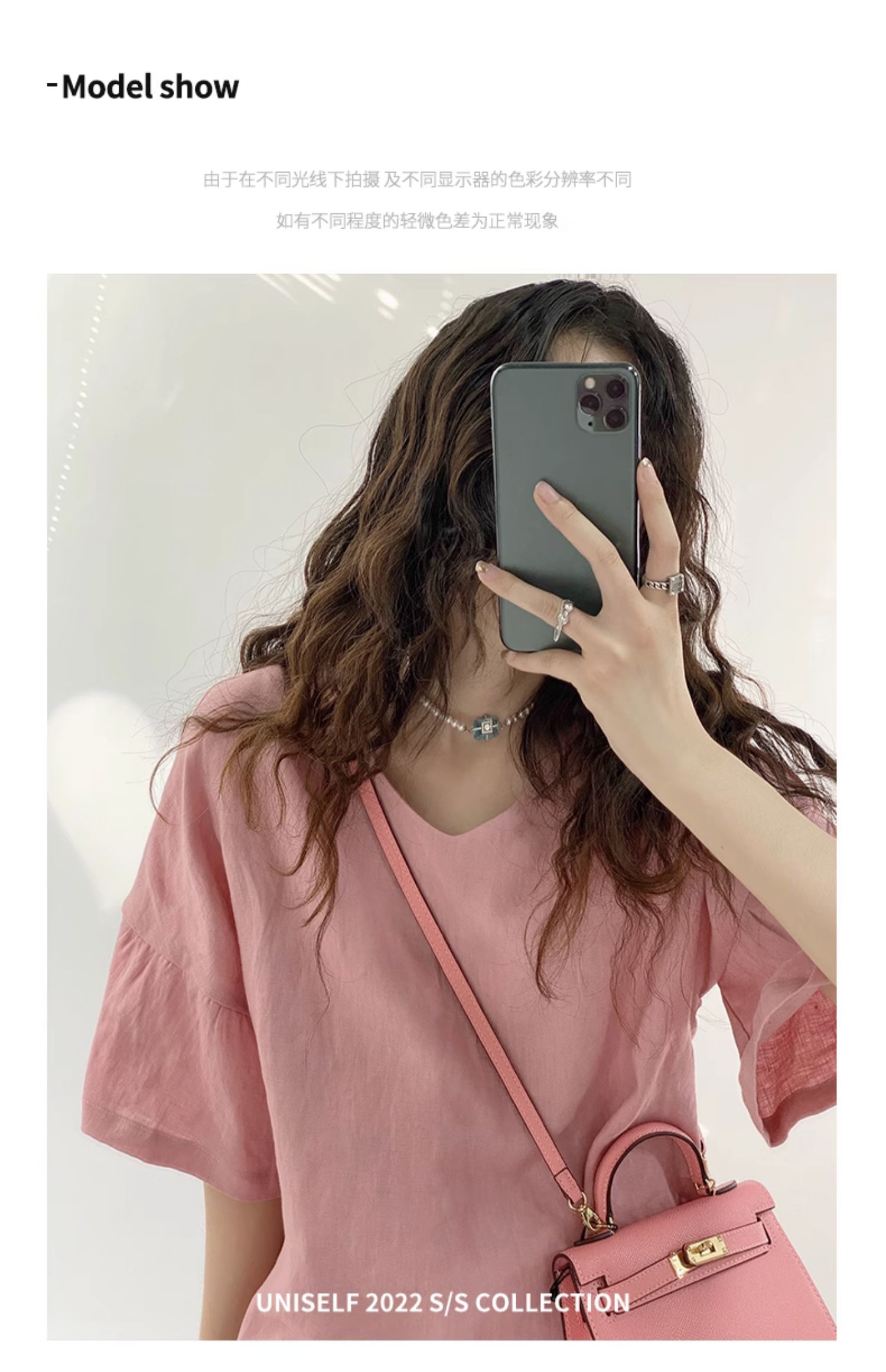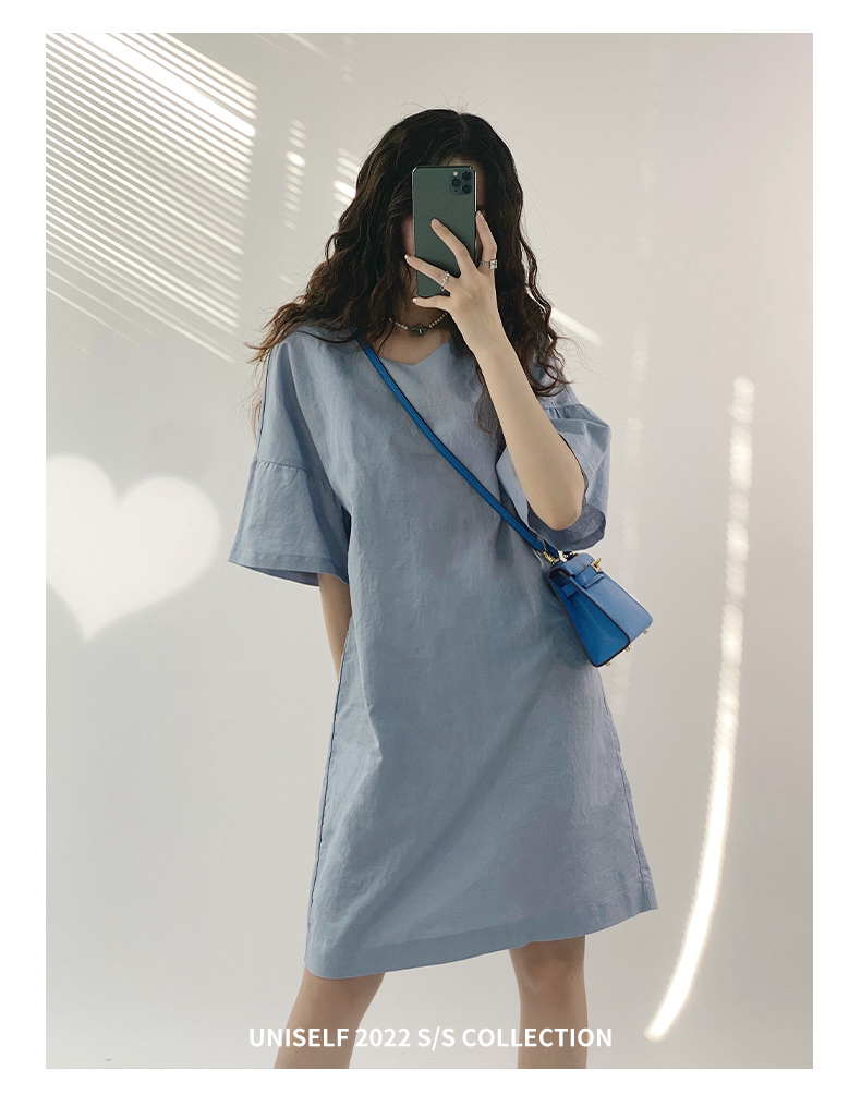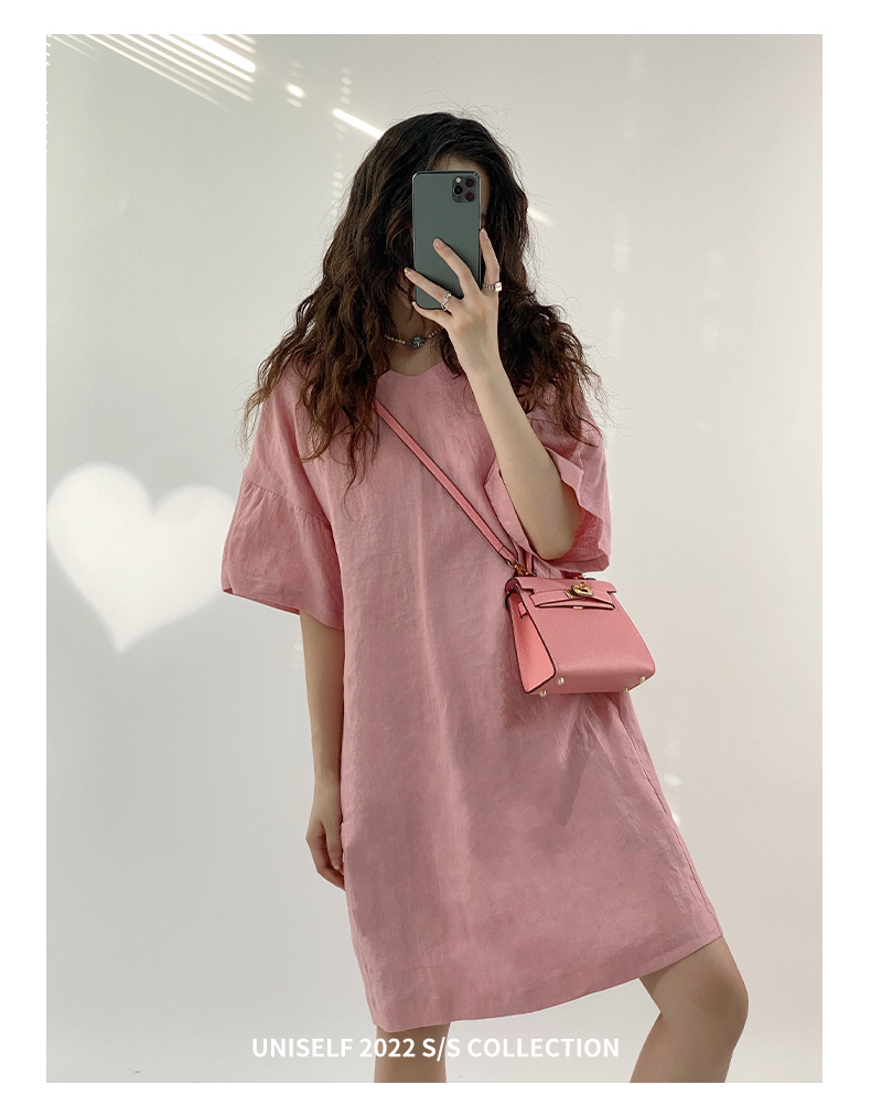 YX【现货7天】荷叶袖连衣裙2023年新款女夏季显瘦气质名媛宽松直筒裙中长款裙子