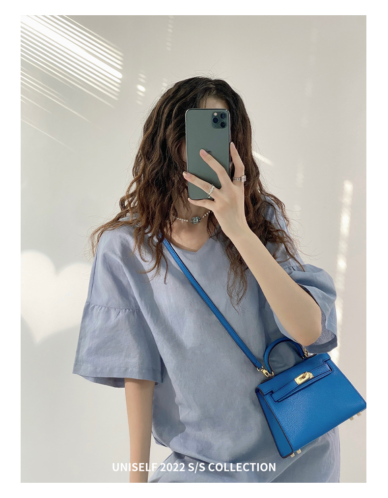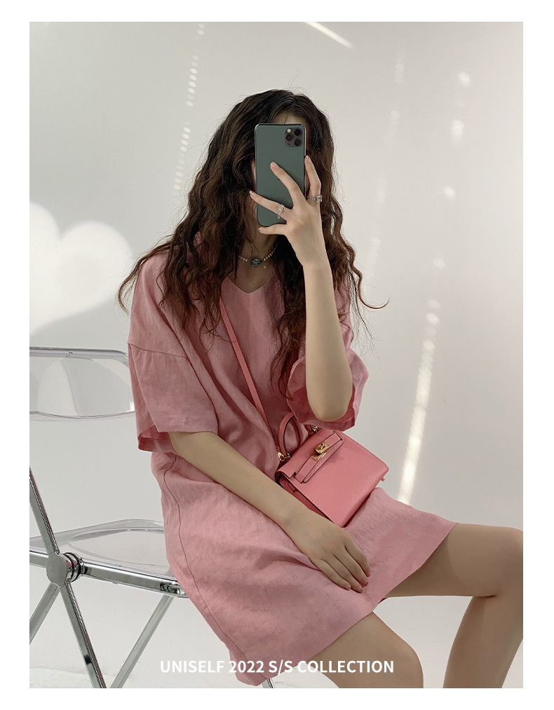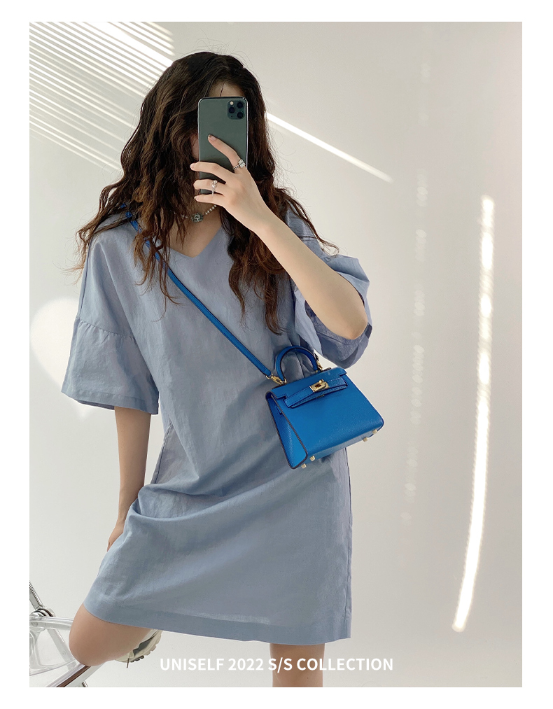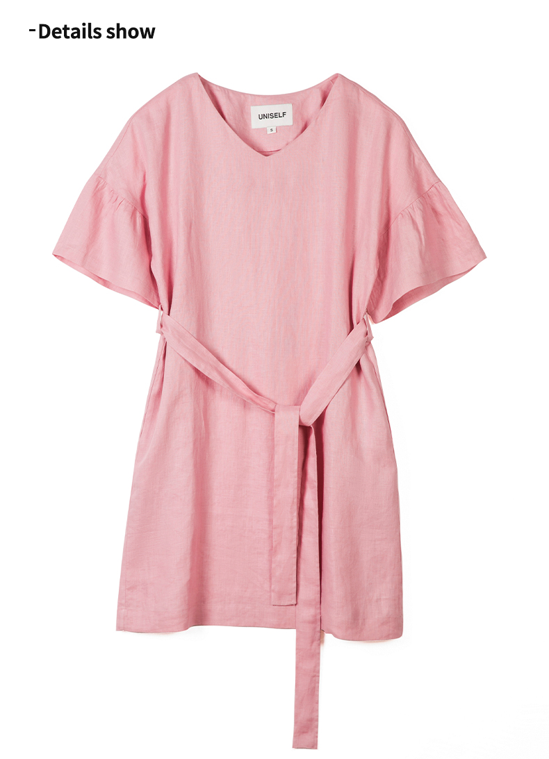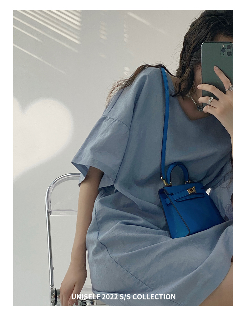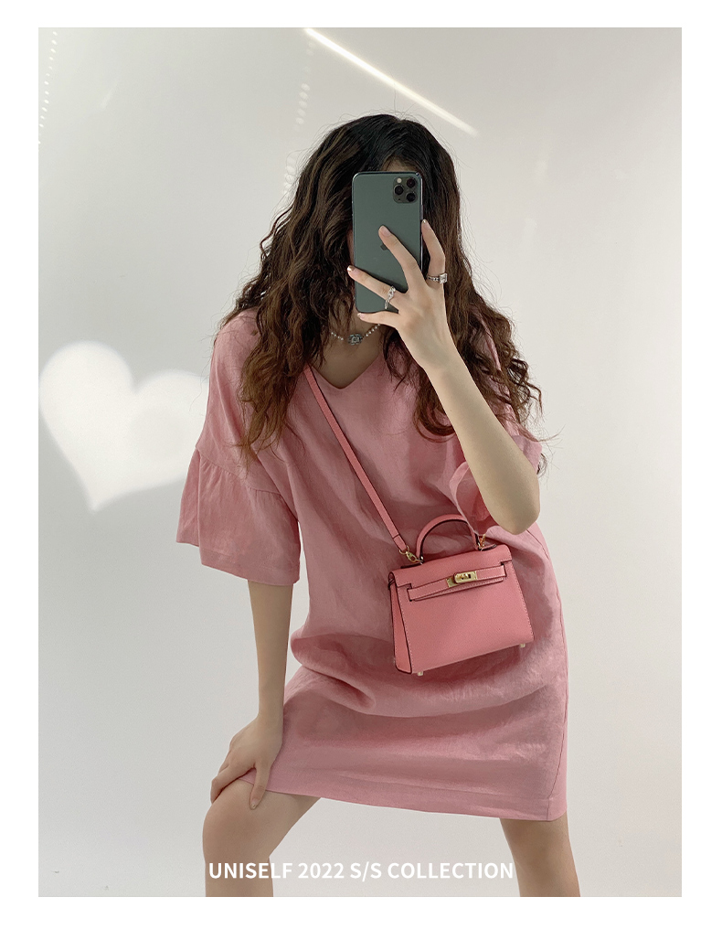 YX【现货7天】荷叶袖连衣裙2023年新款女夏季显瘦气质名媛宽松直筒裙中长款裙子