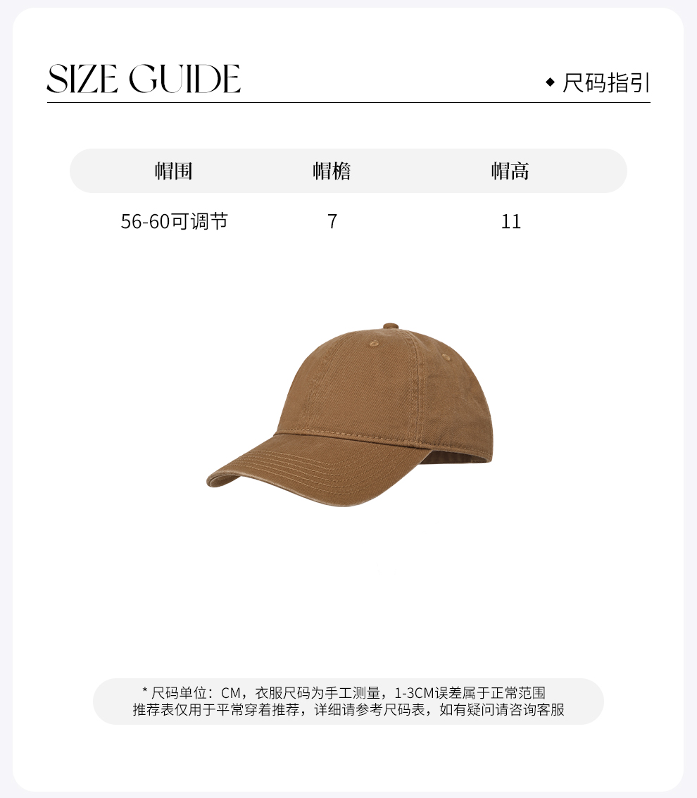 ROMI STUDIO“简约复古”全棉水洗软顶弯檐头包脸棒球帽 RWCLP07327