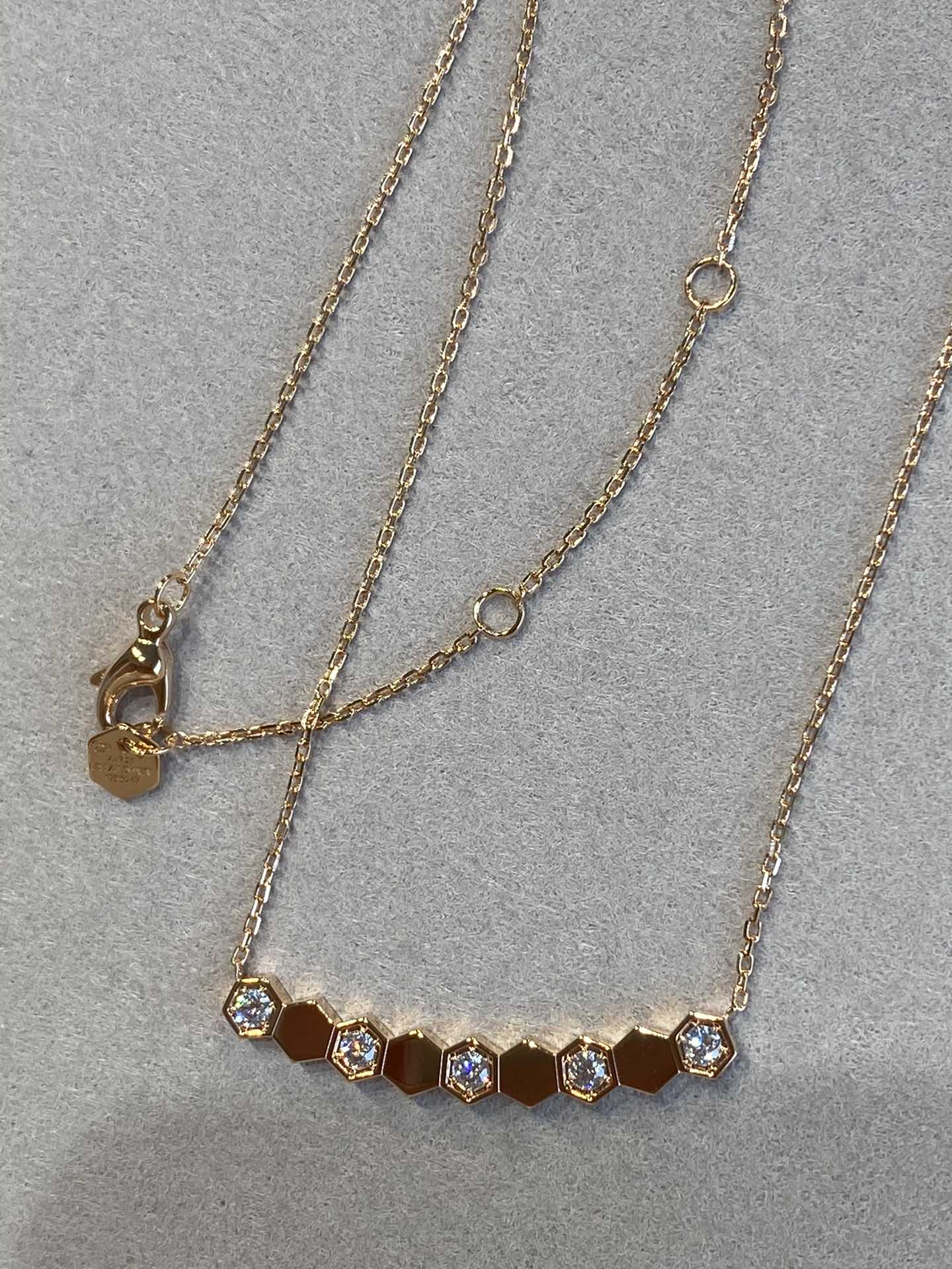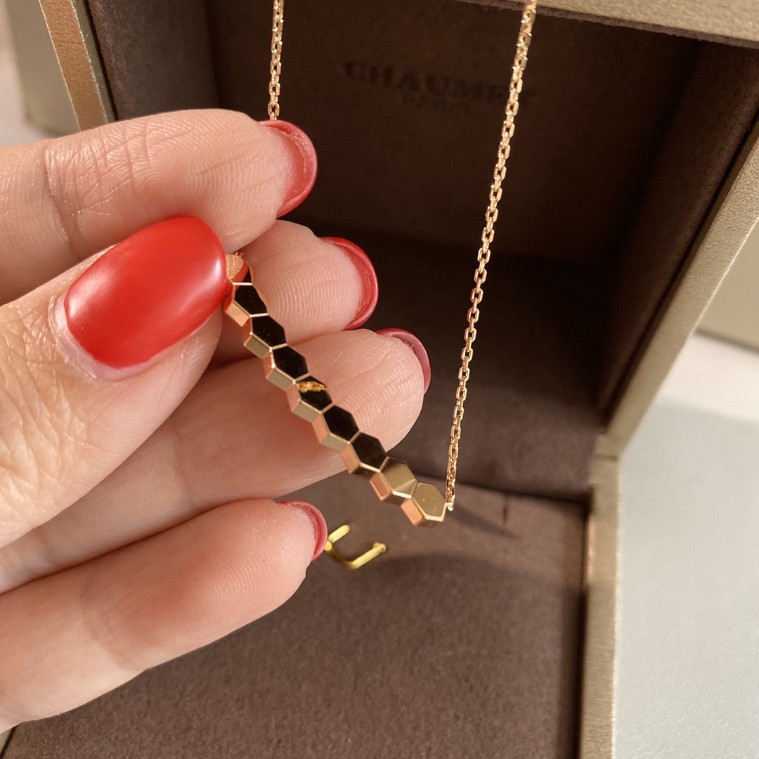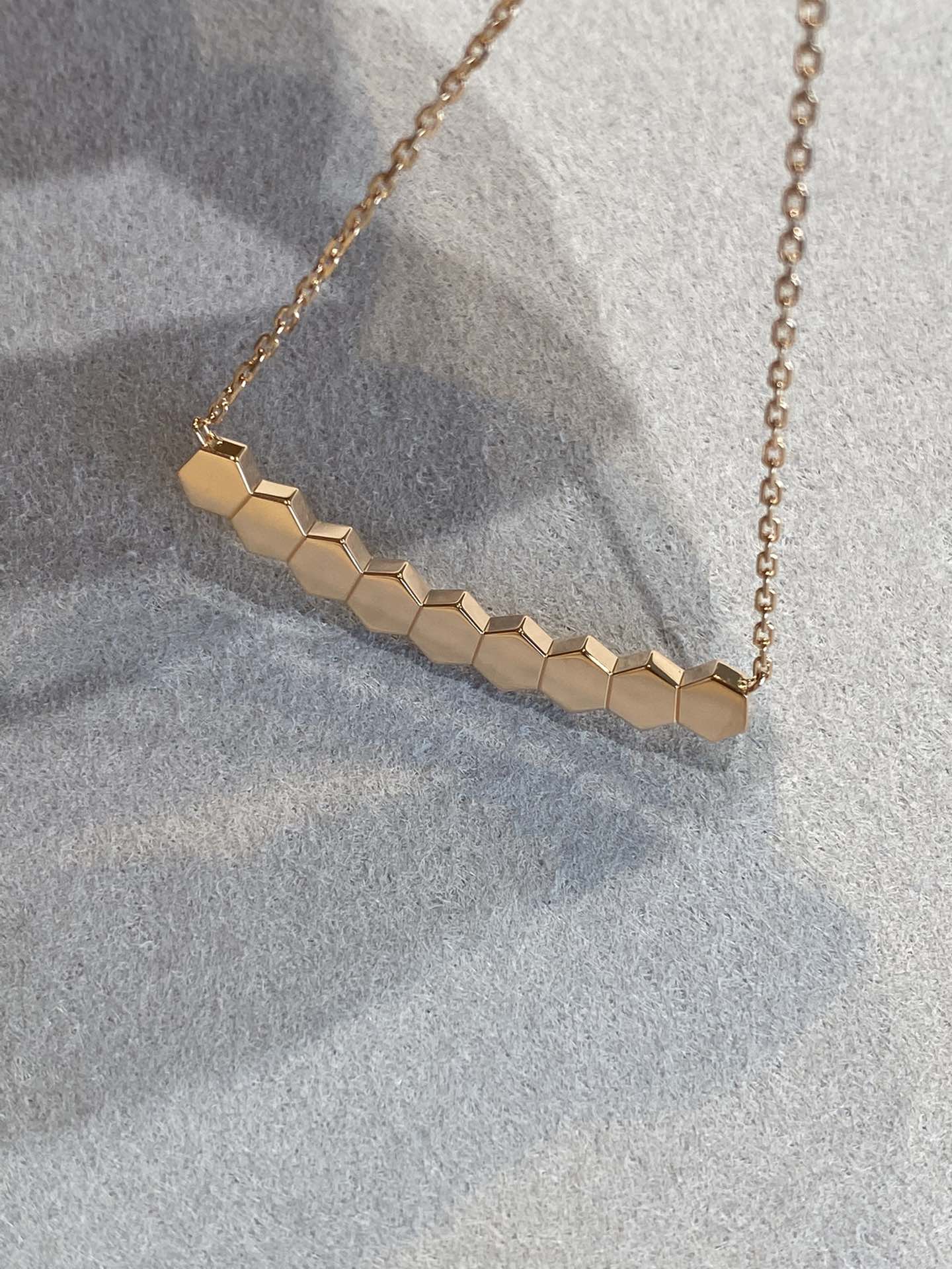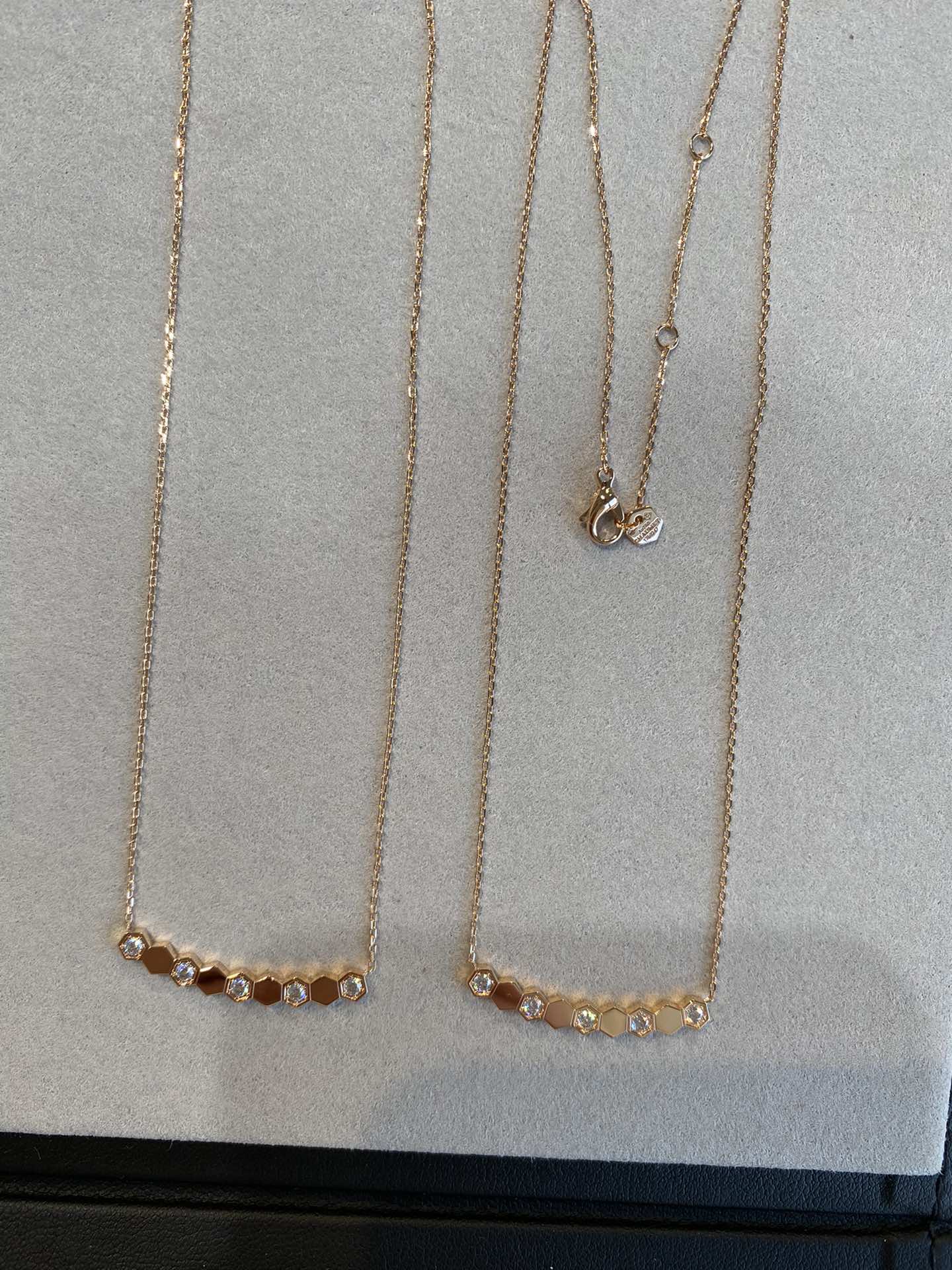 这款项链属于小众款,尚*美的设计都是比较有品味,工艺就不多赘述了大家都已经很懂,项链可以双面佩戴,材质通体V金