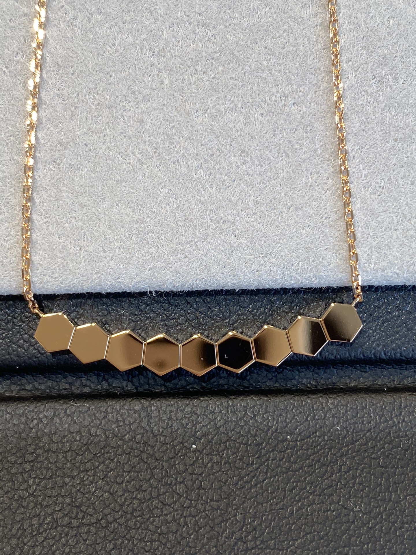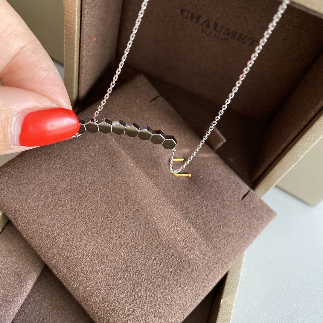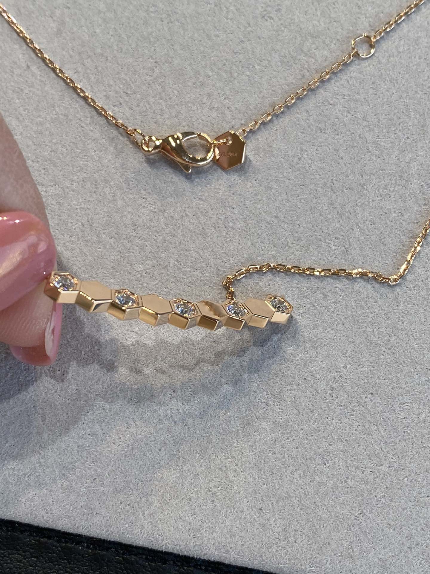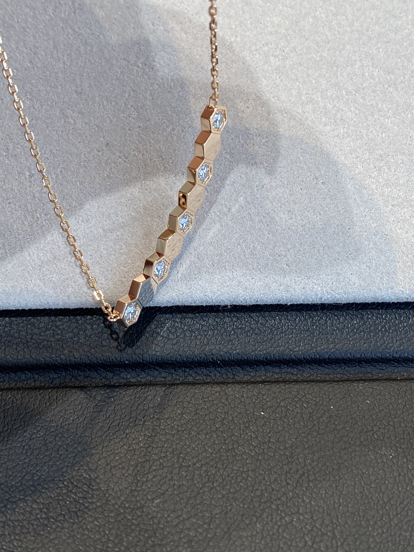 这款项链属于小众款,尚*美的设计都是比较有品味,工艺就不多赘述了大家都已经很懂,项链可以双面佩戴,材质通体V金