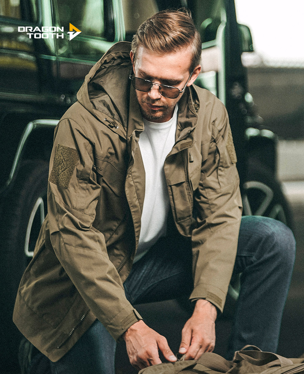 三代特战风衣春秋中长款户外防风休闲连帽男士户外长袖工装