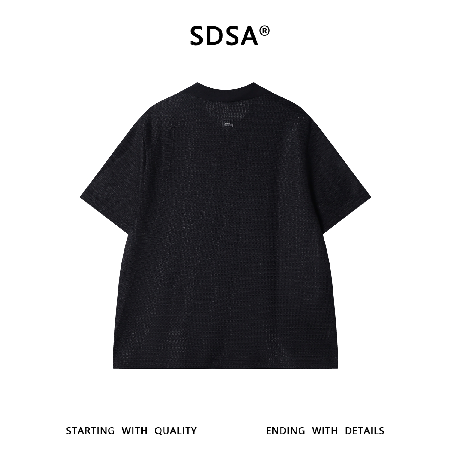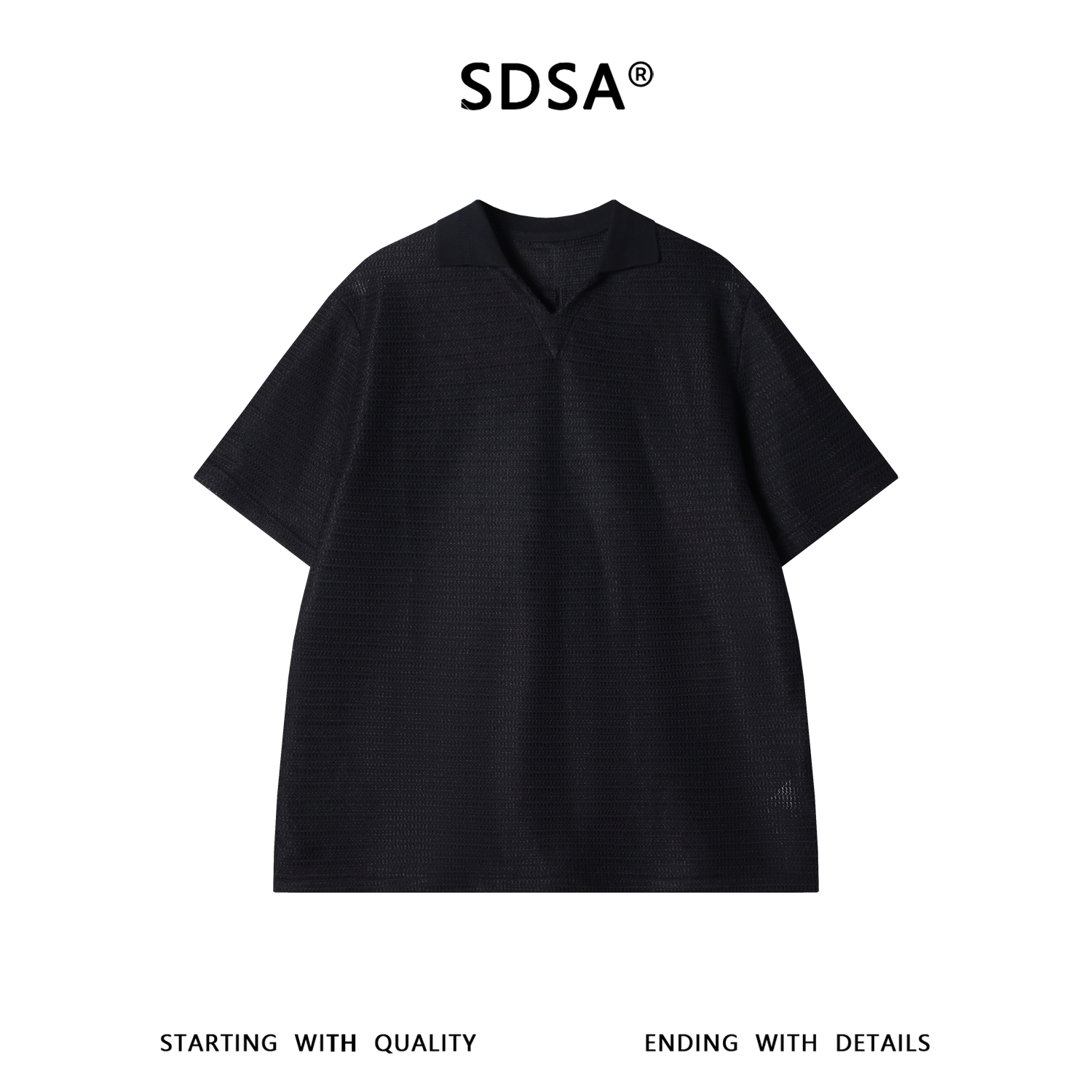 SDSA男装2026新款高贵轻奢简约时尚纯色小V翻领短袖T恤宽松休闲