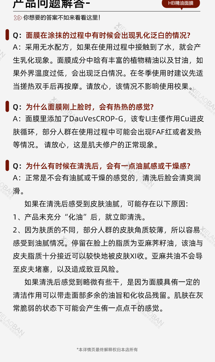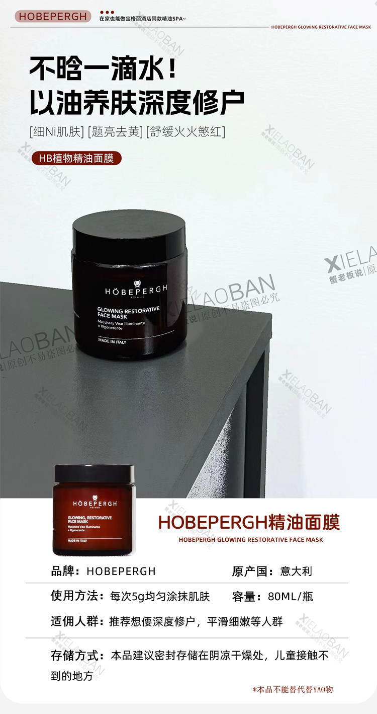 意大利HB精油富养面膜发光提亮舒缓滋养抗氧以油养肤焕采护理正品