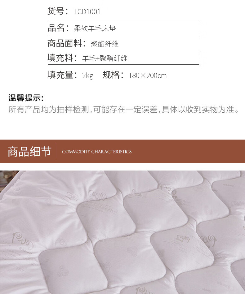 恒源祥礼业 TCD1001羊毛床垫 羊毛床垫