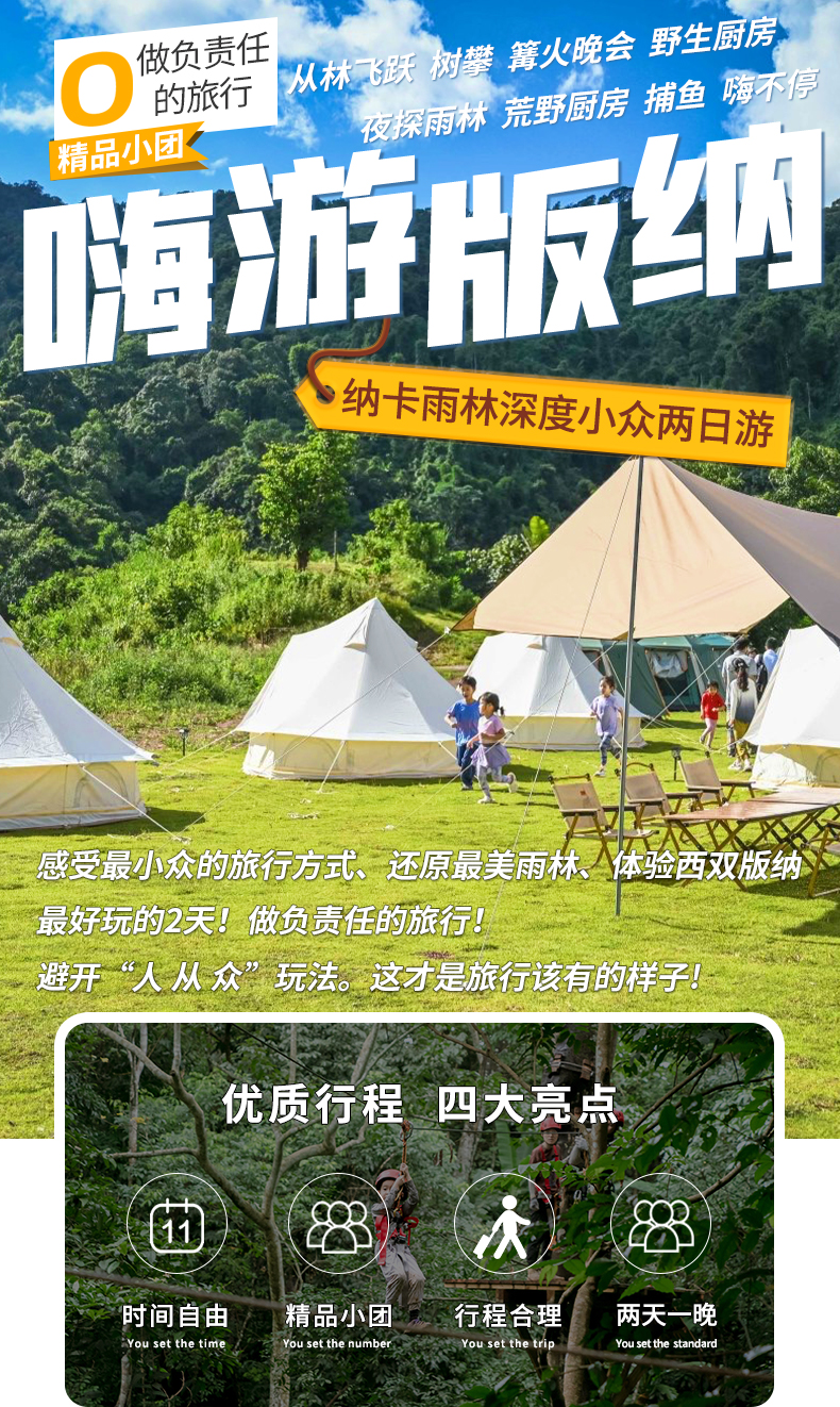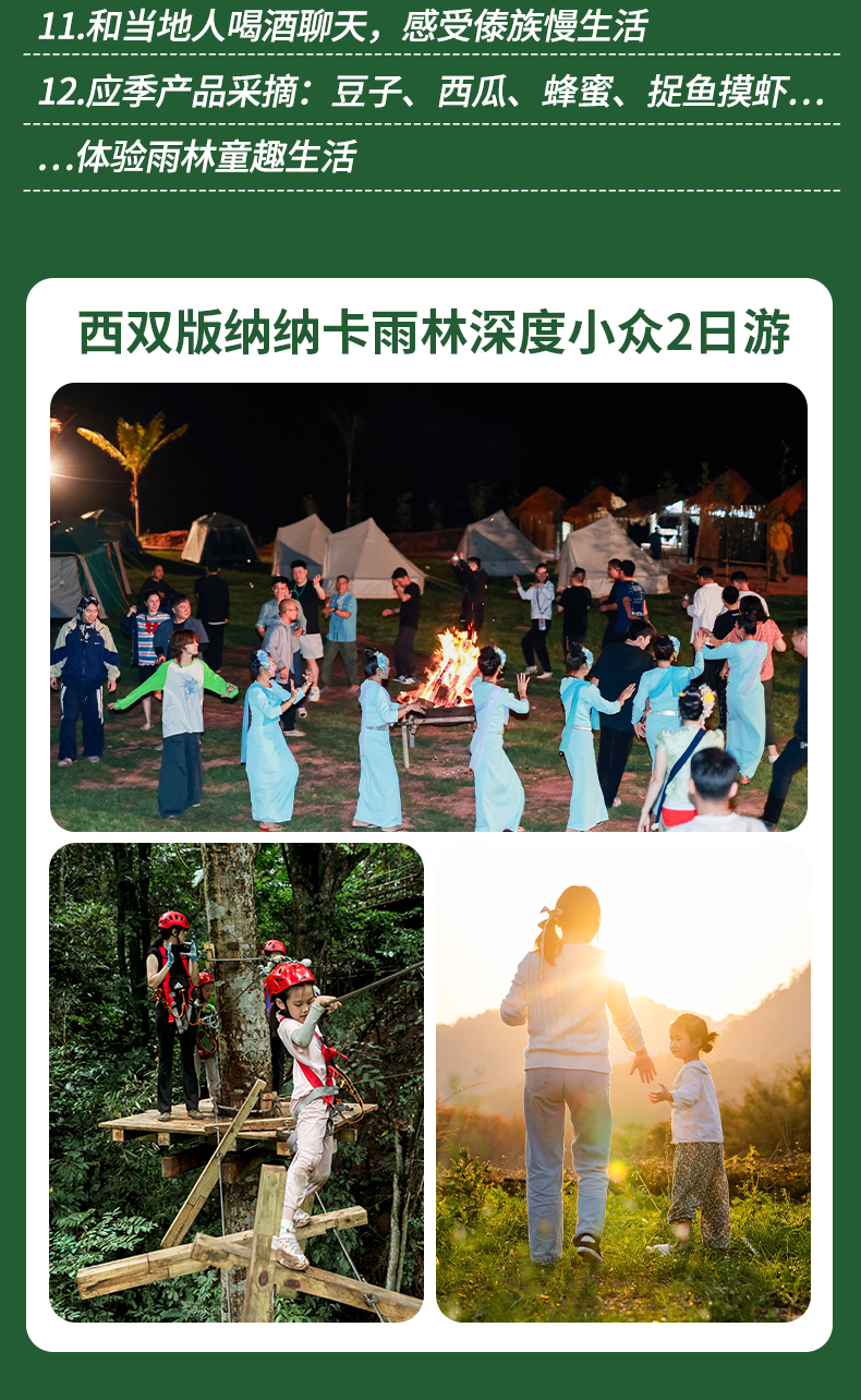 云南 | 版纳纳卡雨林研学版2天1晚,徒步研学/丛林飞跃/户外露营/傣族野餐/捕鱼割蜂蜜/夜探萤火虫/篝火晚会/水上竹筏/ATV越野摩托/雨林溯溪徒步/雨林保护公益项目/当地傣族向导!