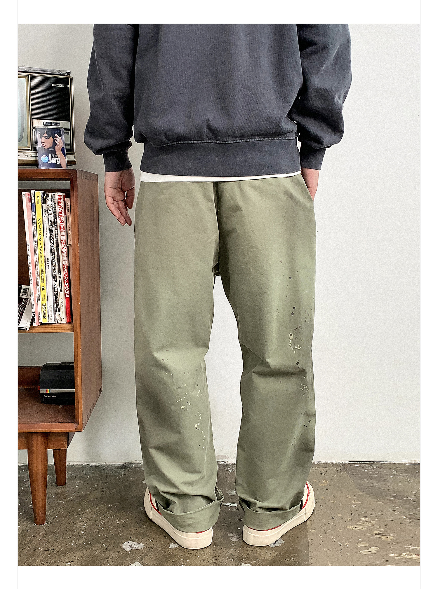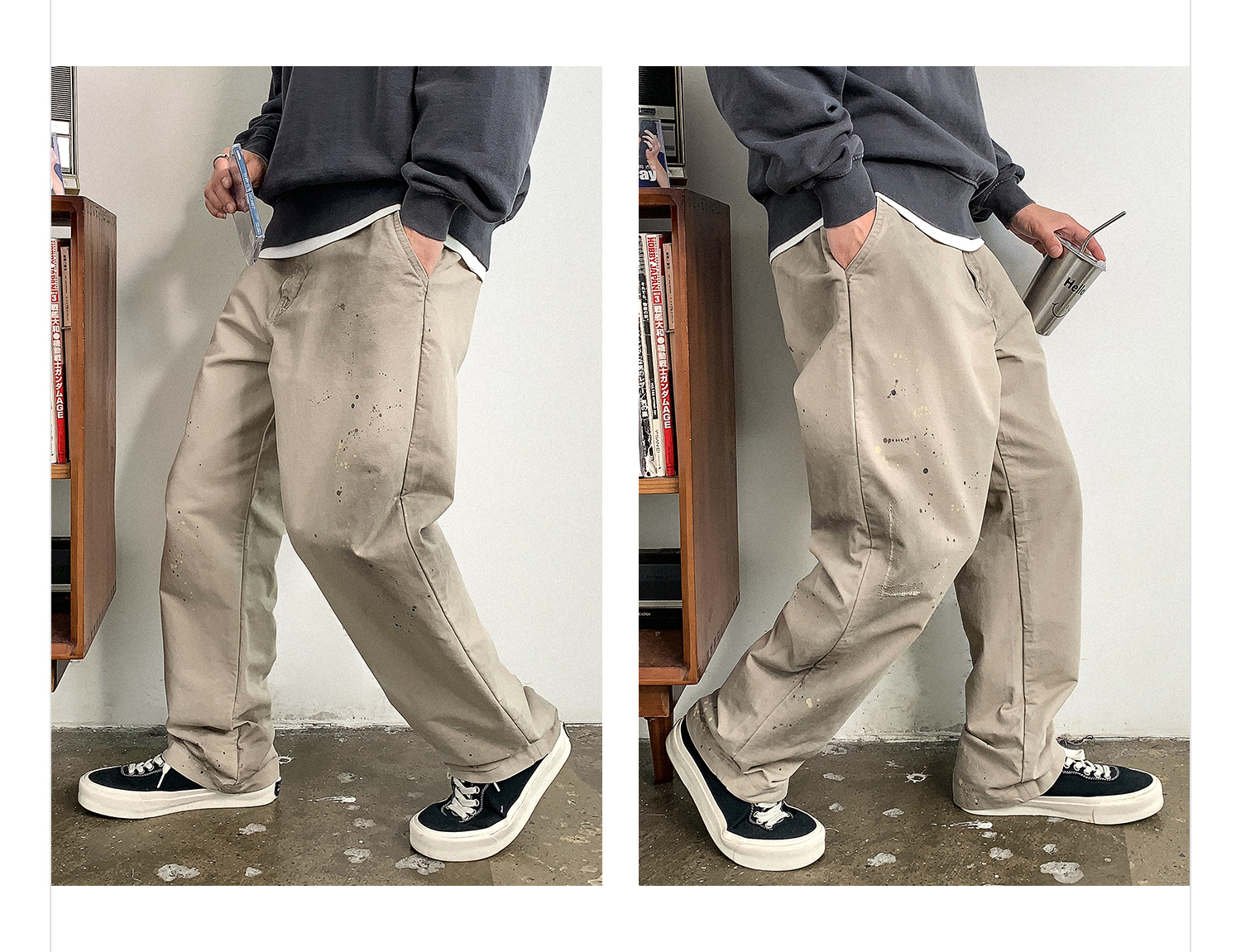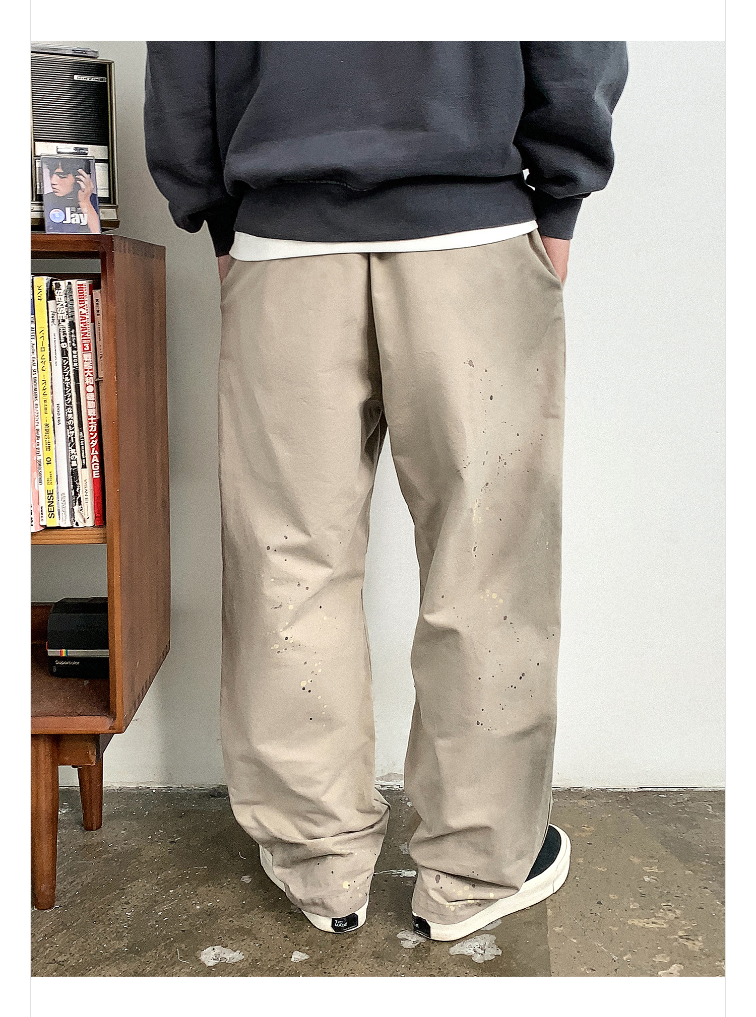 徐太浪日系高级感泼墨纯棉休闲裤男秋季通勤裤子宽松复古潮流长裤