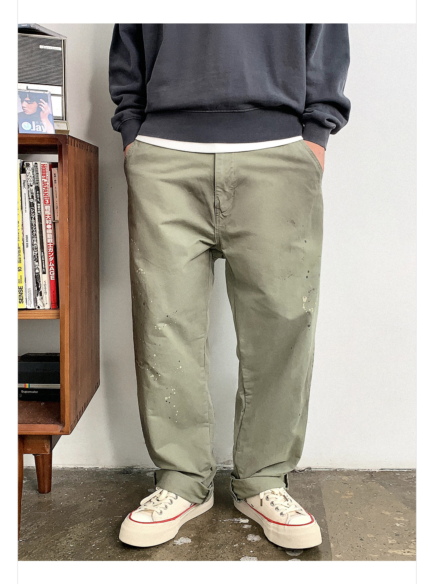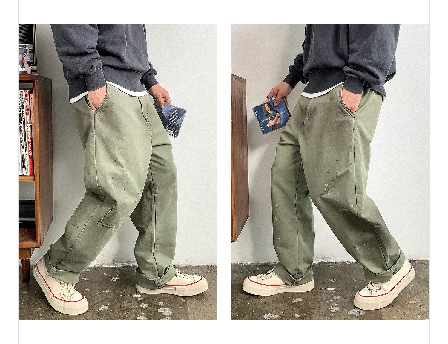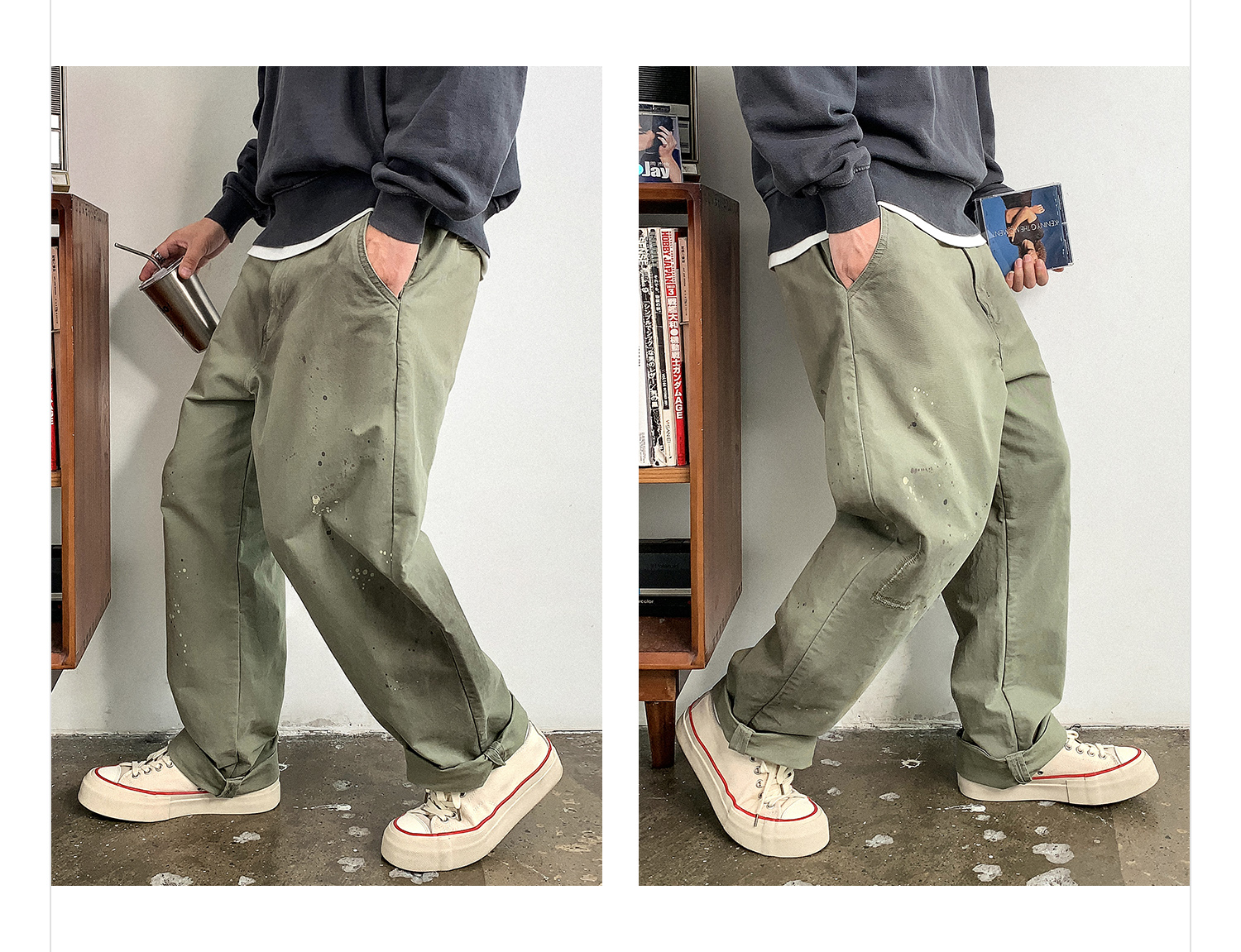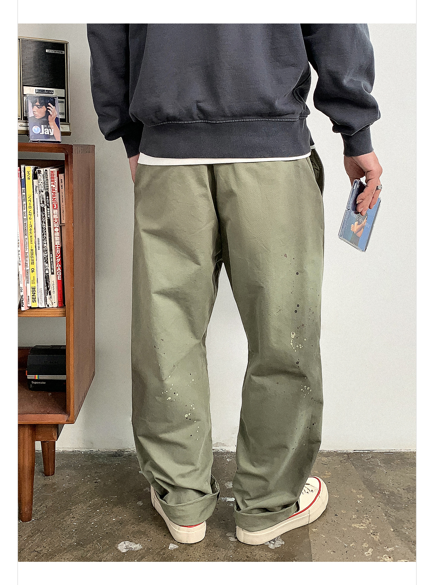 徐太浪日系高级感泼墨纯棉休闲裤男秋季通勤裤子宽松复古潮流长裤