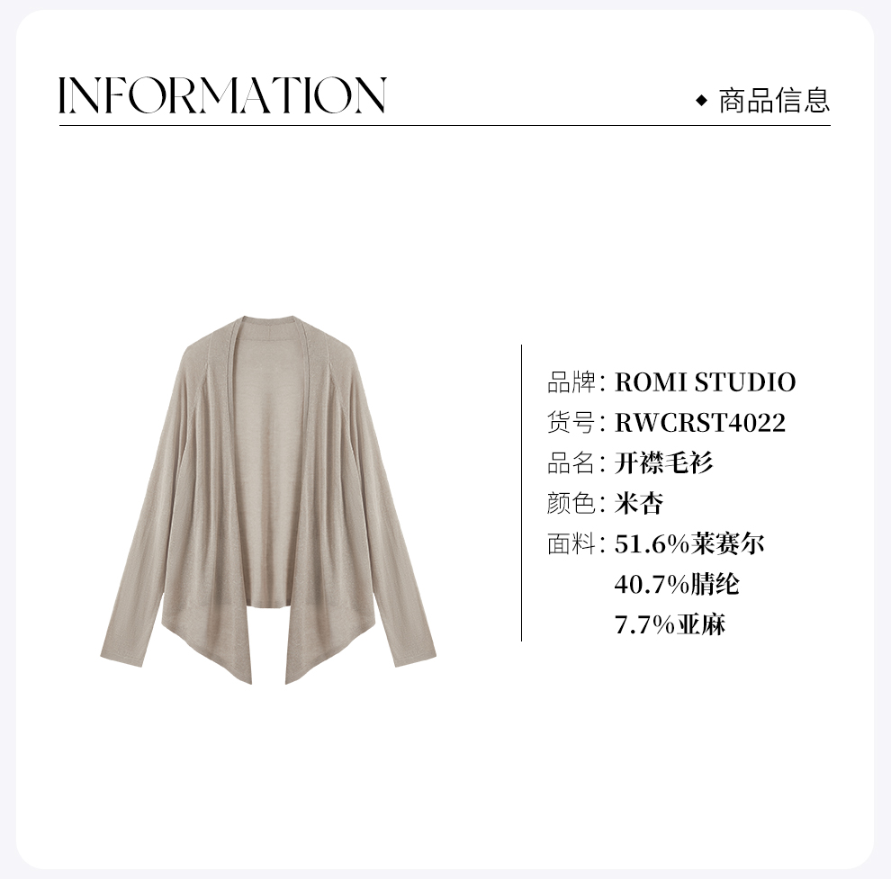 ROMI STUDIO“悠然法式”天丝亚麻混纺轻薄宽松针织开衫 RWCRST4022