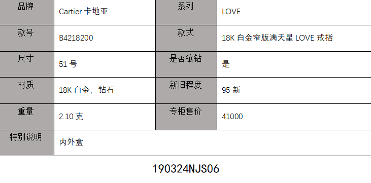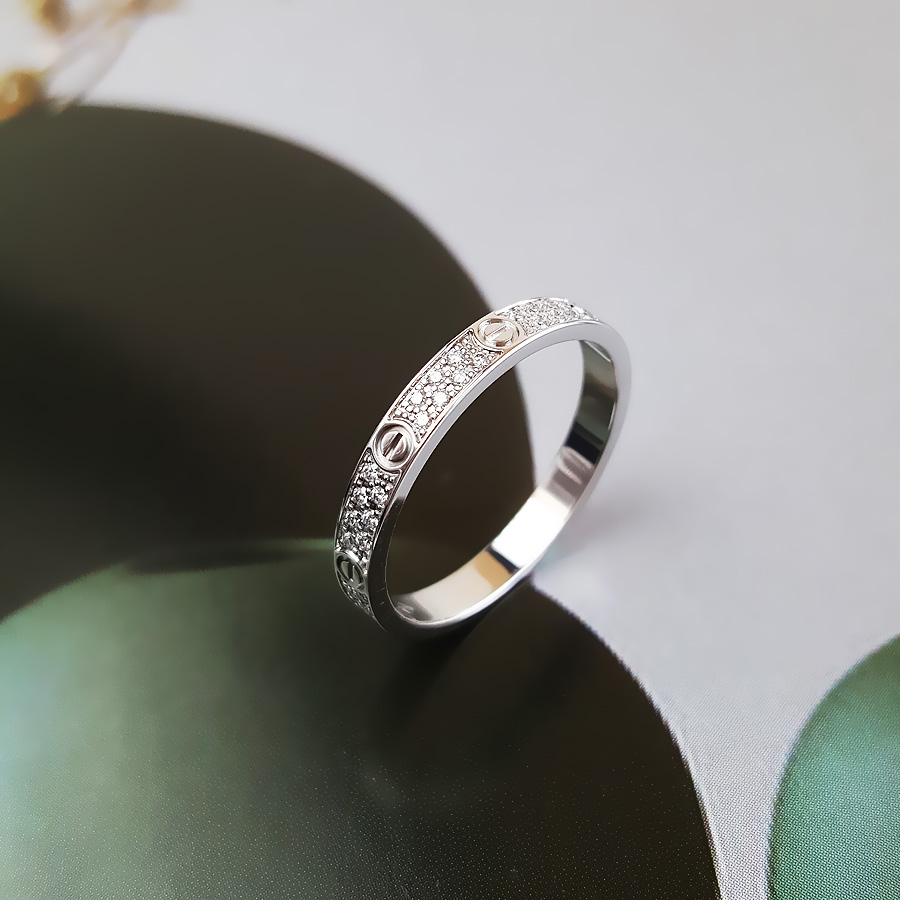 【95新】Cartier卡地亚 LOVE 18K白金窄版满天星LOVE戒指 51号 190324NJS06