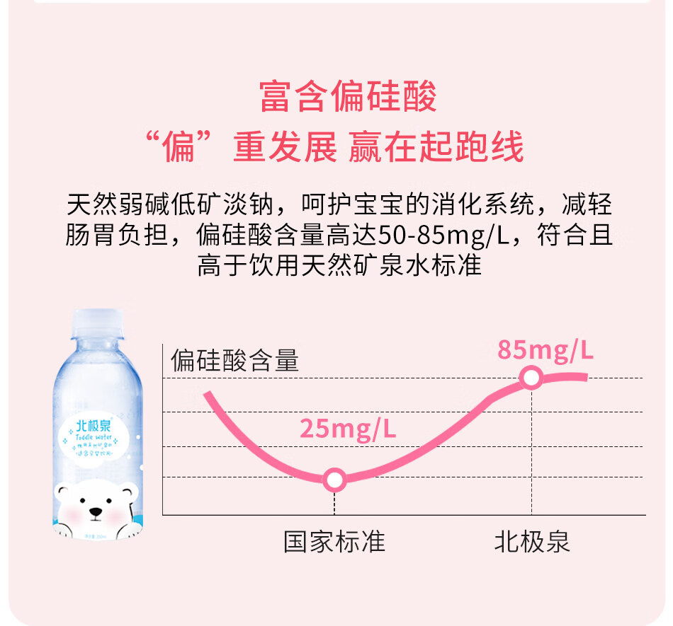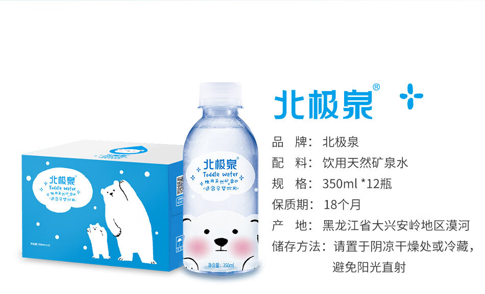 北极泉适合孕婴饮用天然矿泉水350mlx12瓶婴儿水宝宝冲泡奶粉