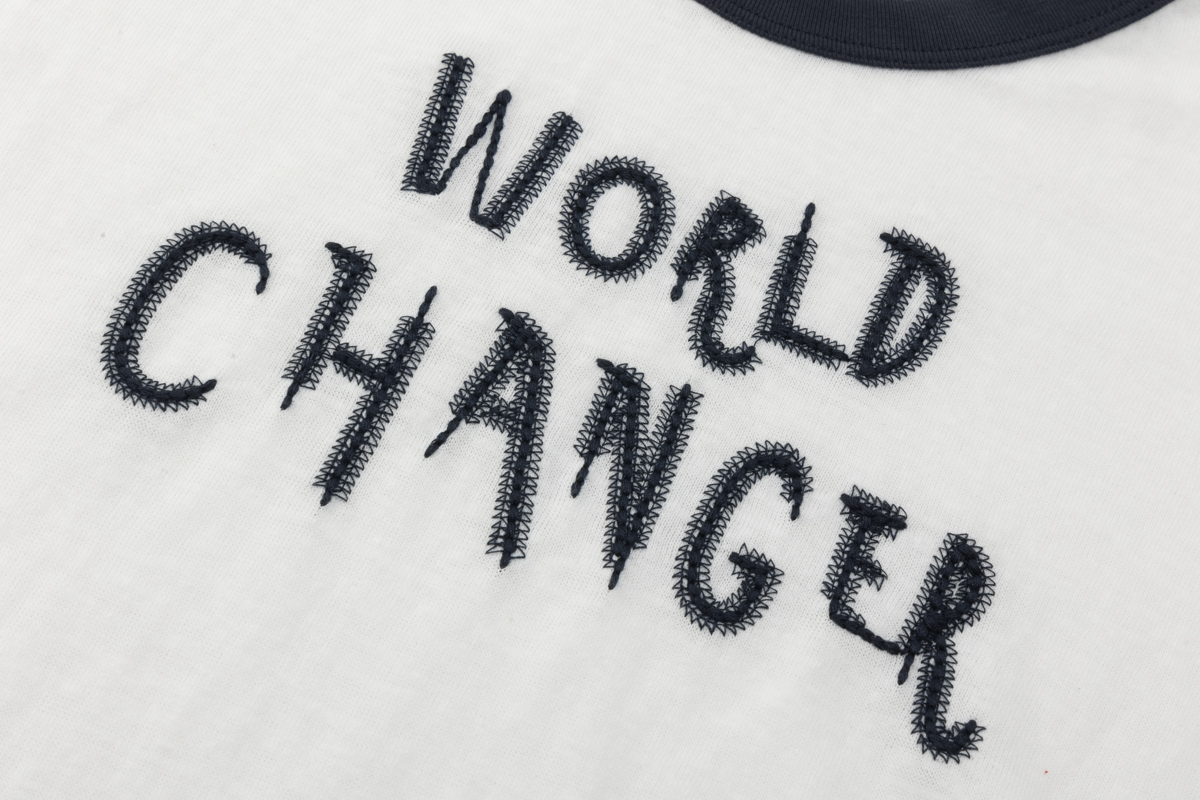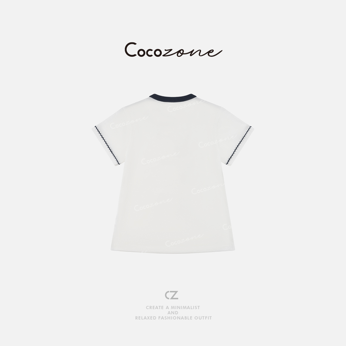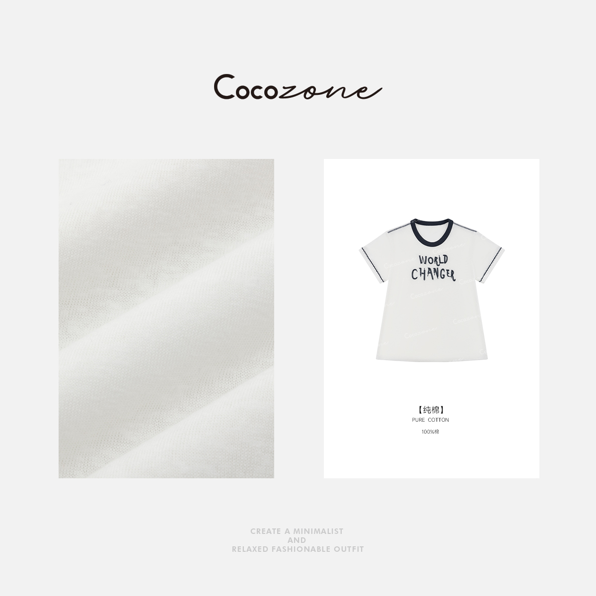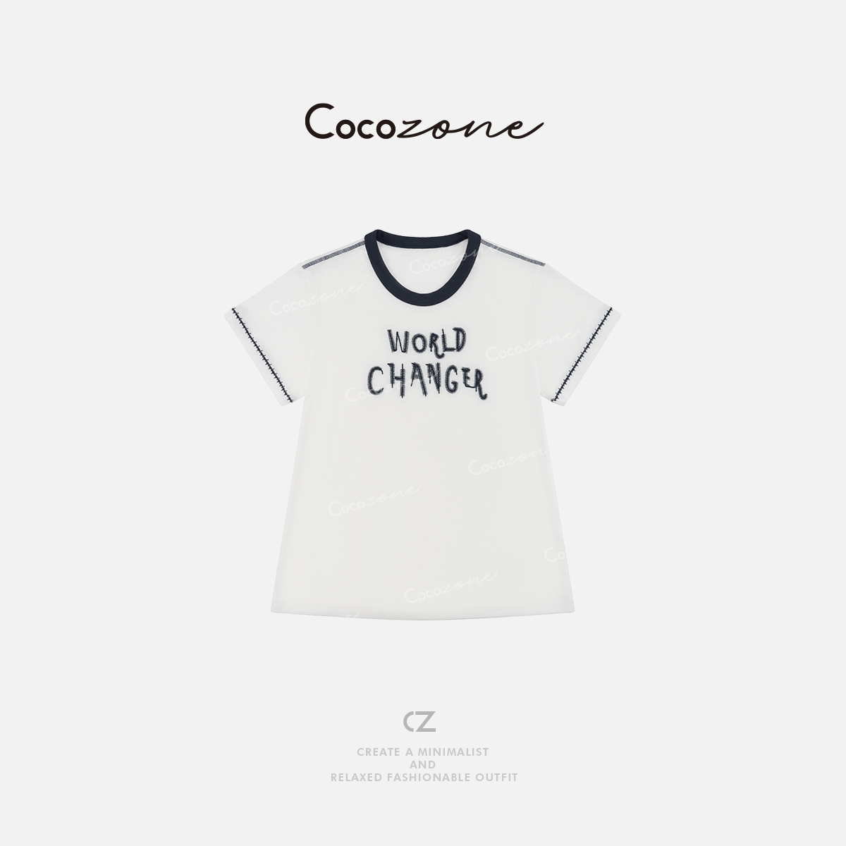 COCO ZONE 刘一一2025新款撞色圆领小众字母短袖T恤CD2A0348