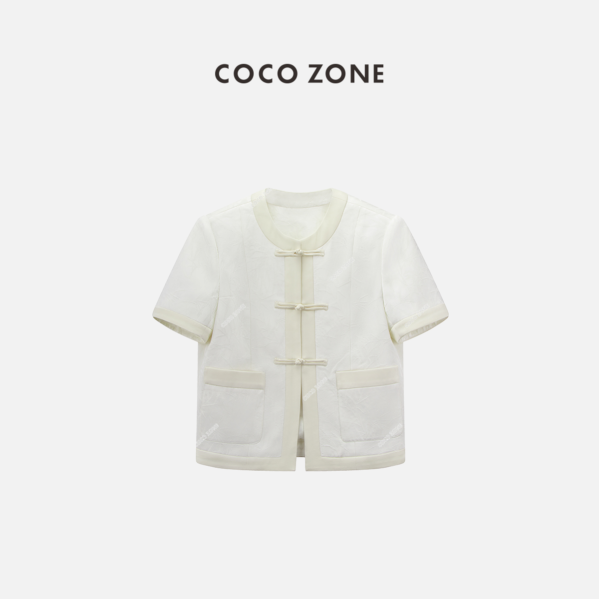 COCO ZONE2024"兰亭序美学“新中式国风短袖上衣复古盘扣提花外套CC1A0456