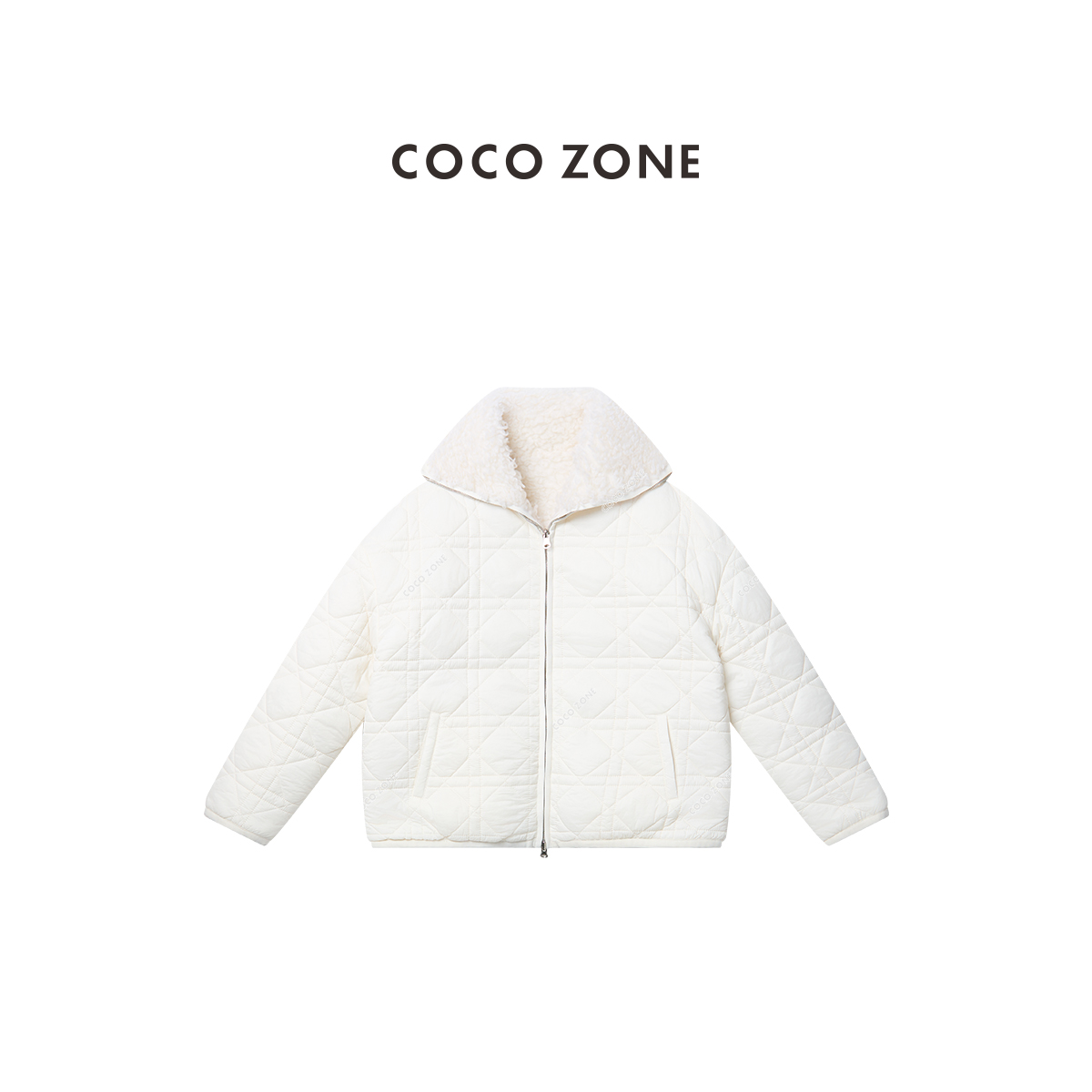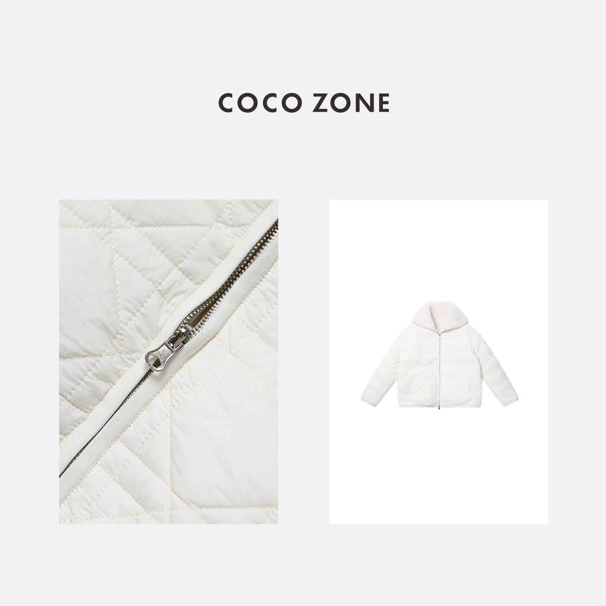 COCO ZONE 秋冬高级感菱格翻领百搭长袖外套CC2D2655
