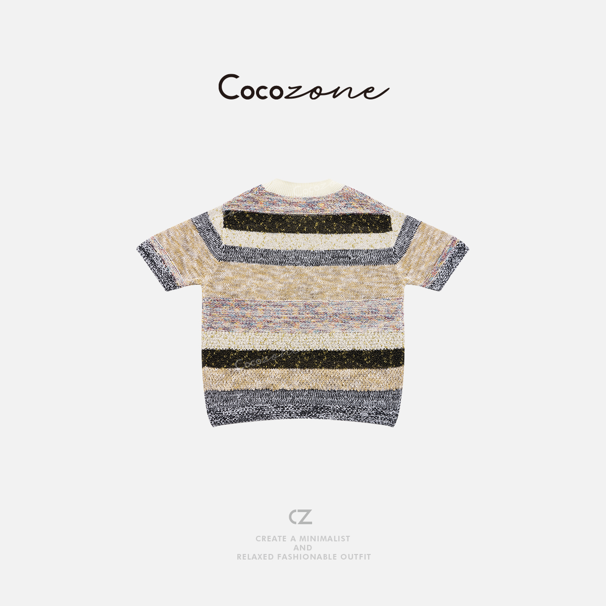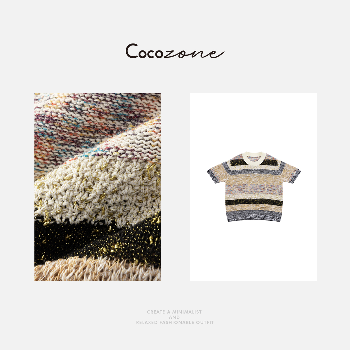 COCO ZONE 刘一一2025新款撞色休闲圆领短袖针织衫CD2A0657