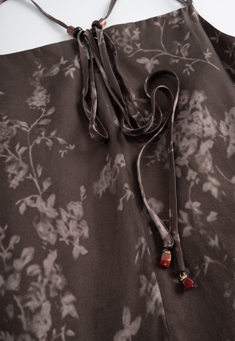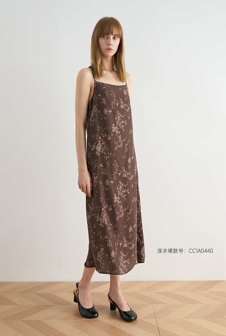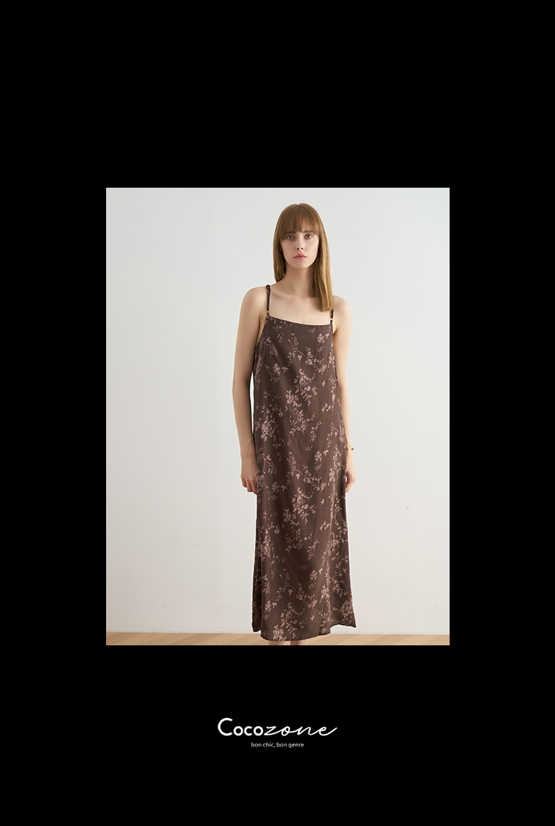 COCO ZONE刘一一 法式高级感印花吊带连衣裙气质百搭长裙CC1A0440