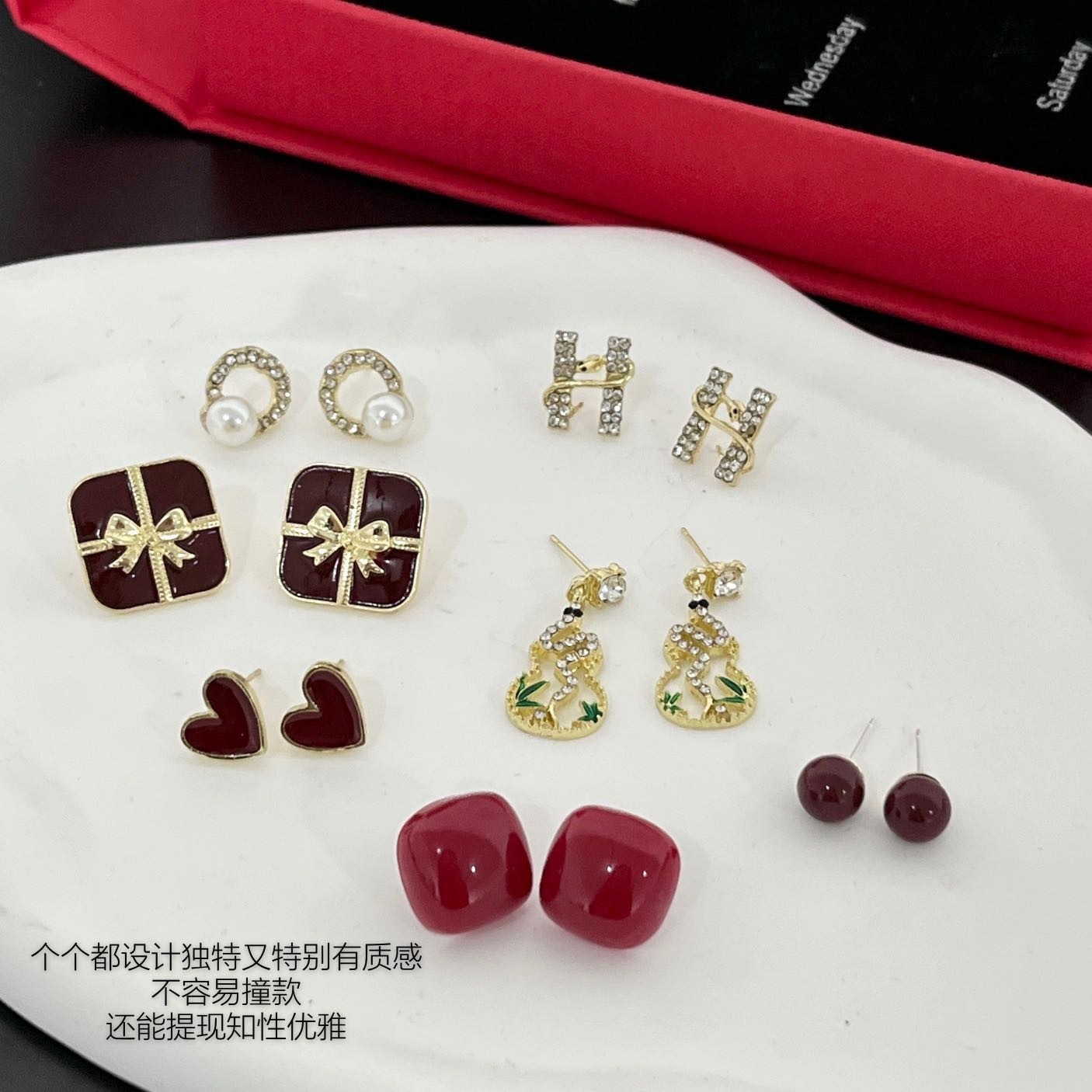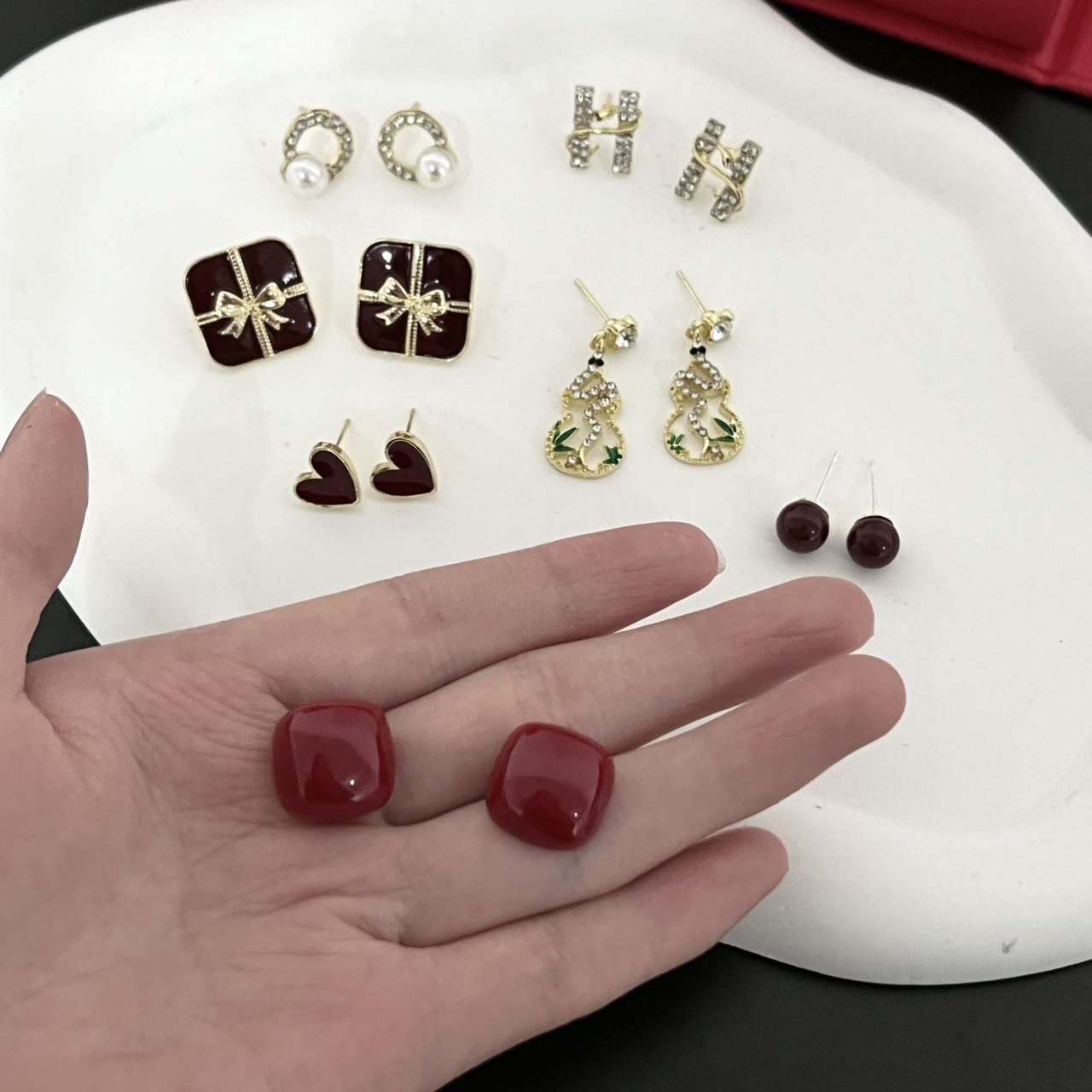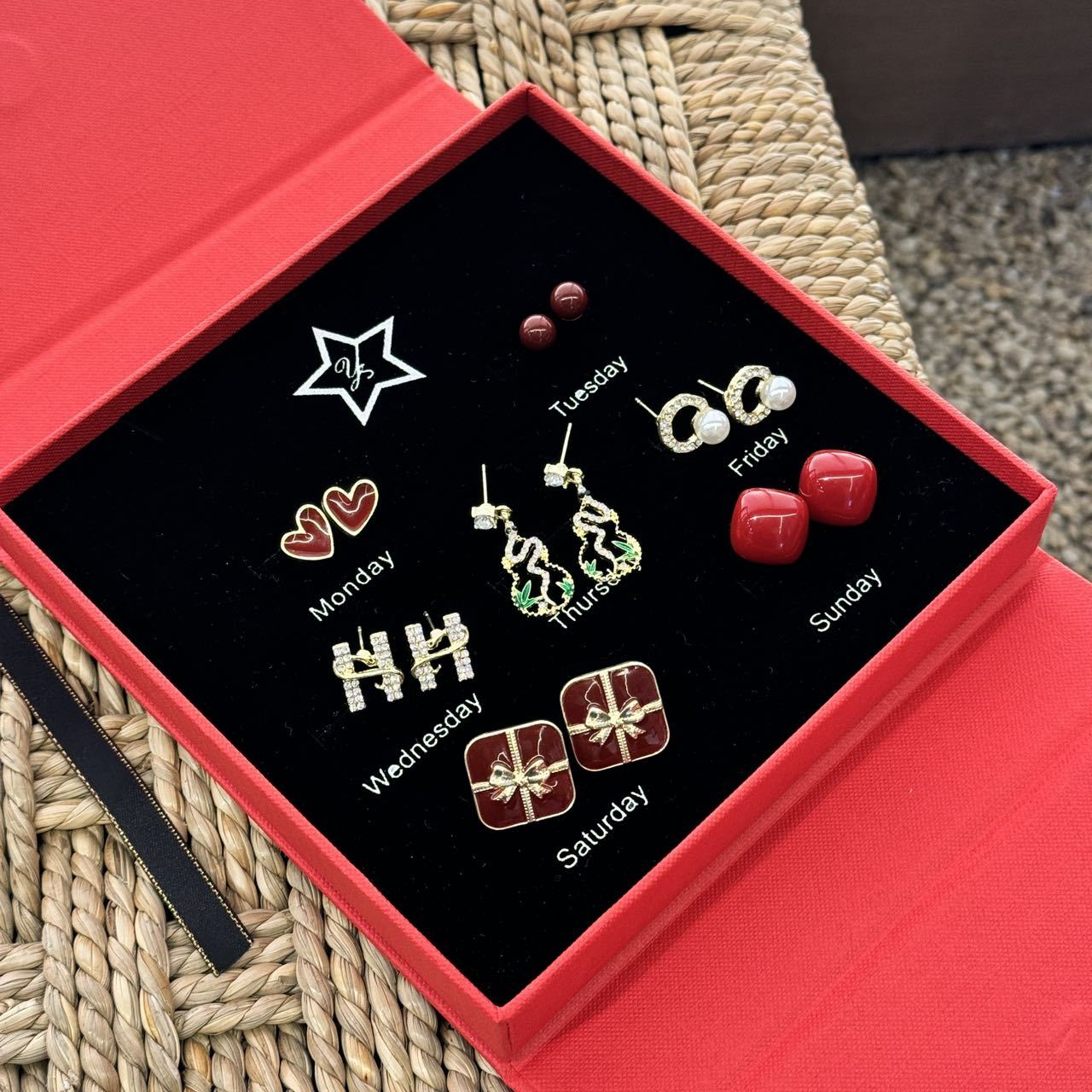 【新年灵蛇耳钉套盒】一盒7款!每天不重样 新年限定!新年必须中国红!品质极好!轮廓清晰,款式新颖925银针+精美款式!高品质!不过敏经典百搭、不挑人,上脸显白有气质
