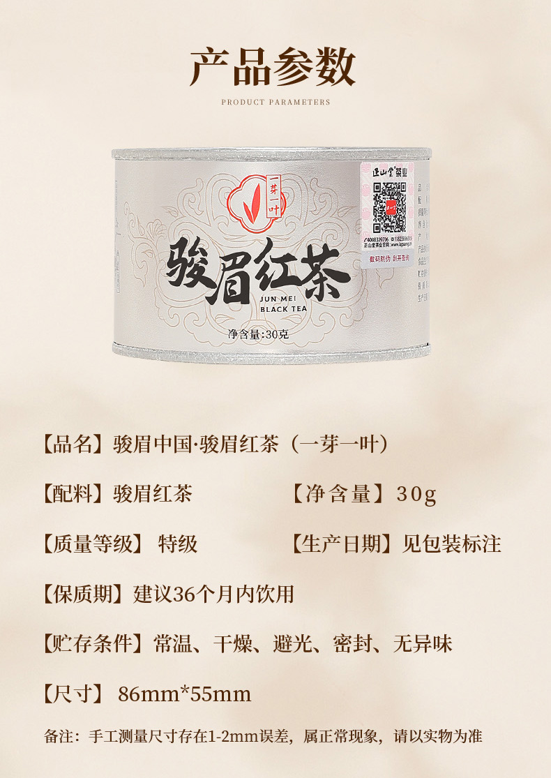 正山堂骏眉中国 一芽一叶 特级骏眉红茶十大产区茶叶罐装30g