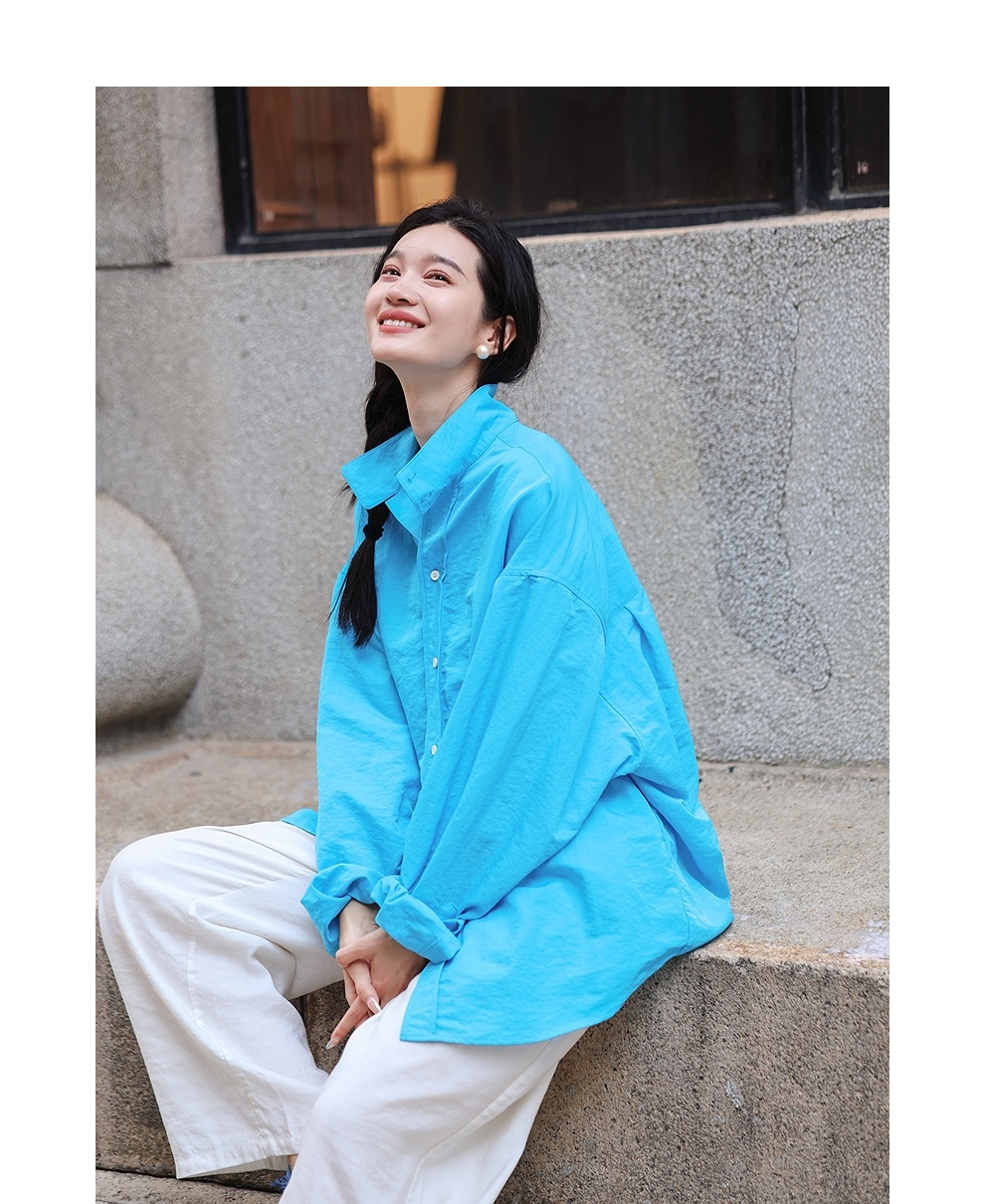 绽放女装521朵/天丝棉帅气大廓型文艺百搭落肩长袖衬衫女上衣外套