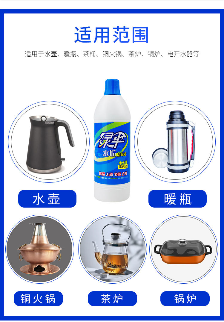 绿伞国货30年水垢清除液550g*4瓶,清洁更彻底,快速去除水垢