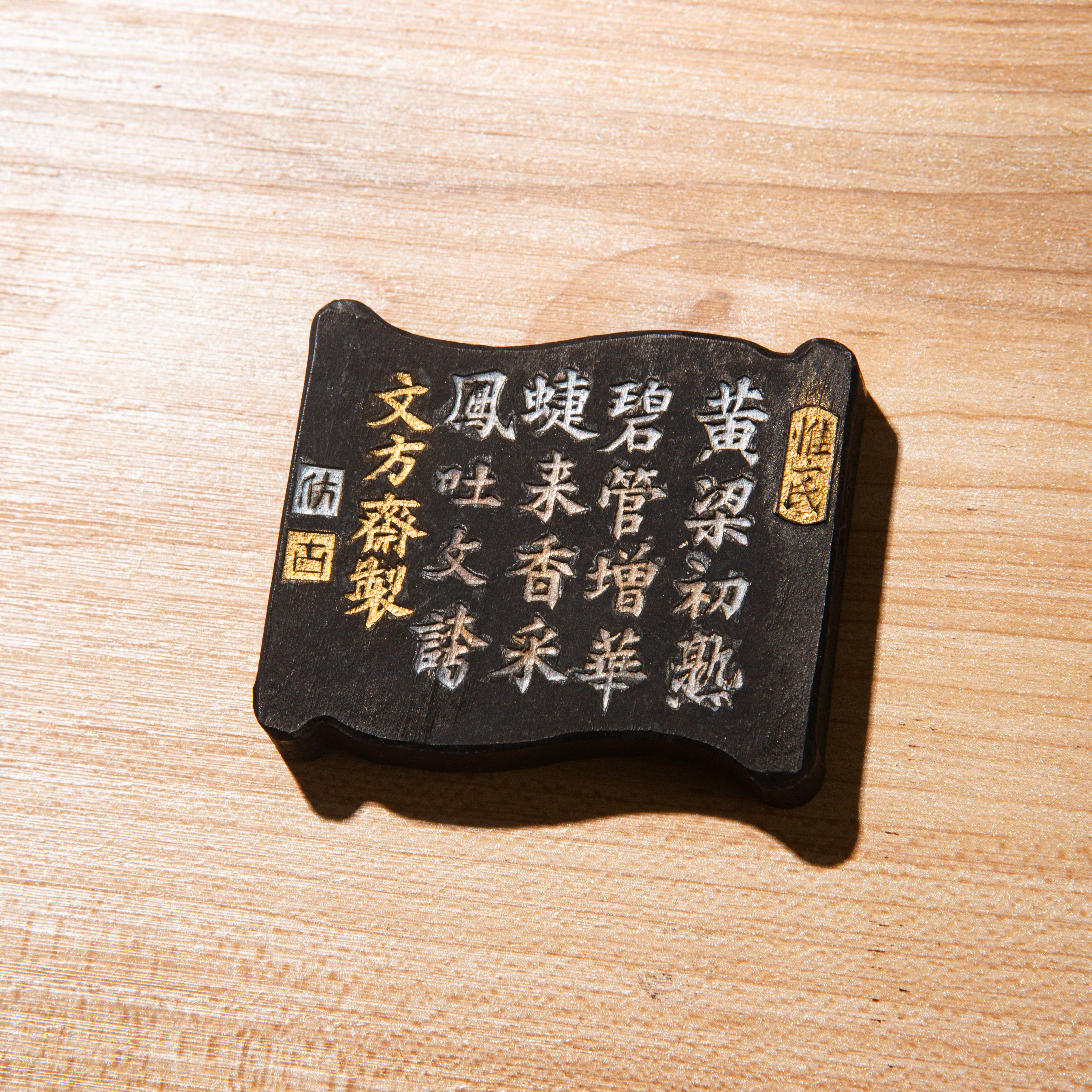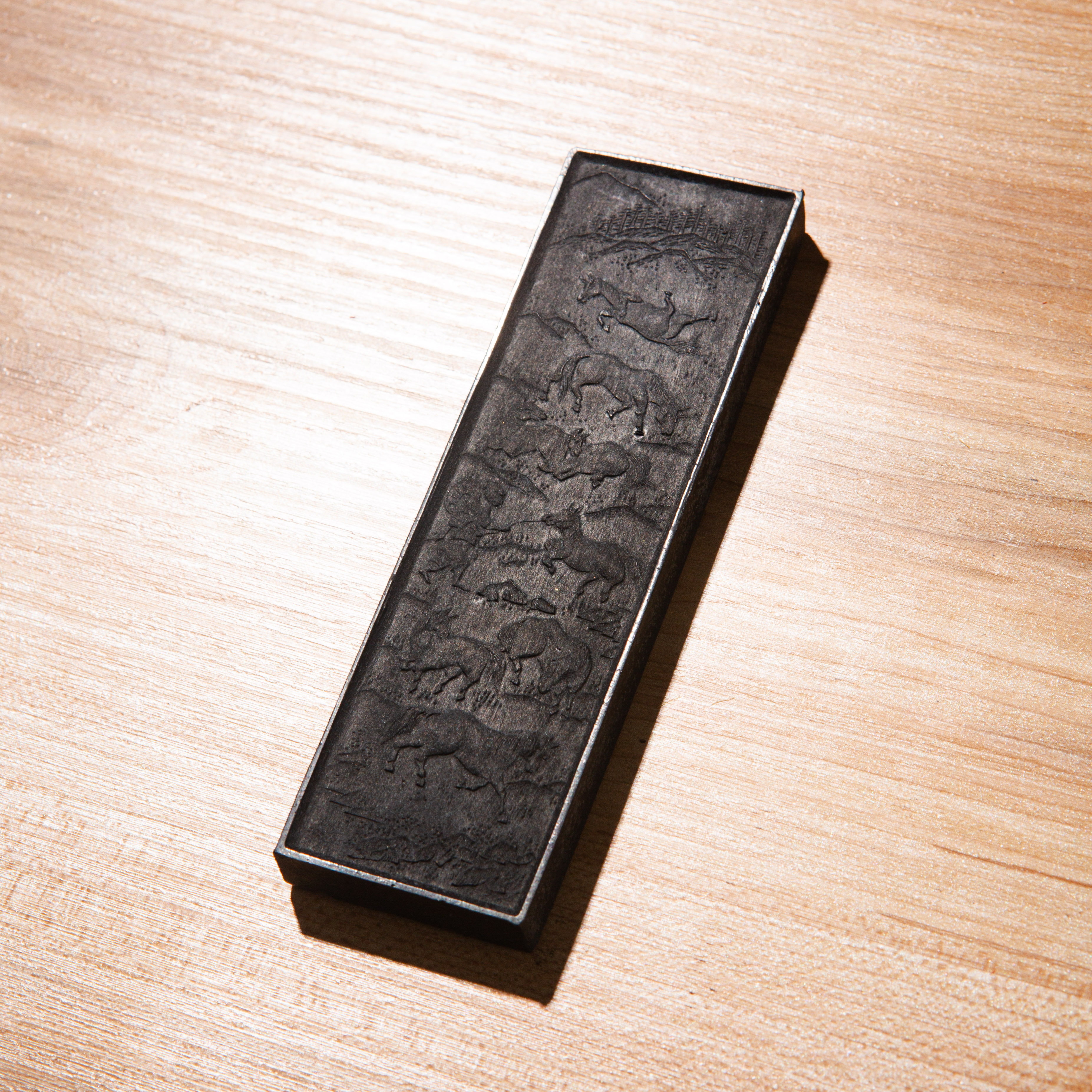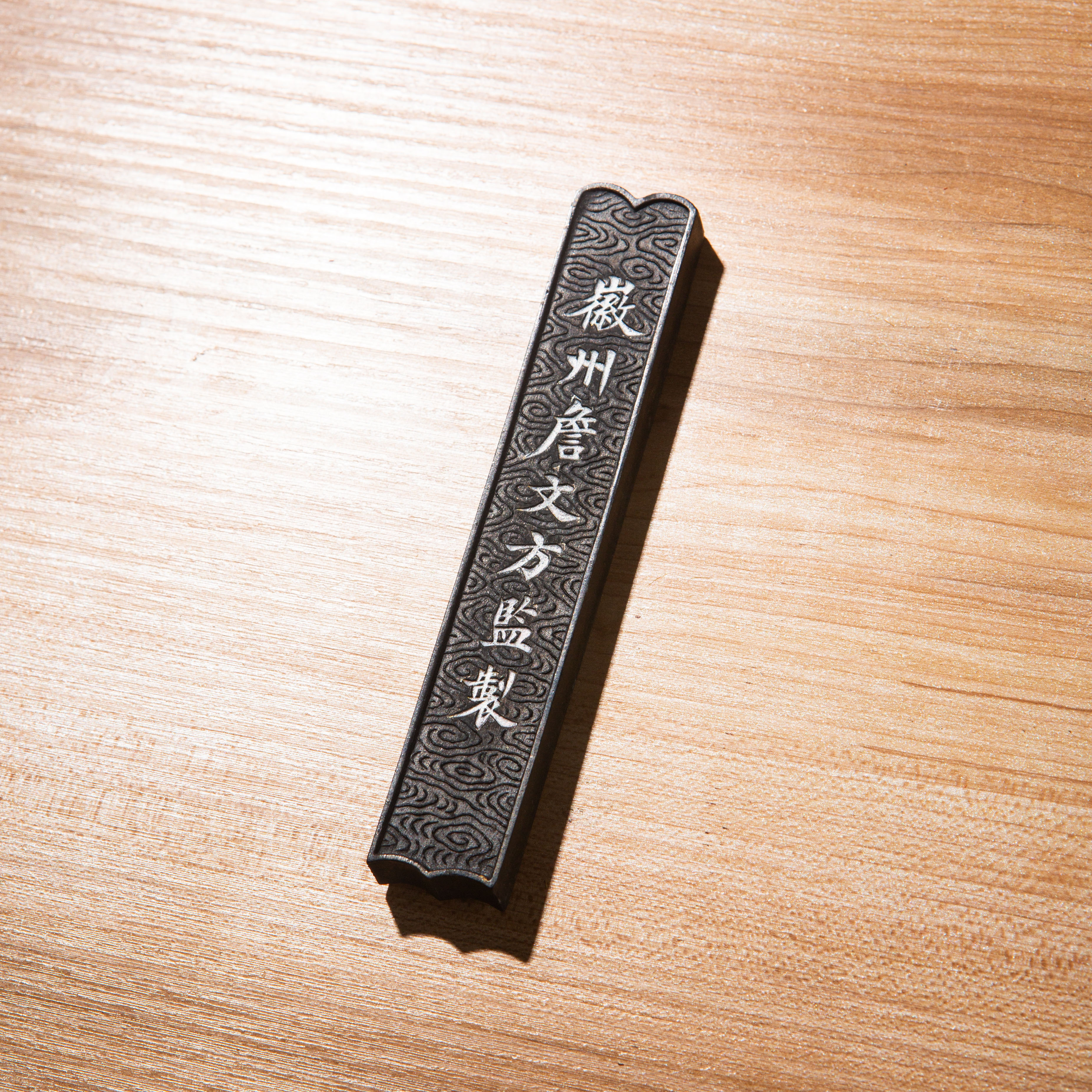 清代文方斋制手卷套墨,一套十锭。其材质上乘,雕版精美,包装考究。此墨存世少有,十分难得。