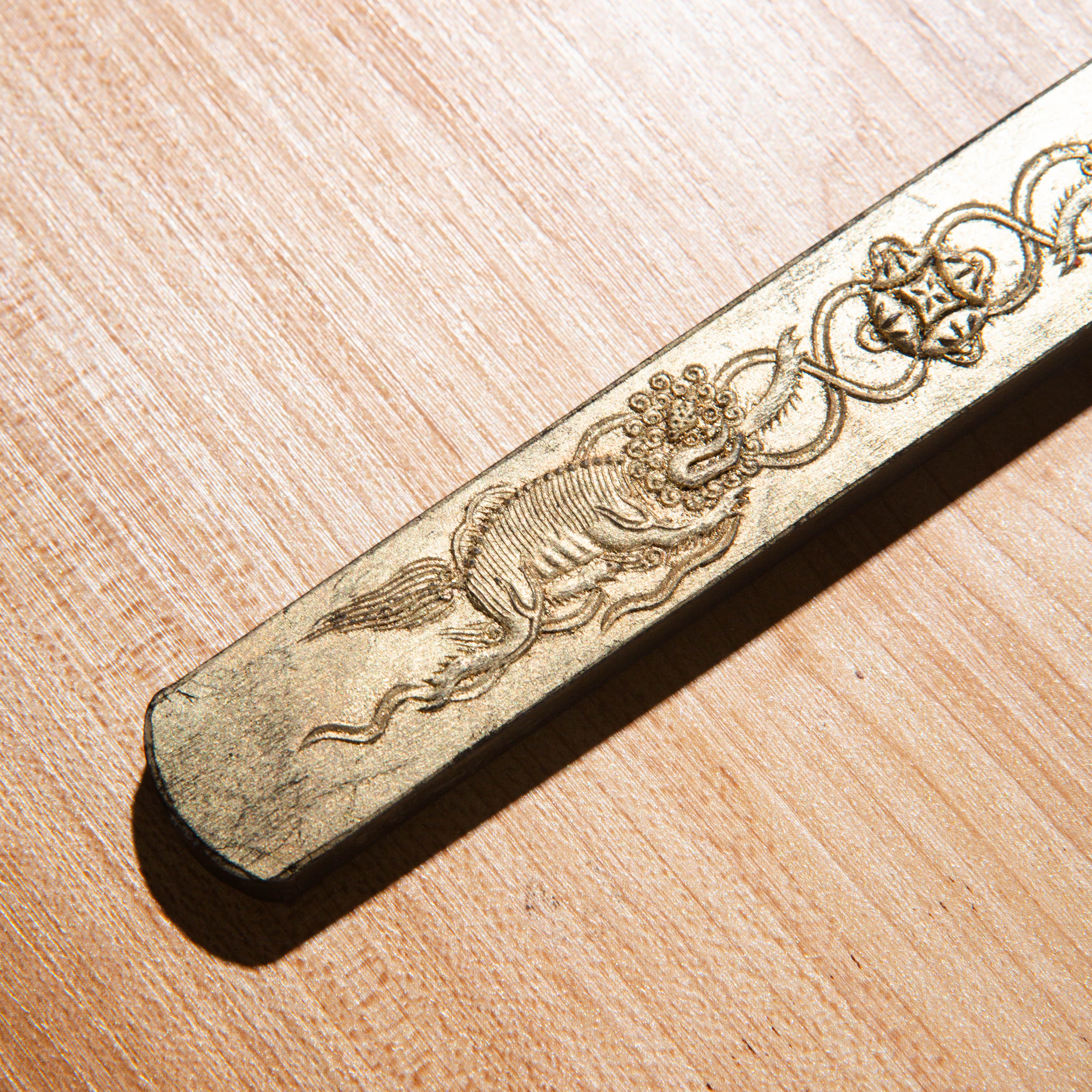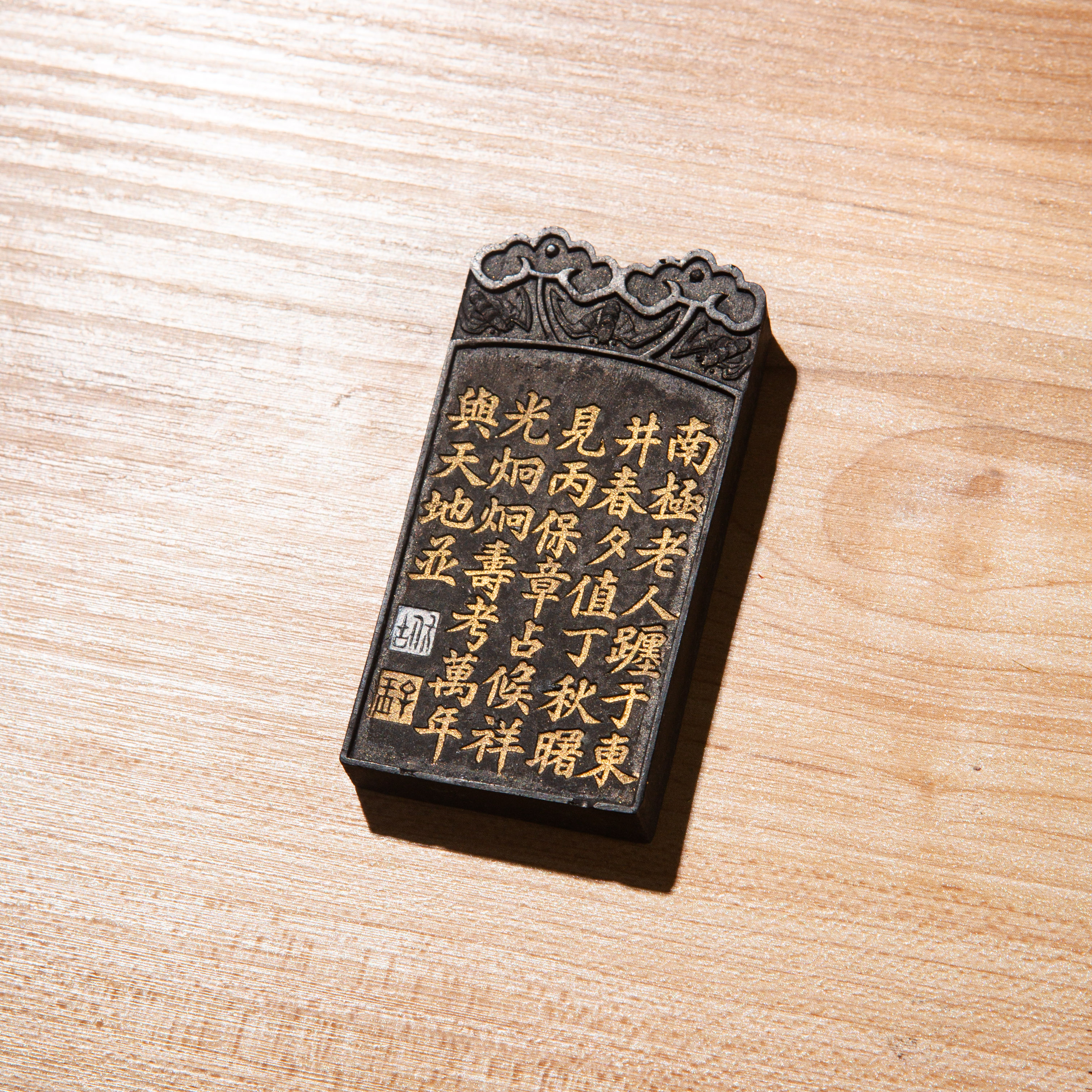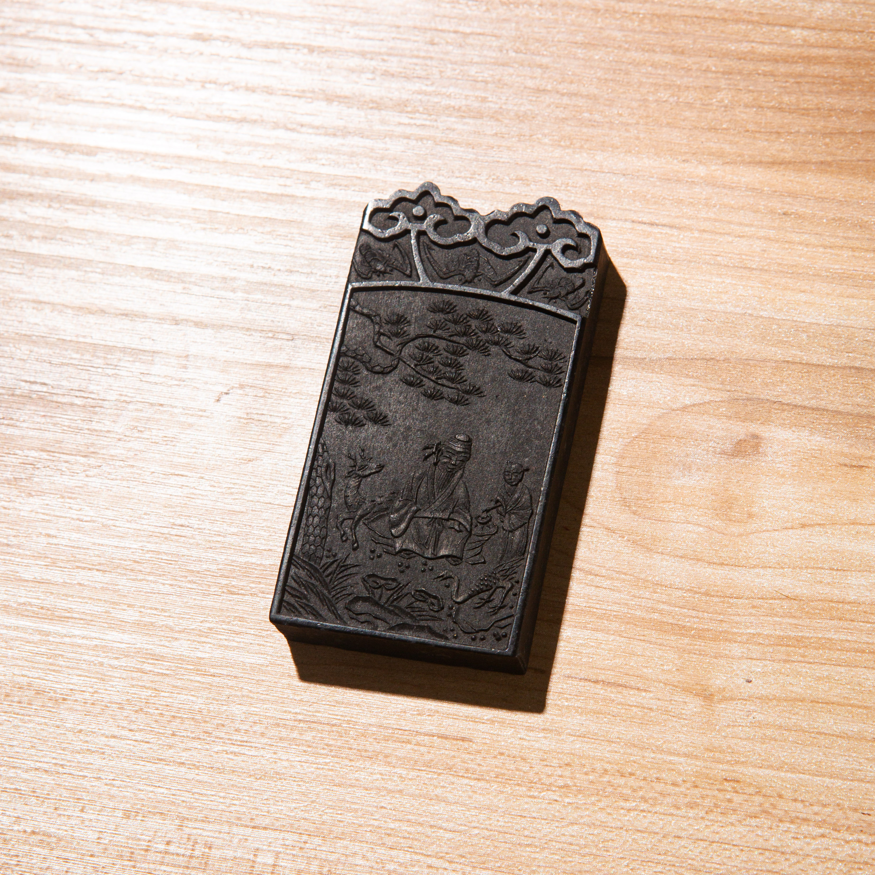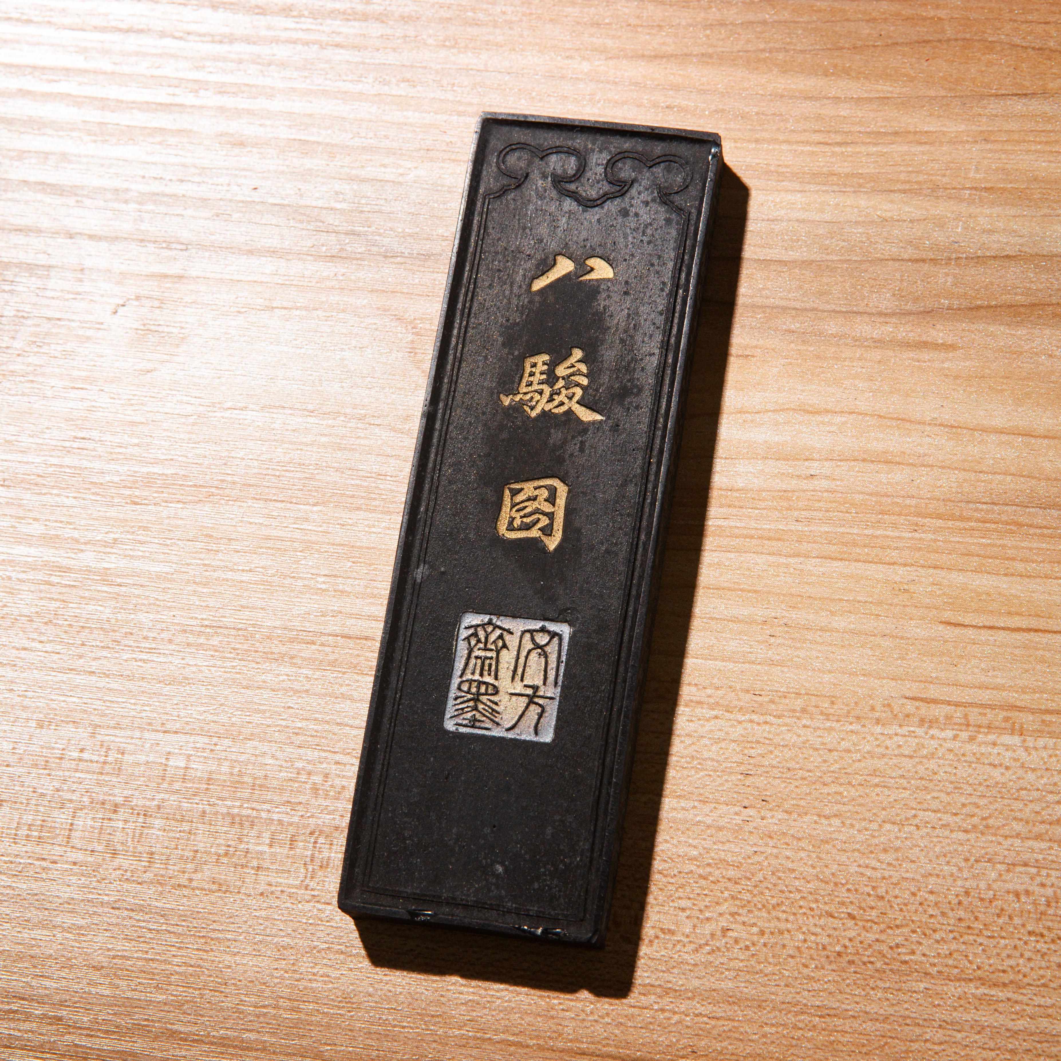 清代文方斋制手卷套墨,一套十锭。其材质上乘,雕版精美,包装考究。此墨存世少有,十分难得。