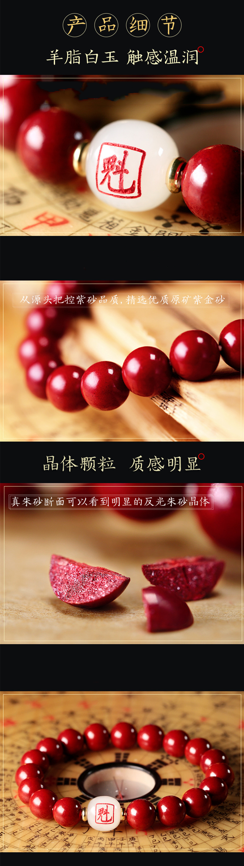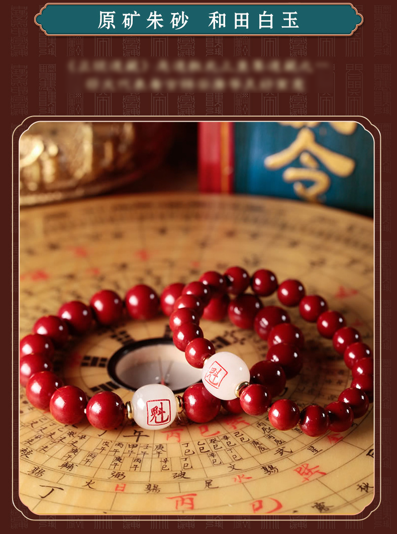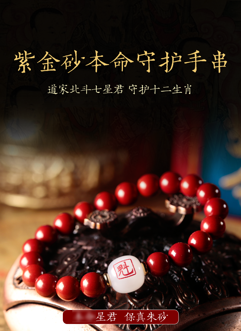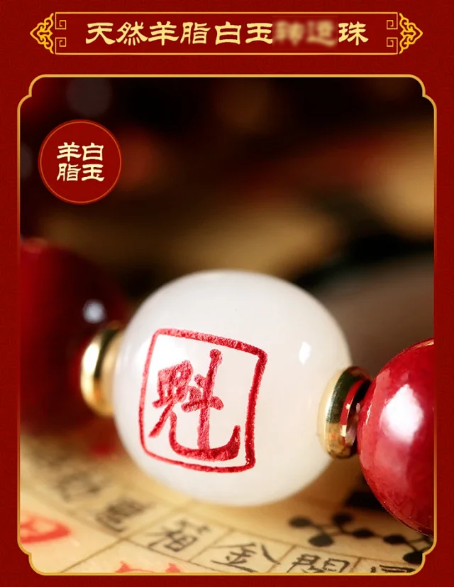 十二生肖,紫金砂羊脂白玉手珠,保真朱砂