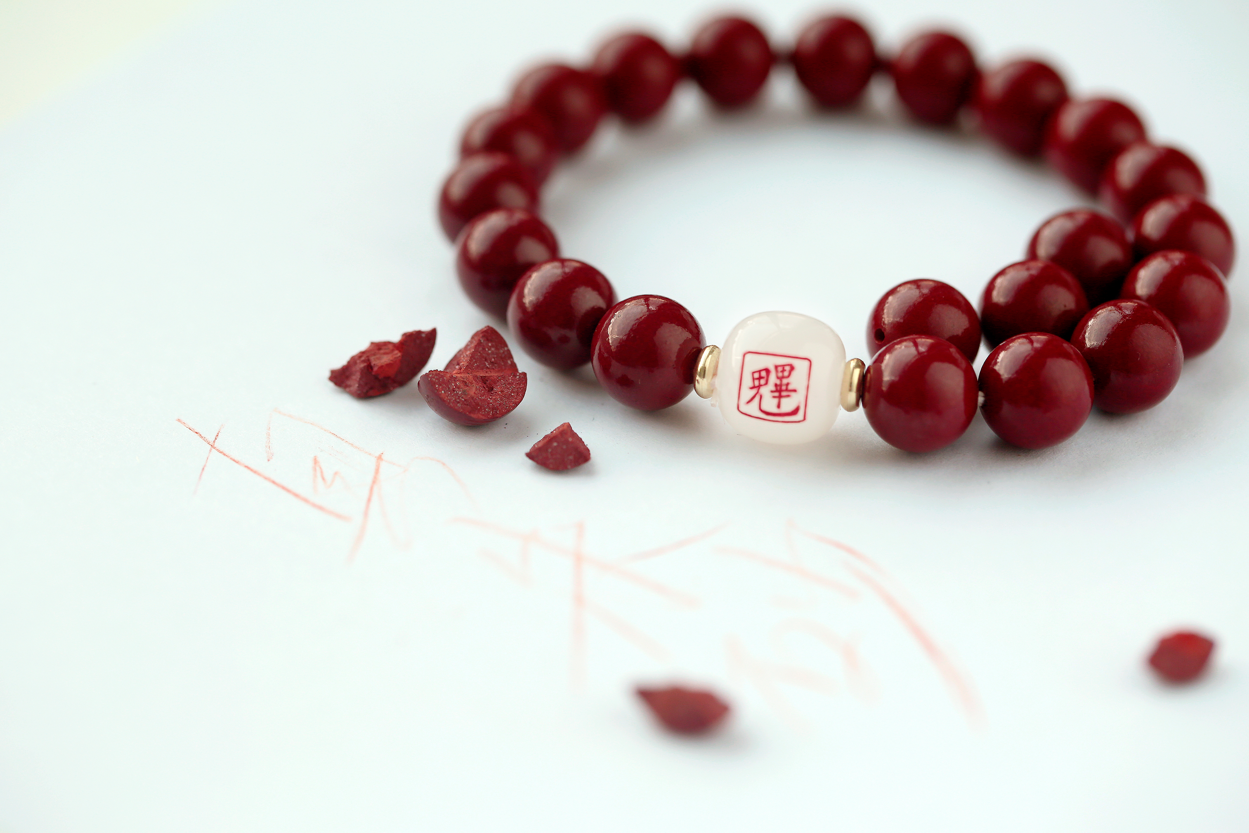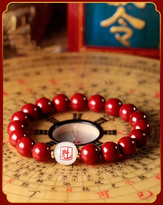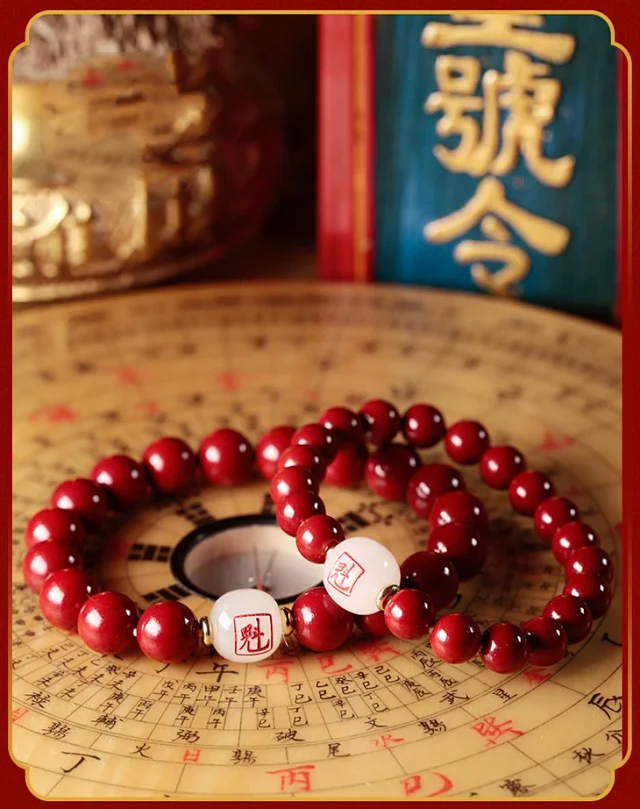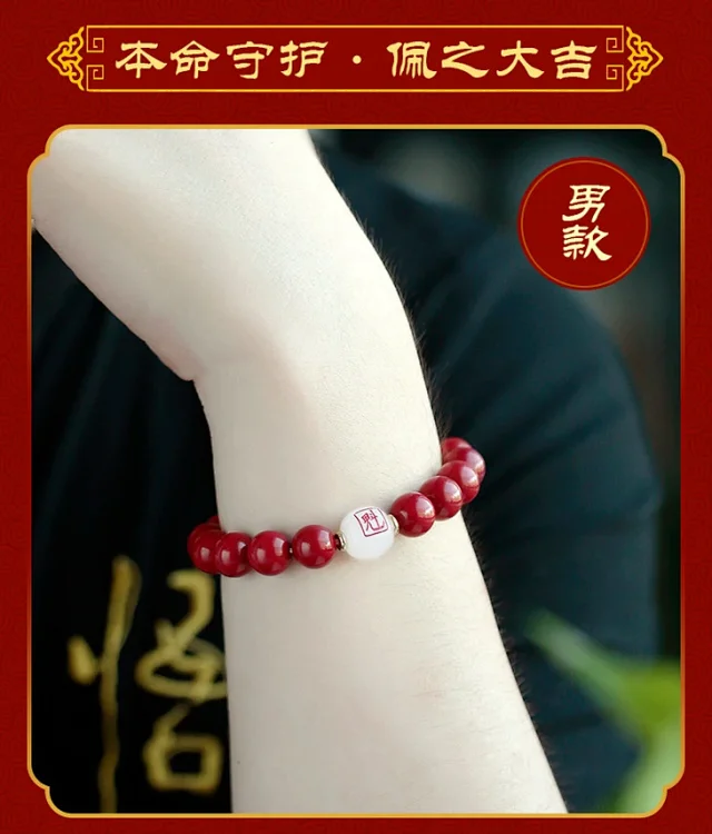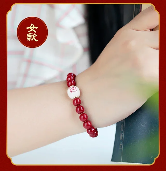十二生肖,紫金砂羊脂白玉手珠,保真朱砂